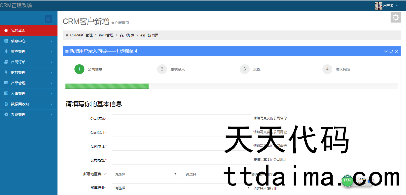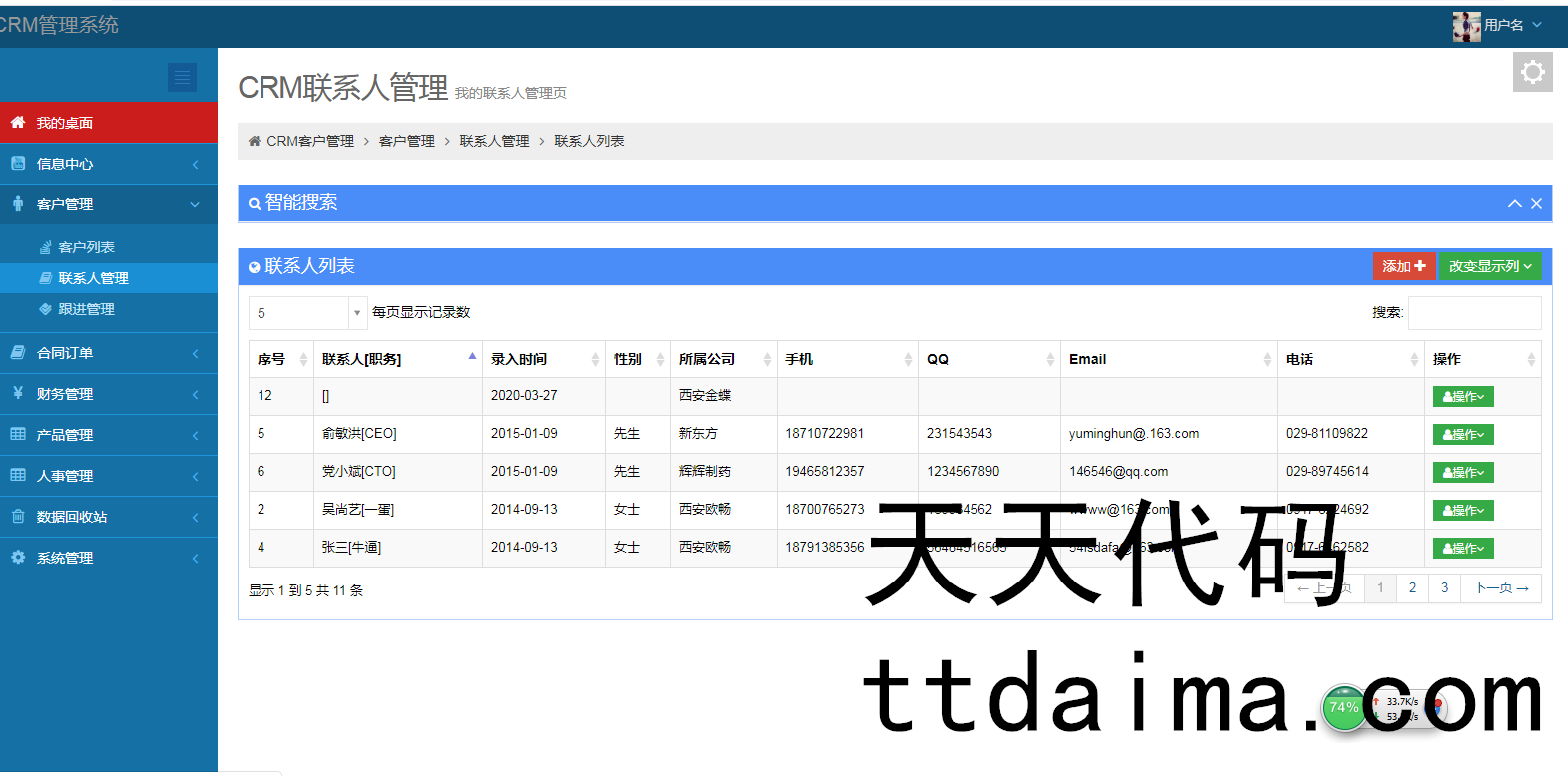 实现了如下功能:客户管理、合同管理、财务管理,产品管理,人事管理、角色管理等功能。