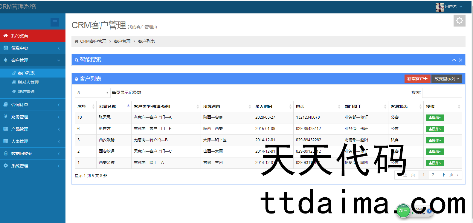 本Java开发的SSH框架客户关系管理系统由天天代码收集测试整理。