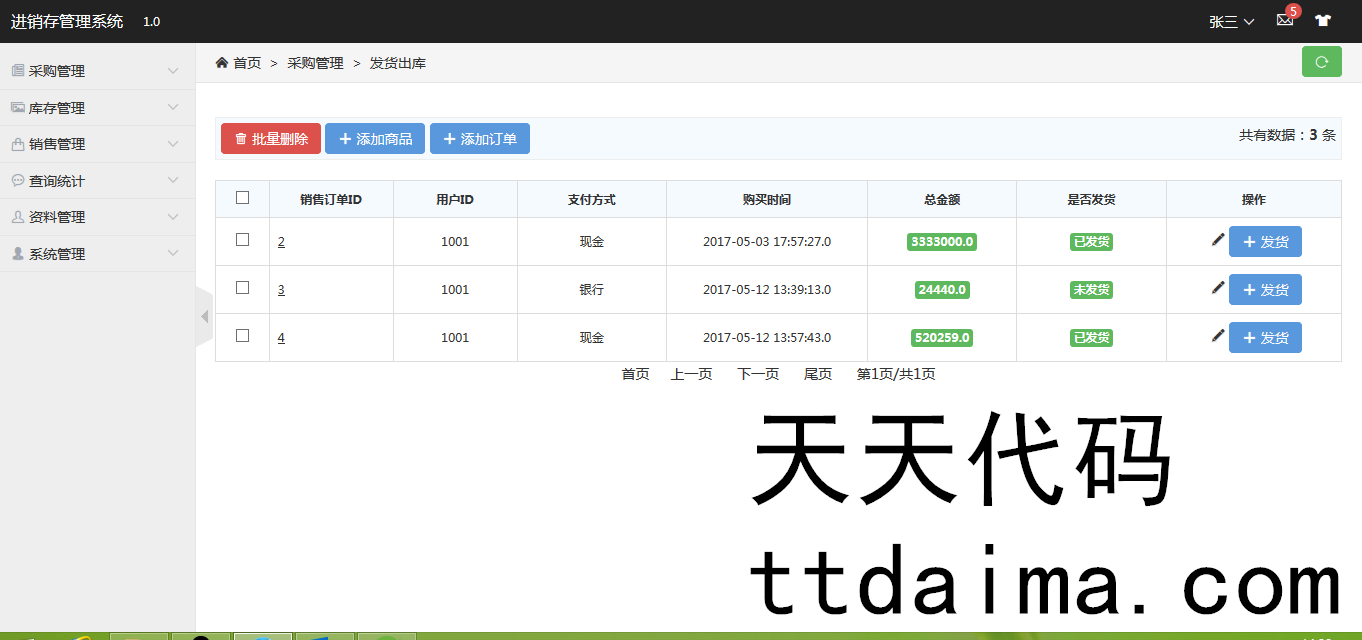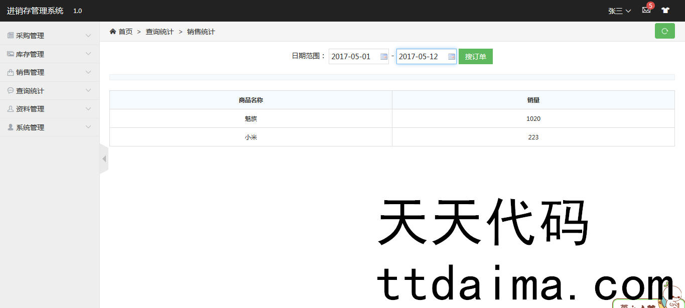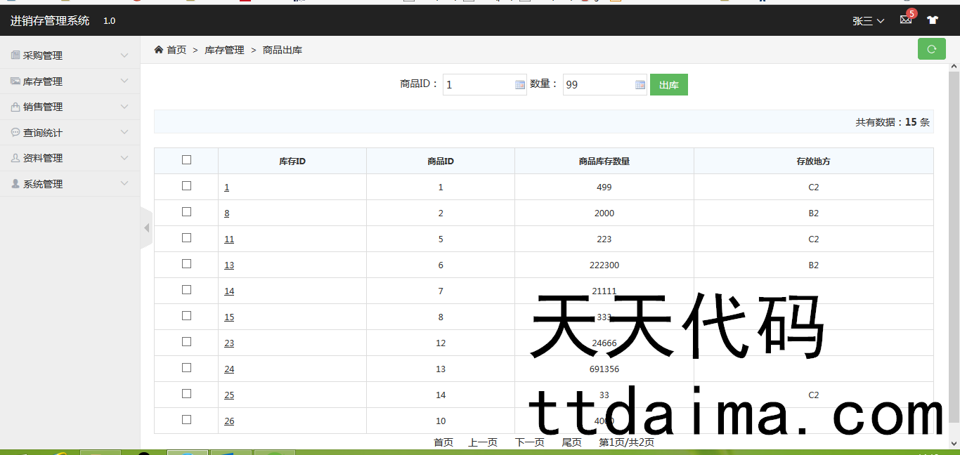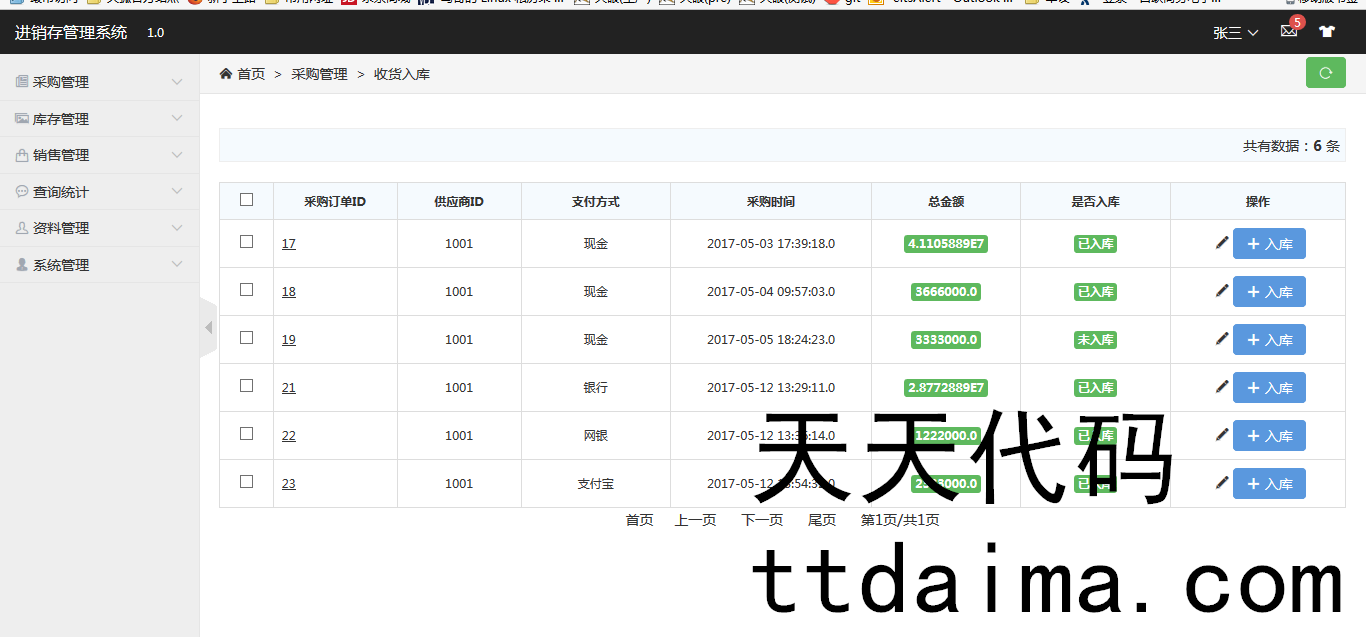 本SpringBoot开发的进销存管理系统由天天代码收集测试整理。