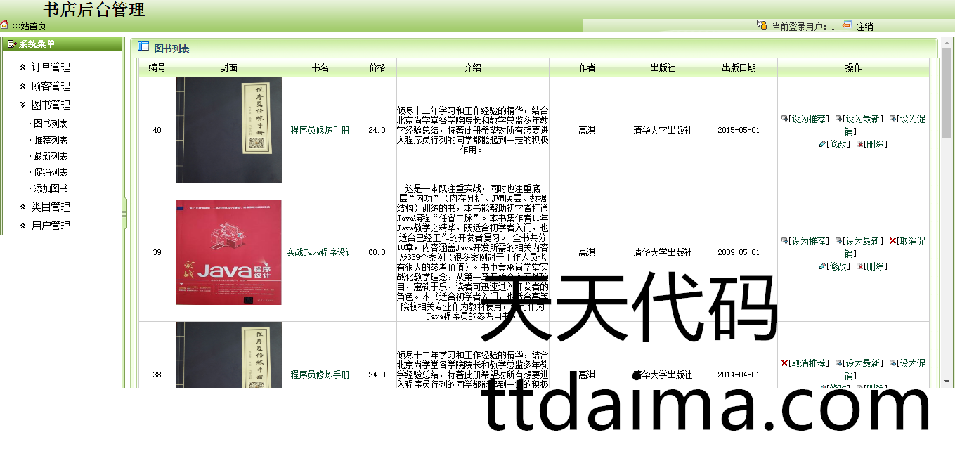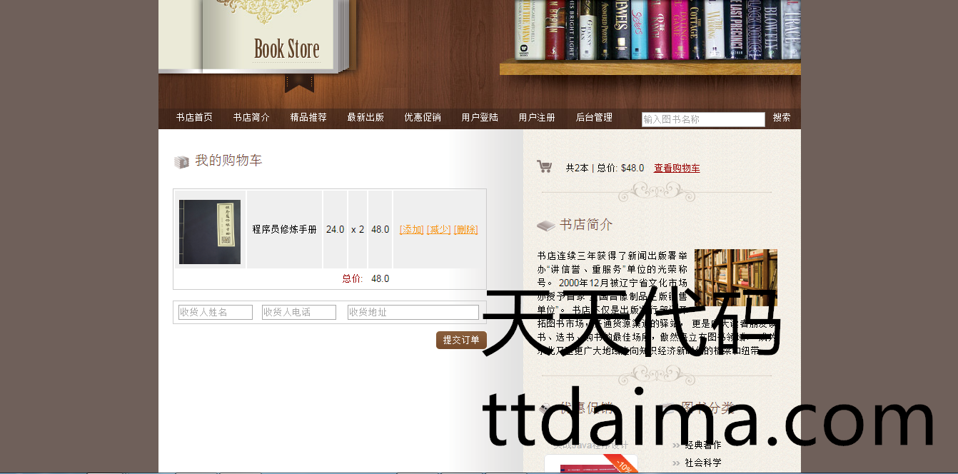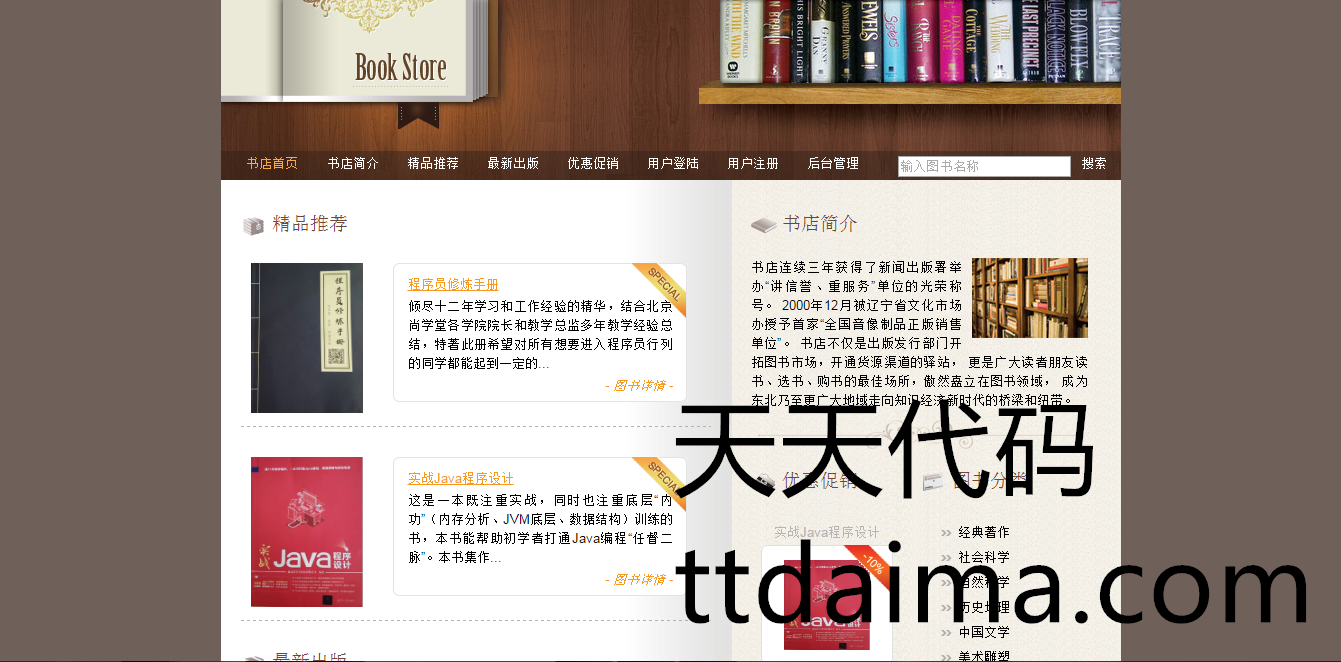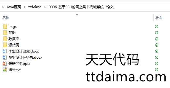 本使用Java开发的基于SSH的网上购书商城系统由天天代码收集测试整理。