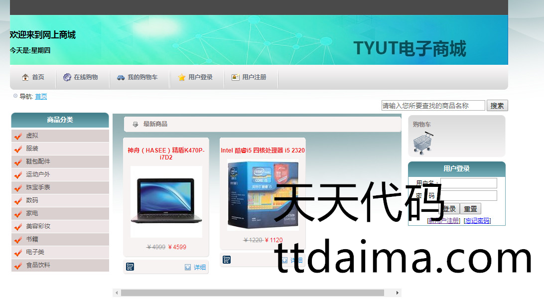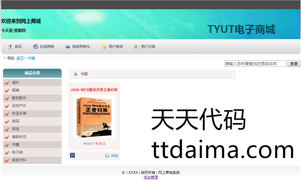 本使用Java开发的基于SSH的网上购物系统由天天代码收集测试整理。