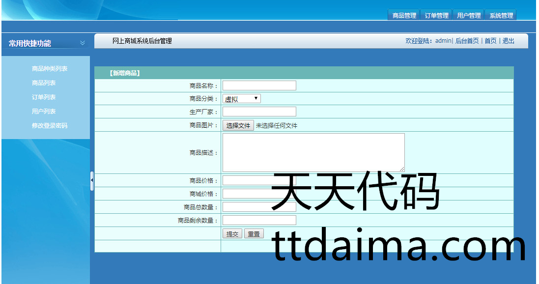 后台:http://localhost:8080/webShopping/admin/login.jsp