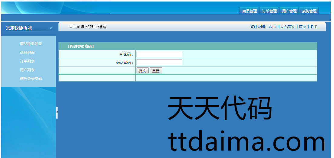 修改登录密码功能:修改管理员的登录密码