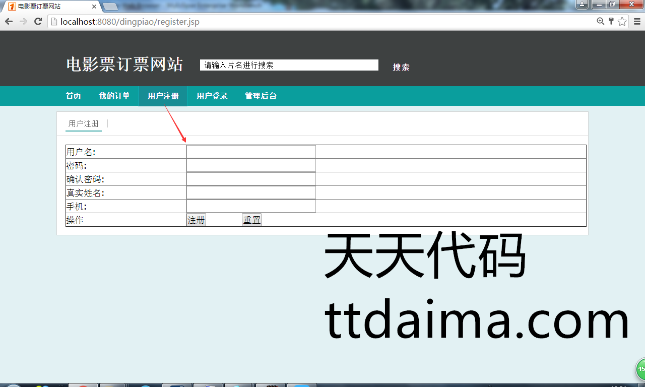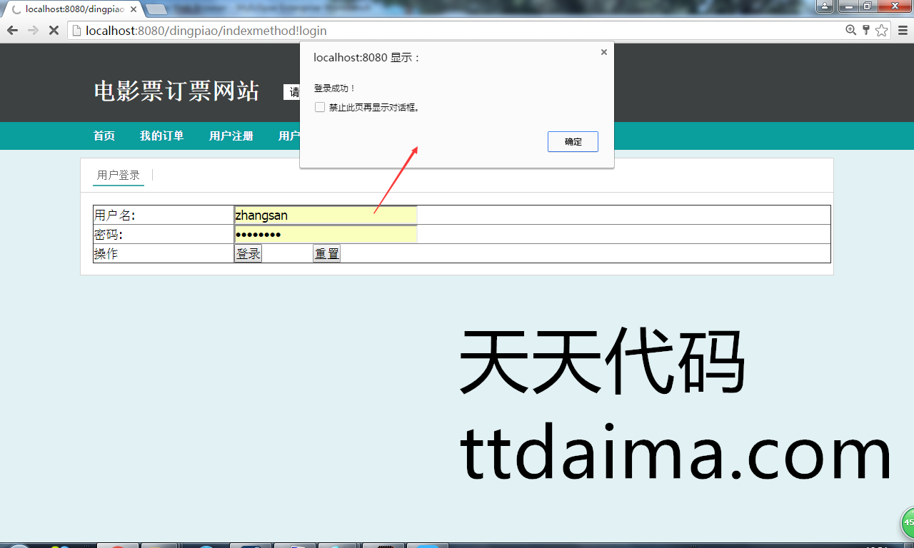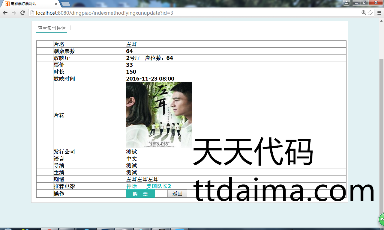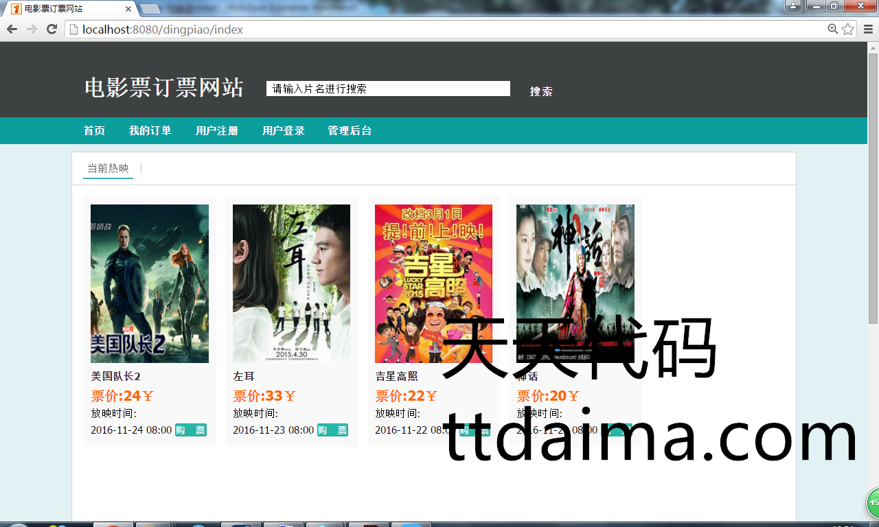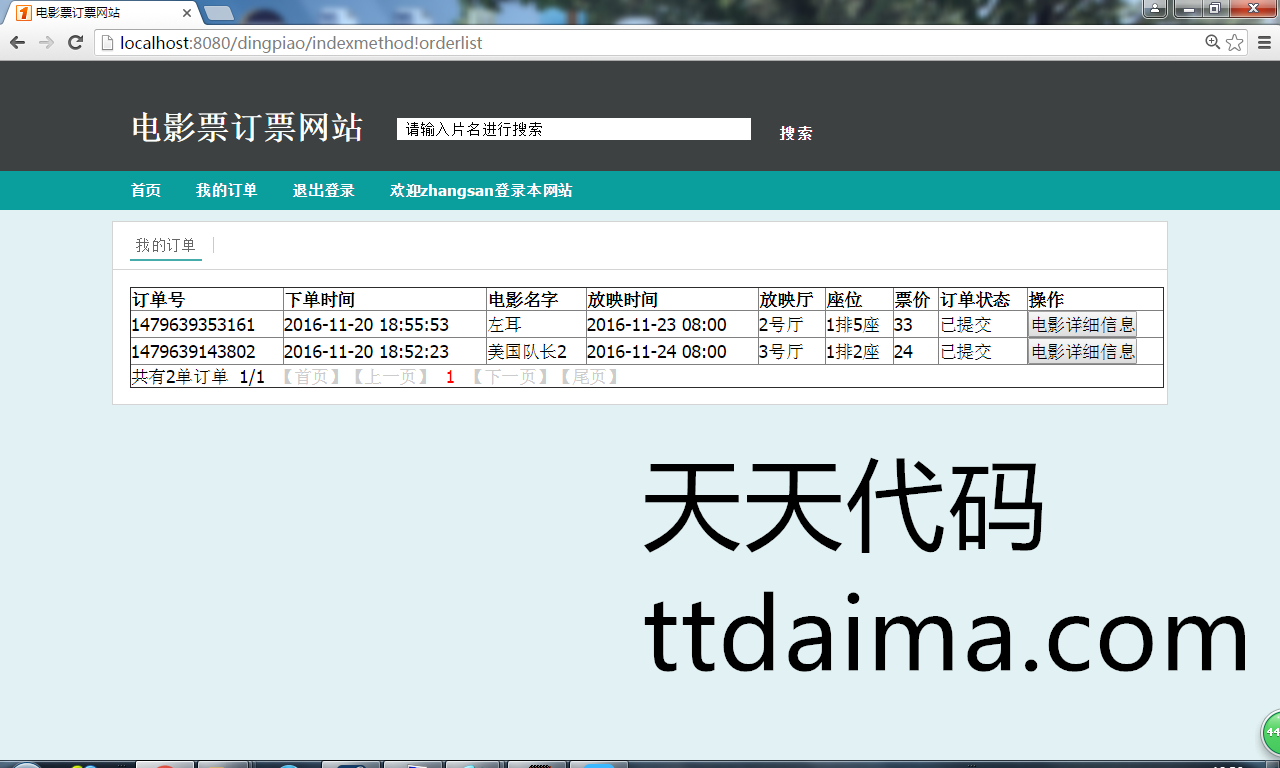 本基于SSH开发电影订票网站系统由天天代码收集测试整理。