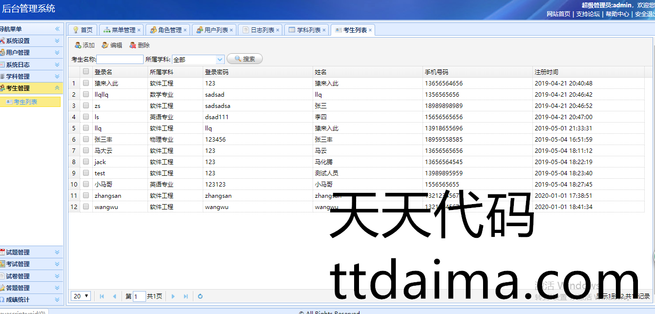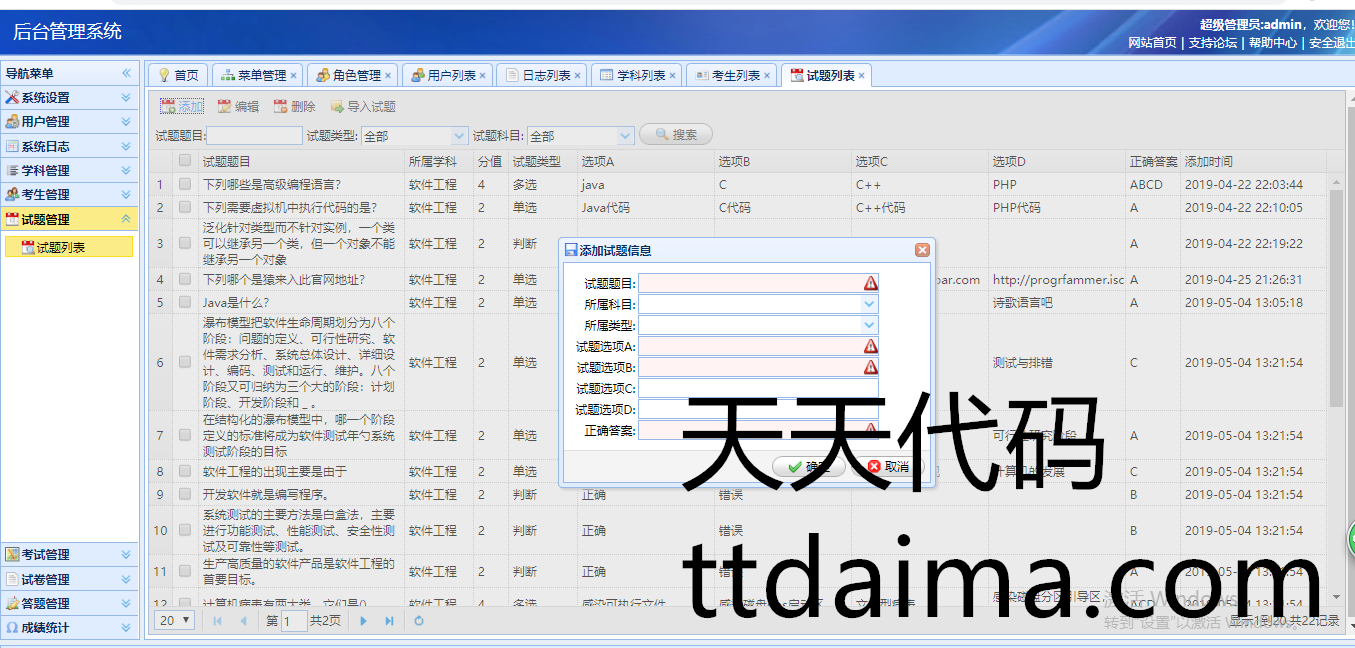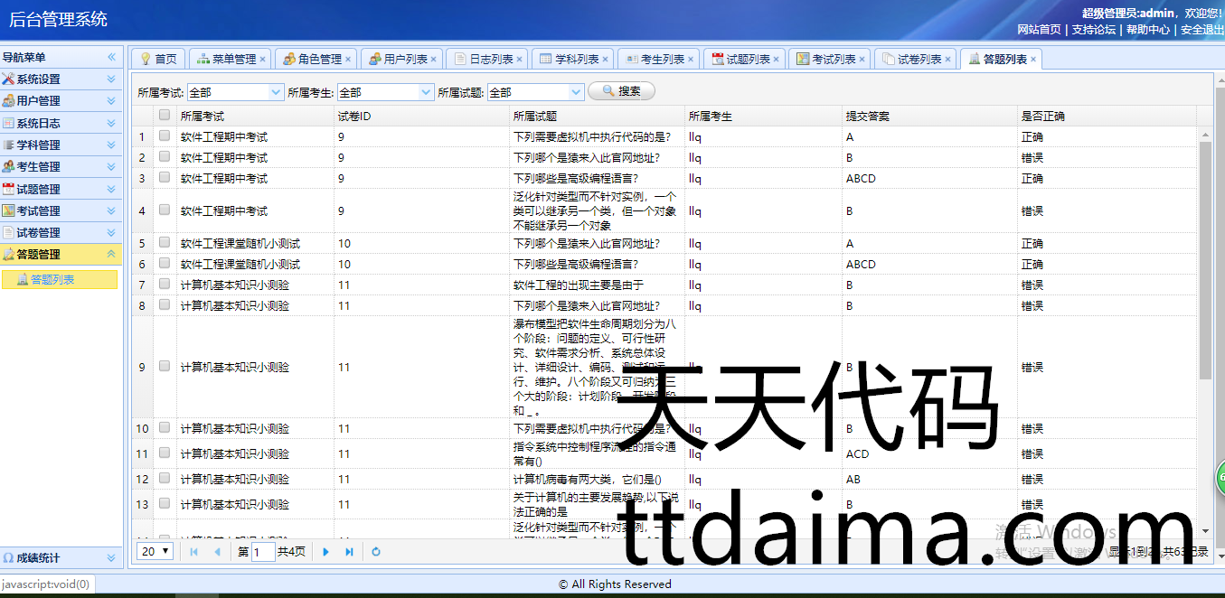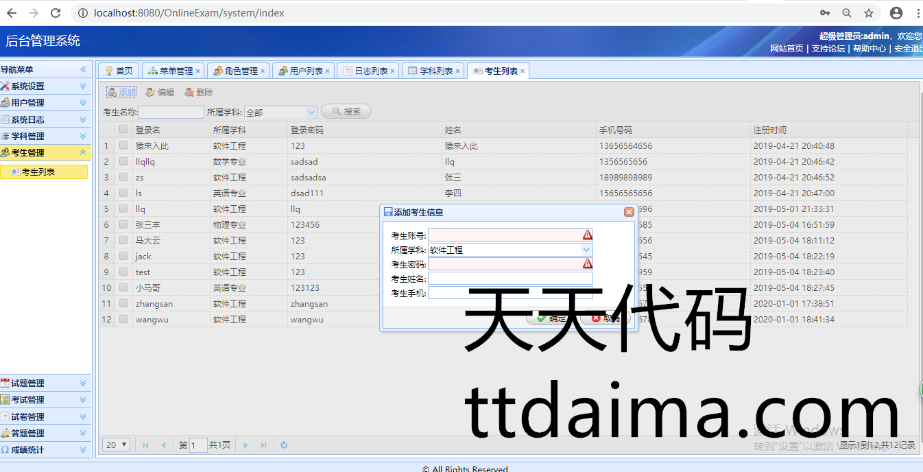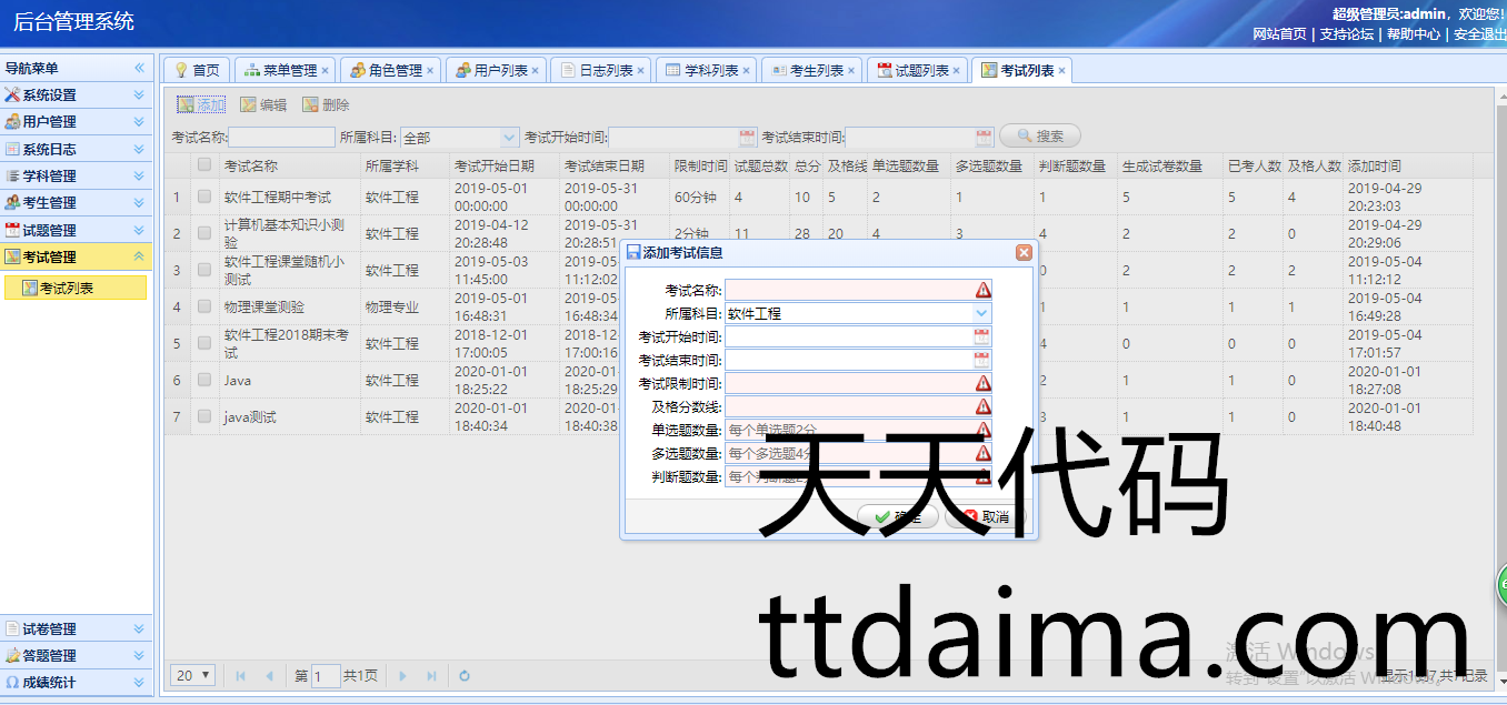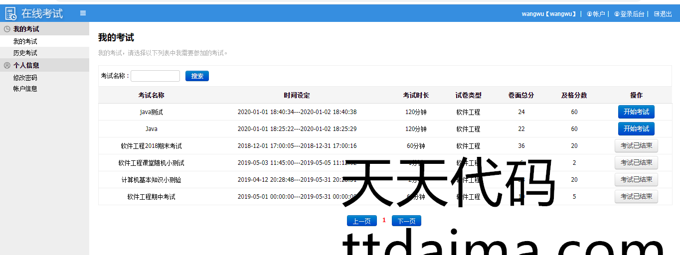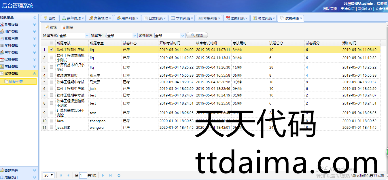 本基于SSM开发在线考试系统由天天代码收集测试整理。