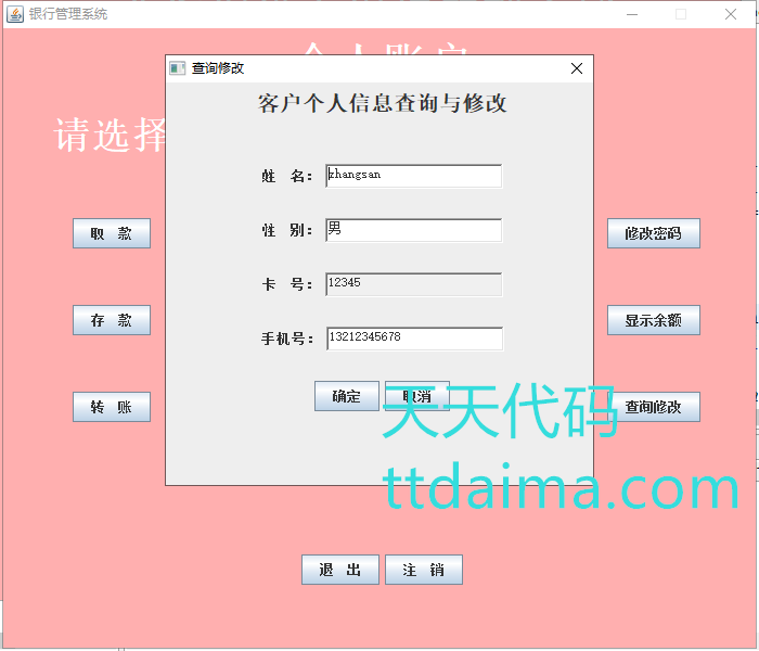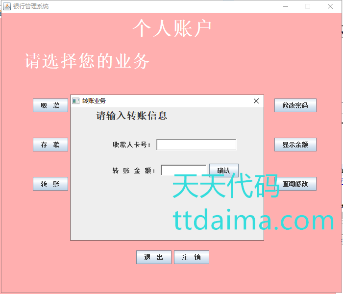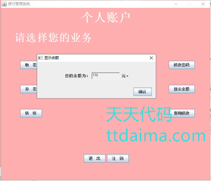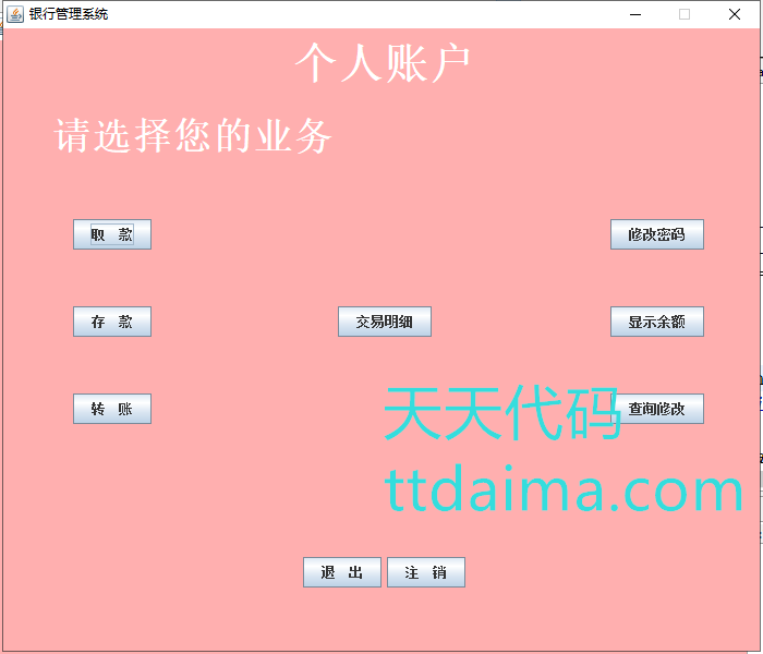 本基于JavaSwing开发简单的银行管理系统由天天代码收集测试整理。
