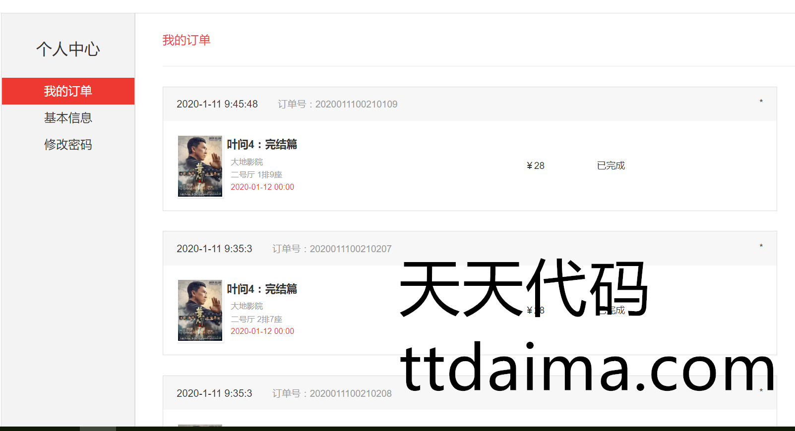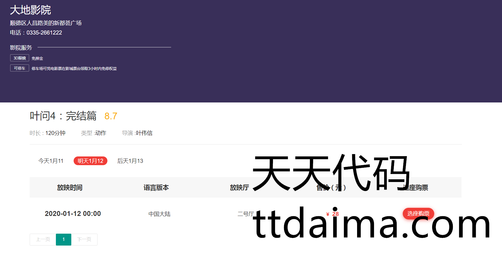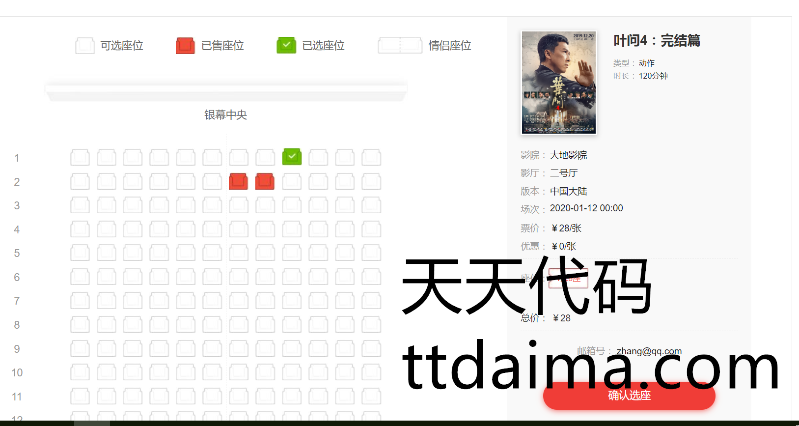 本基于JSP+Servlet+bootstrap开发电影院购票系统由天天代码收集测试整理。