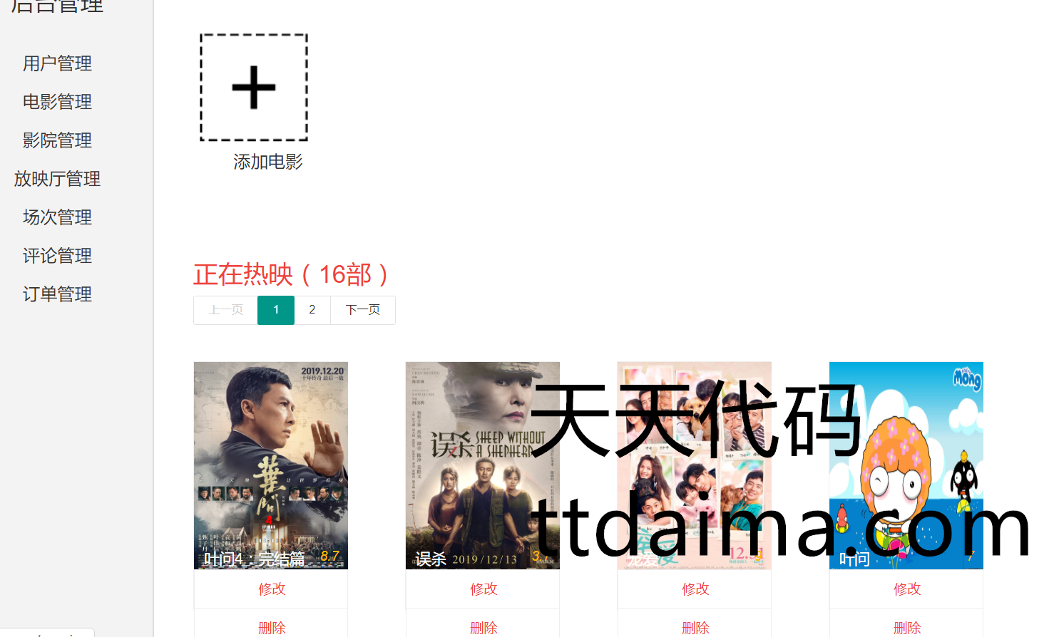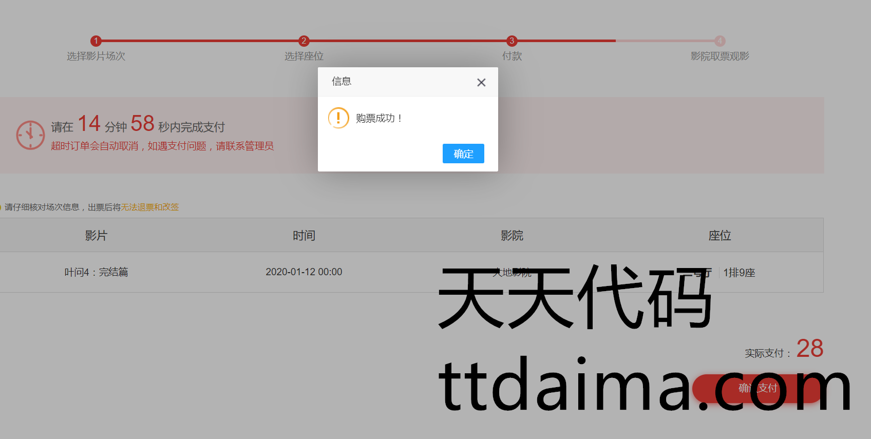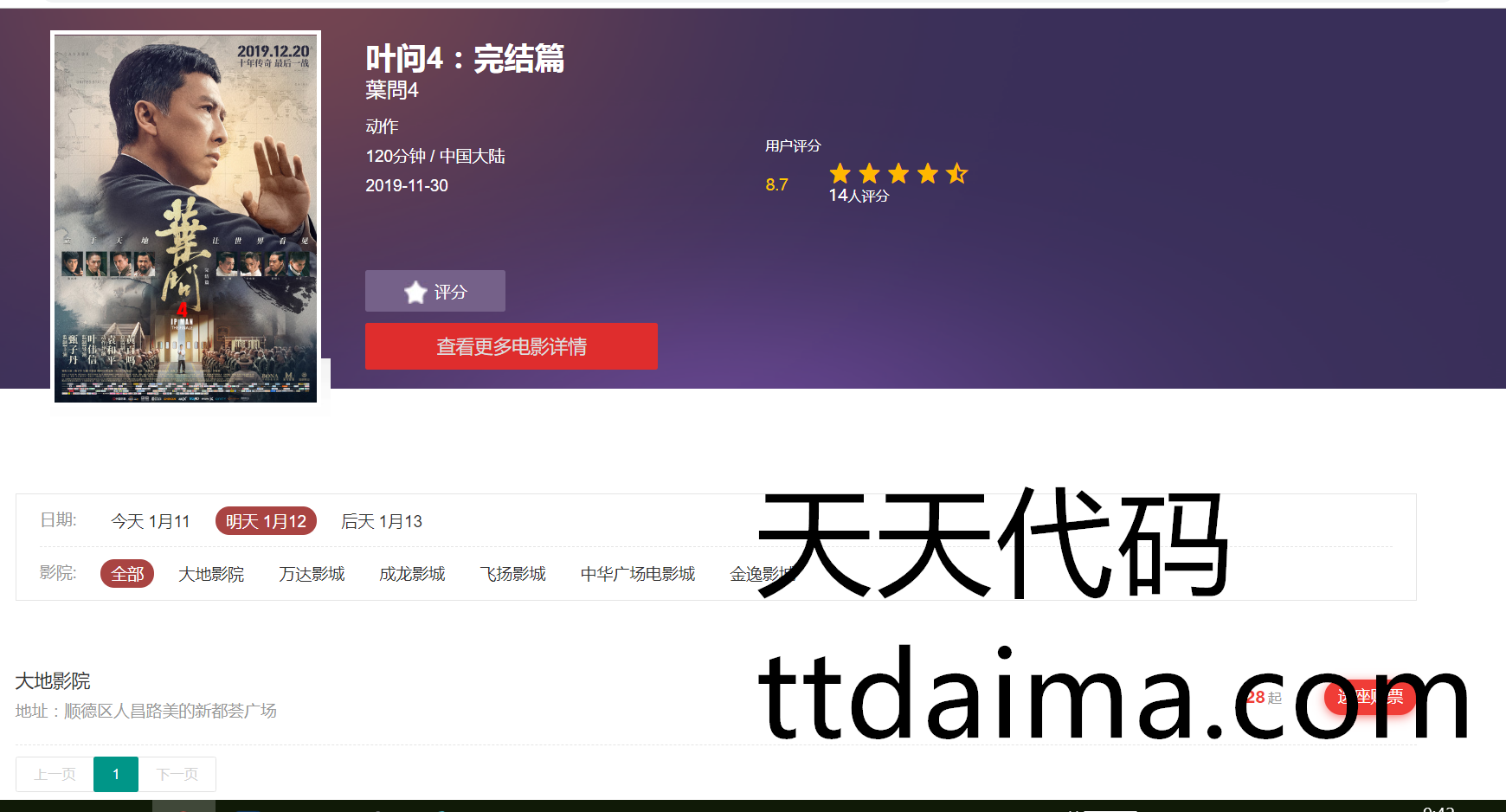 本基于JSP+Servlet+bootstrap开发电影院购票系统由天天代码收集测试整理。