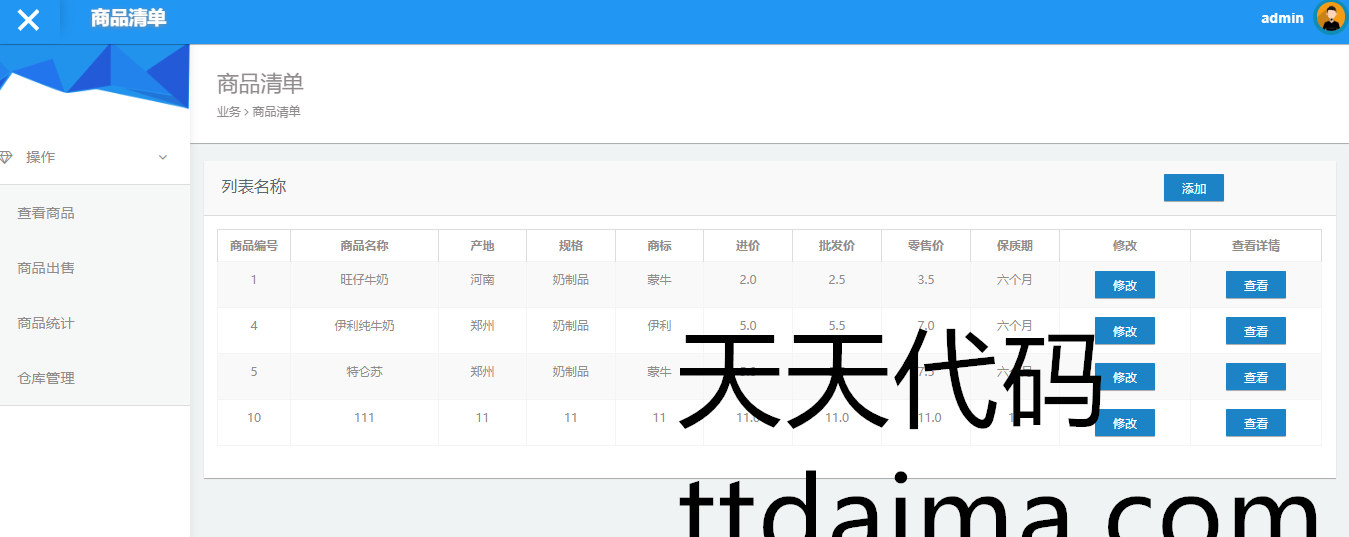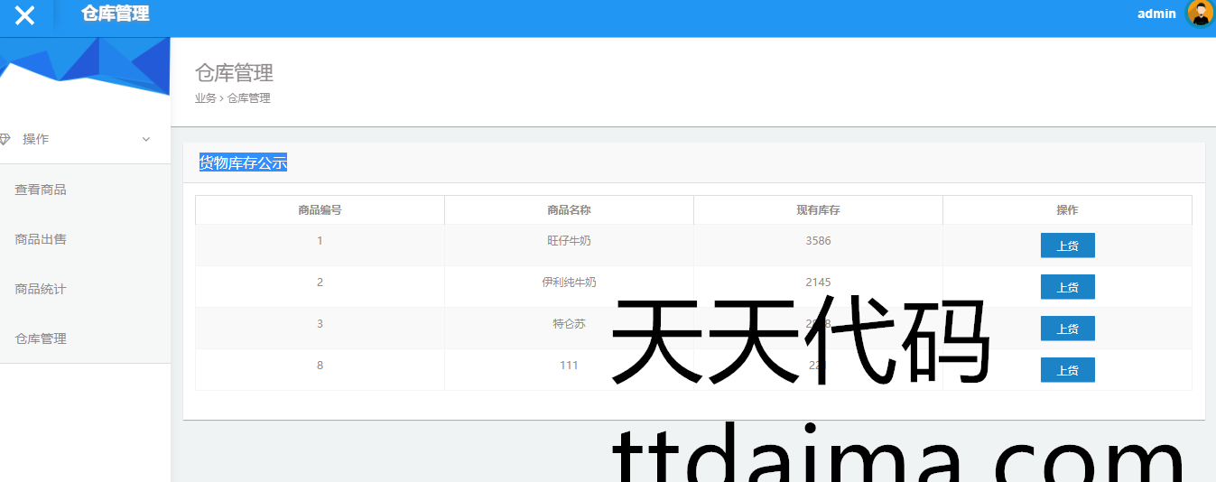 实现了如下功能:管理员可以对超市的货品进行基本的管理,包括,查看商品,修改,添加,商品出售,商品统计,仓库管理等功能。