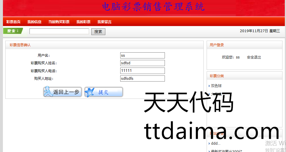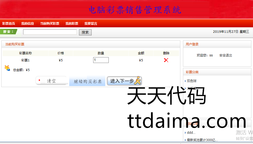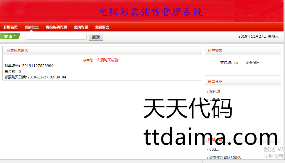 本基于S2SH开发彩票购买系统由天天代码收集测试整理。