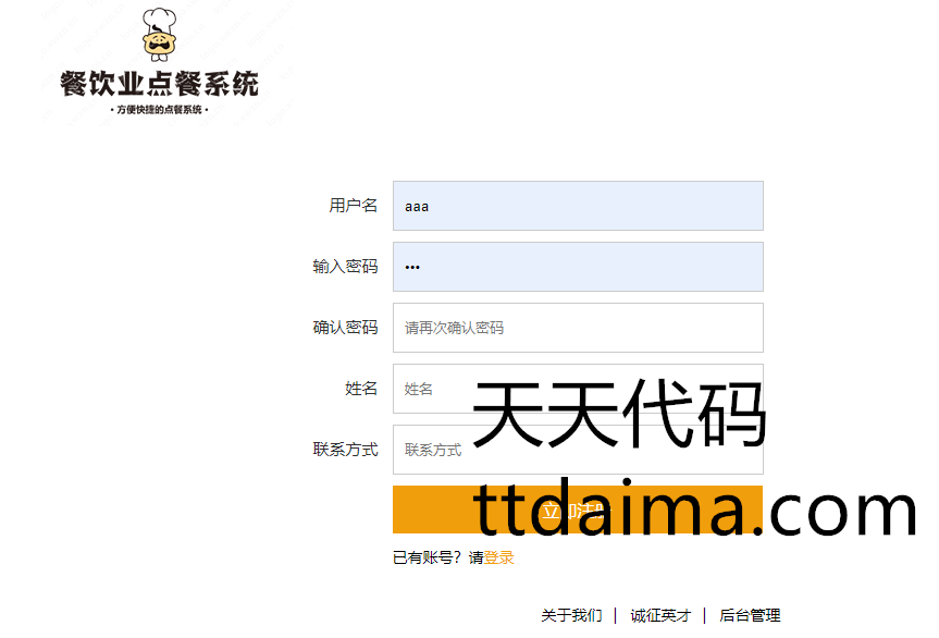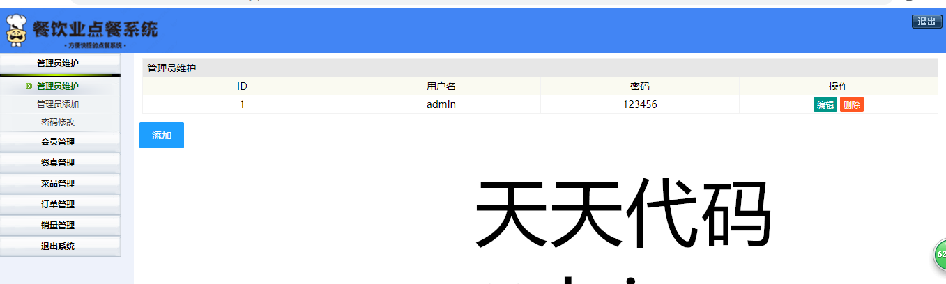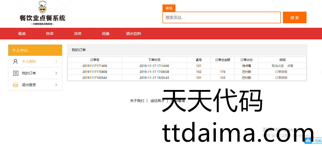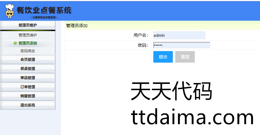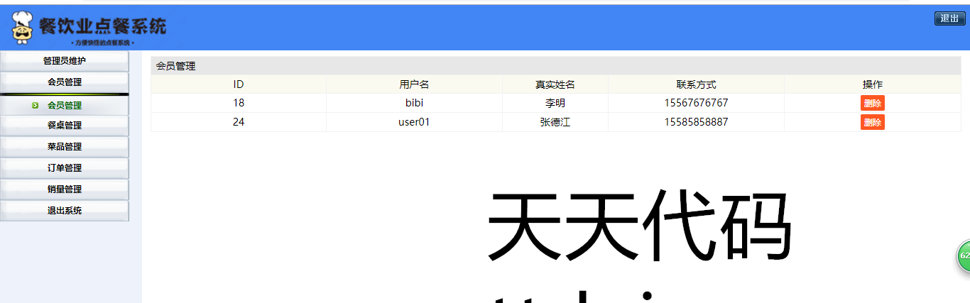本基于SSM开发餐饮业点餐系统由天天代码收集测试整理。