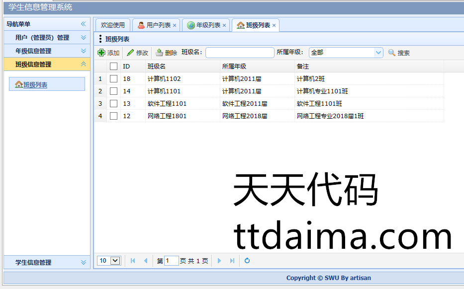 本基于SSM开发学生信息管理系统由天天代码收集测试整理。
