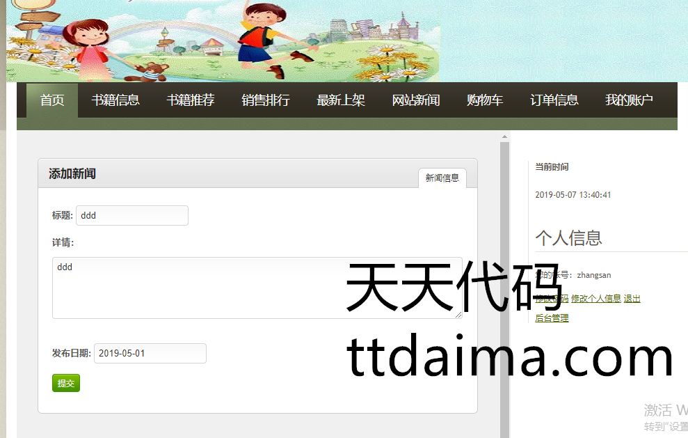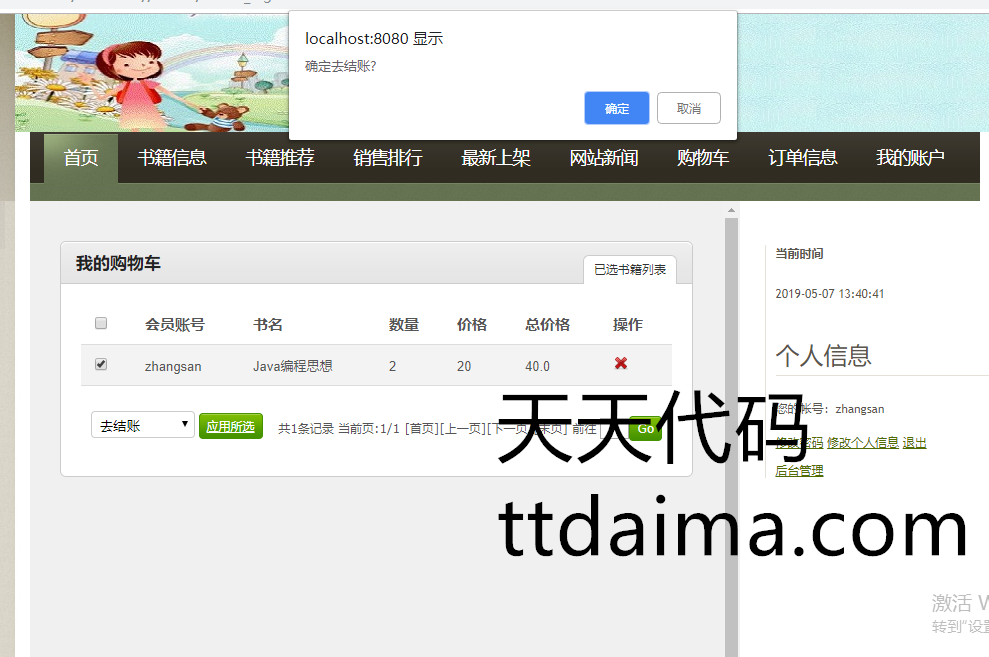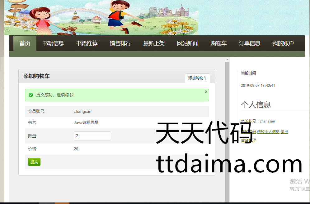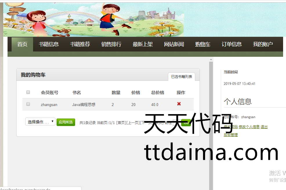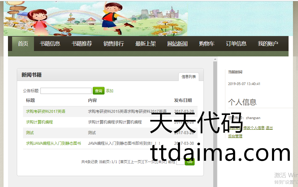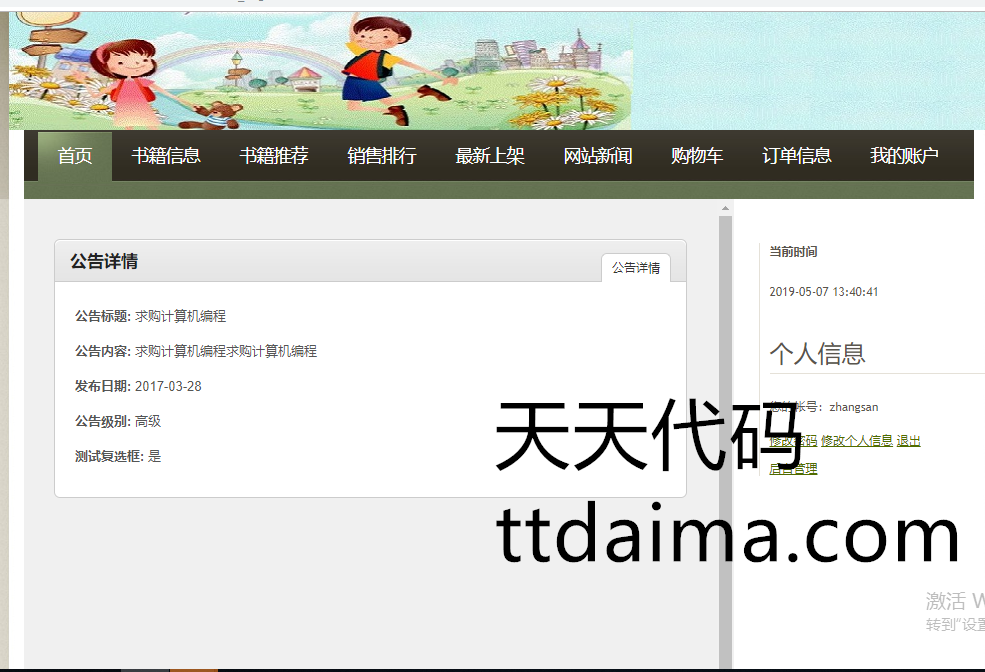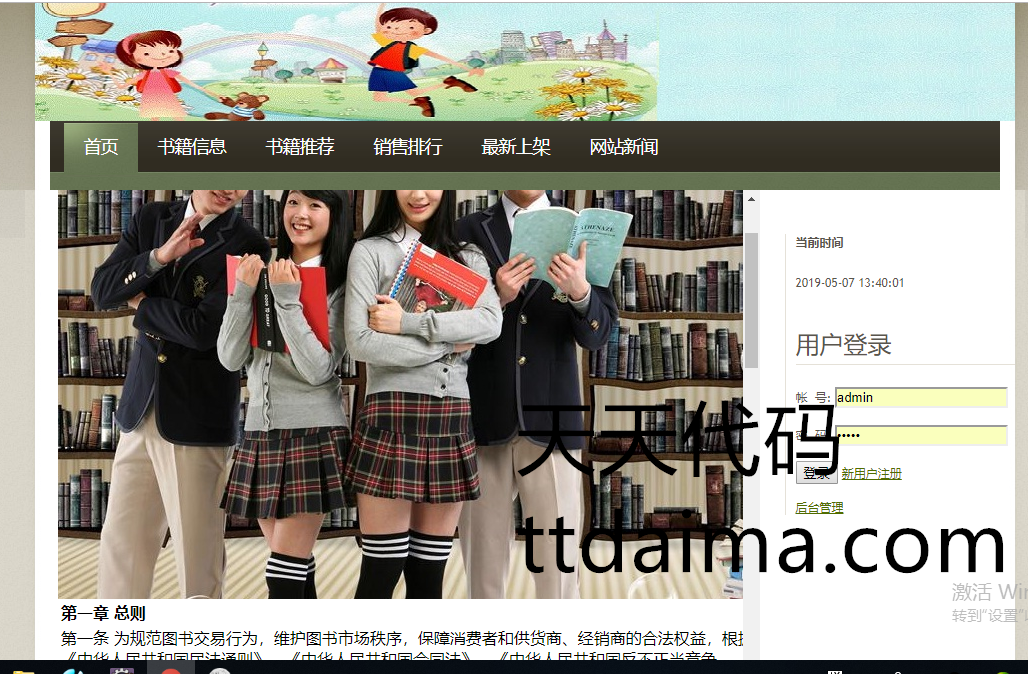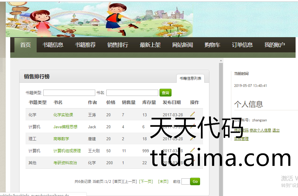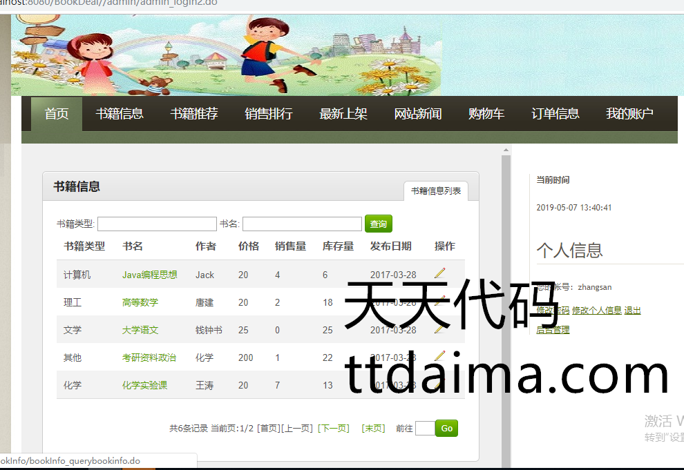 实现了如下功能:前台用户注册登录,查看书籍信息,查看推荐书籍,查看销售排行,查看最新上架的数据,流量网站新闻,添加购物车,在线购买书籍,等功能。后台管理员实现了,书籍信息管理,订单信息管理,账户信息管理,购物车管理,以及网站新闻管理,等功能。