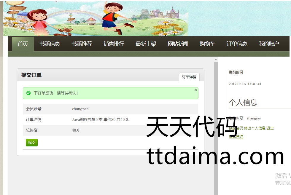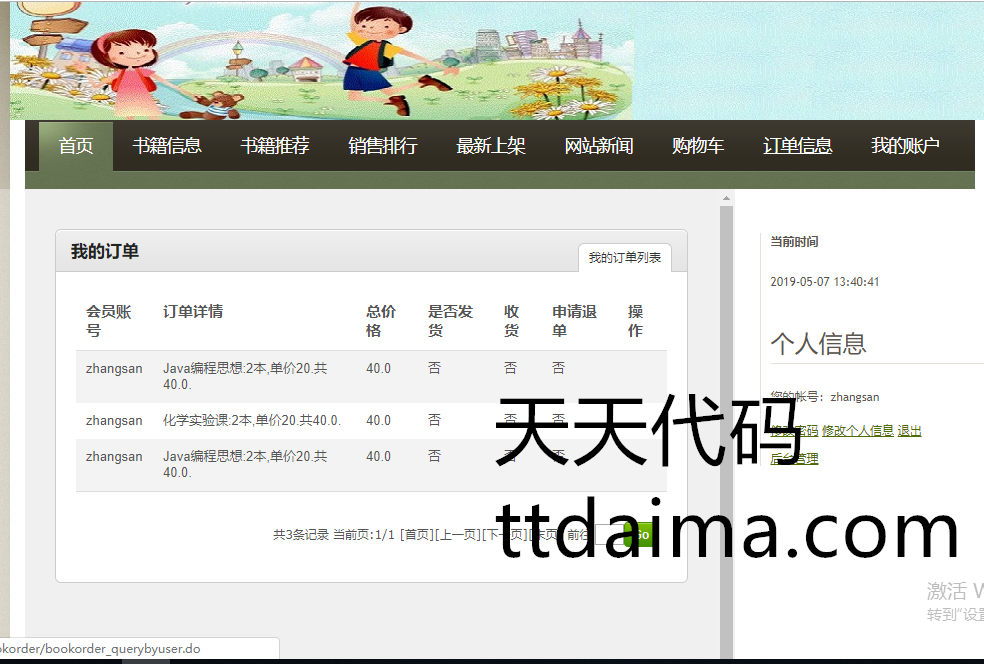 本基于S2SH开发网上书店购物商城系统由天天代码收集测试整理。