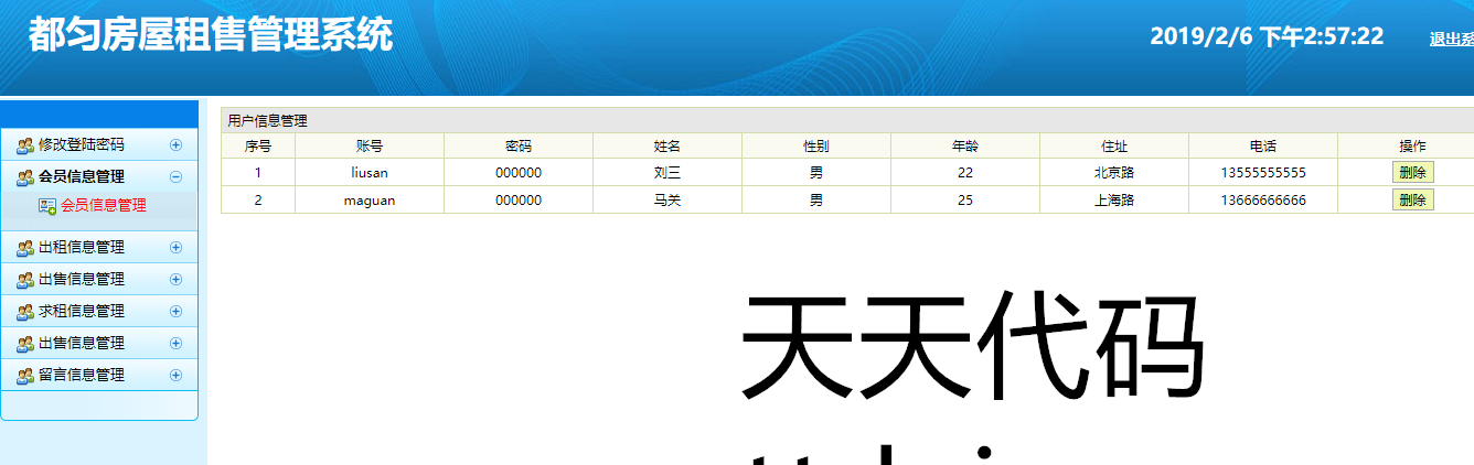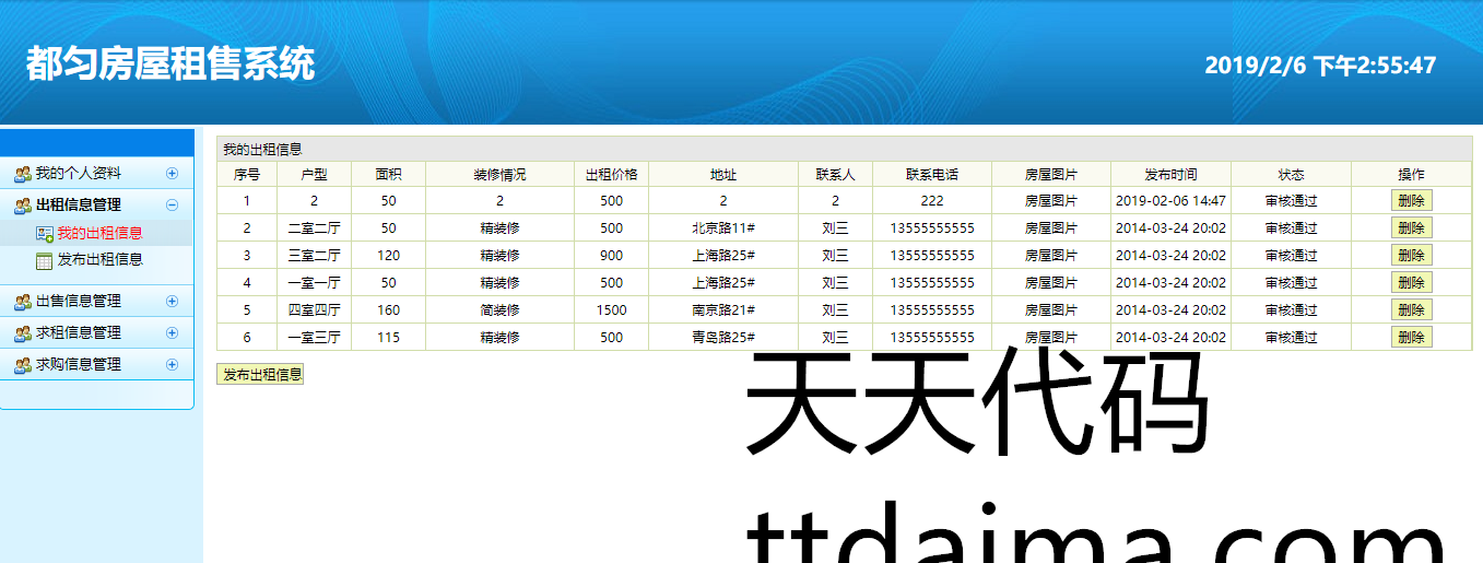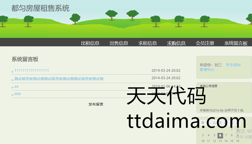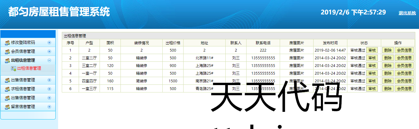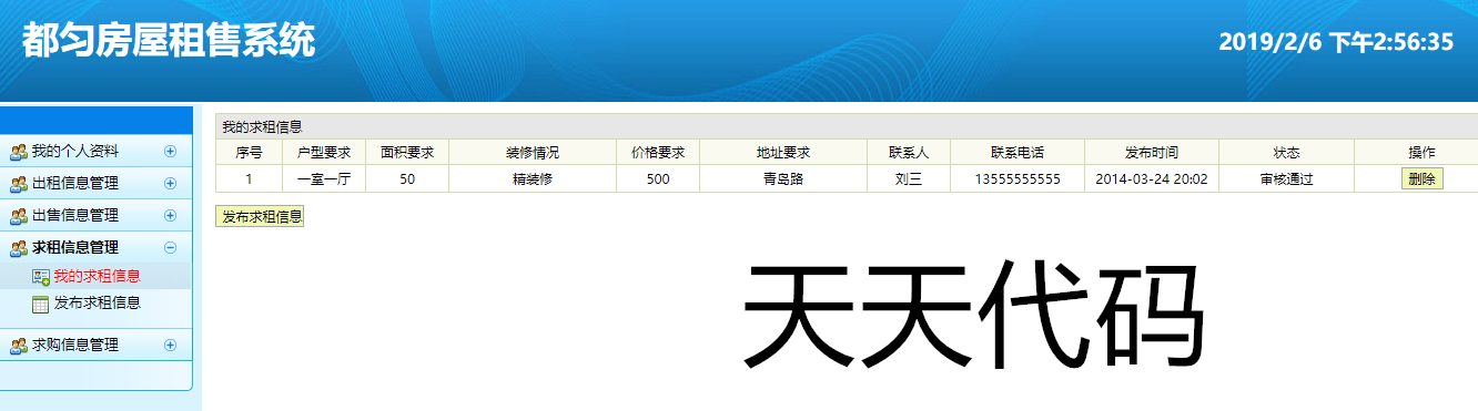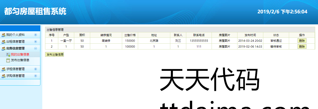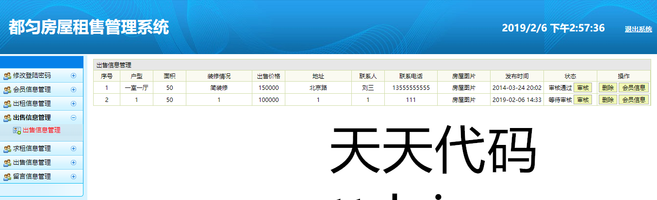 实现了如下功能:用户可以进行注册登陆,然后发布自己的出售,出租房屋信息,发布求购,求租信息,也可以查看别人发布的信息,进行租售,以及发布留言,等功能。管理员后台可以进行,对注册用户的信息管理,对注册用户发布的租售信息,进行管理,对留言的管理,等功能。