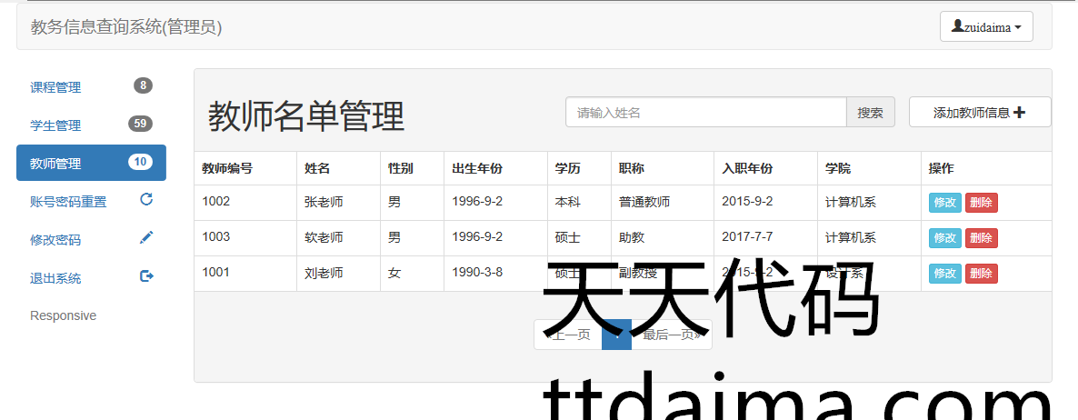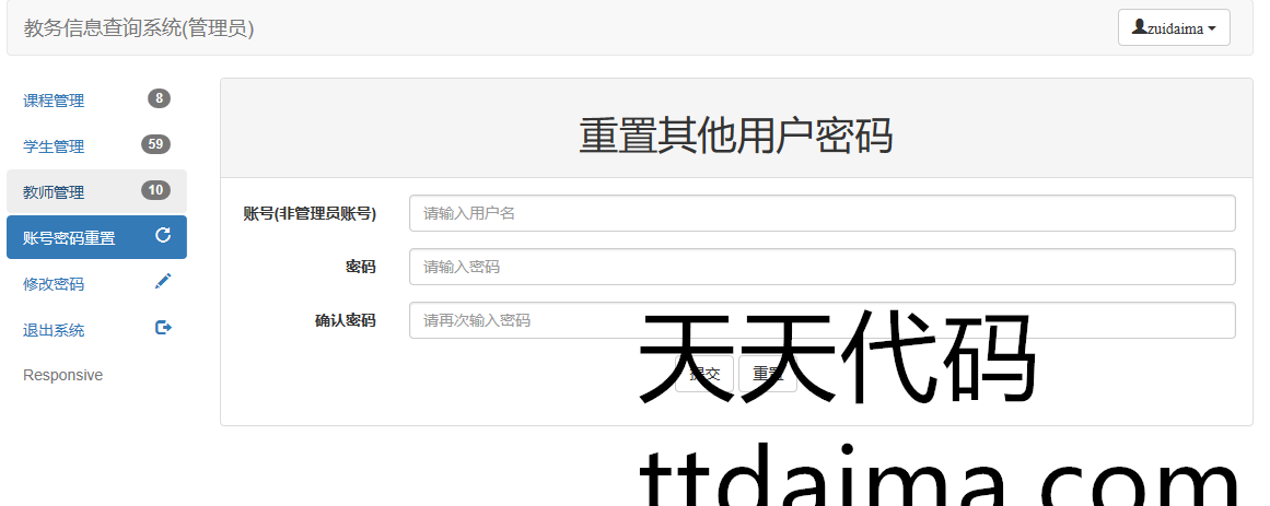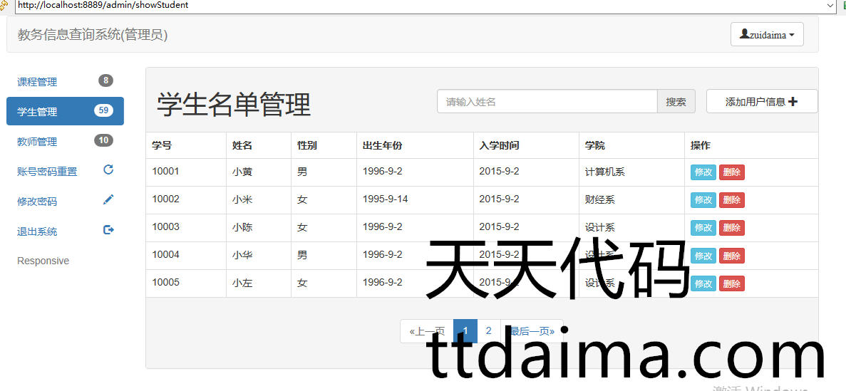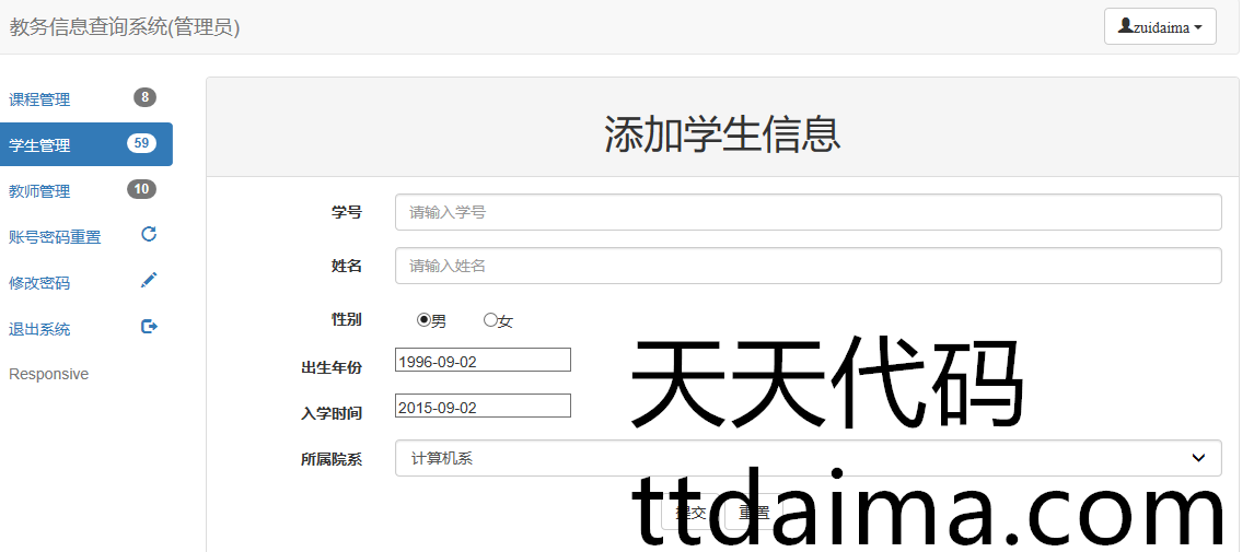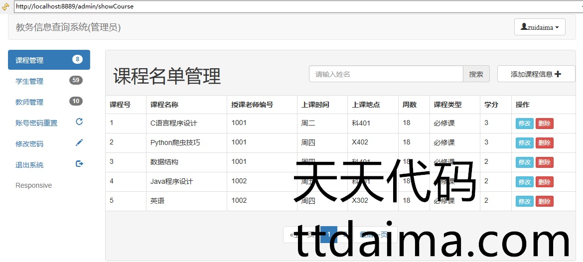 本基于SSM开发教务查询管理系统由天天代码收集测试整理。