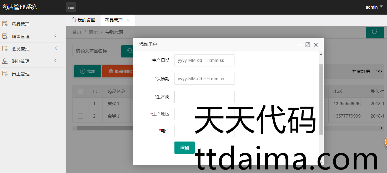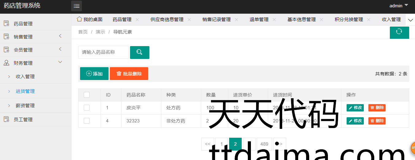 本基于SSM开发药店(药品)管理系统由天天代码收集测试整理。