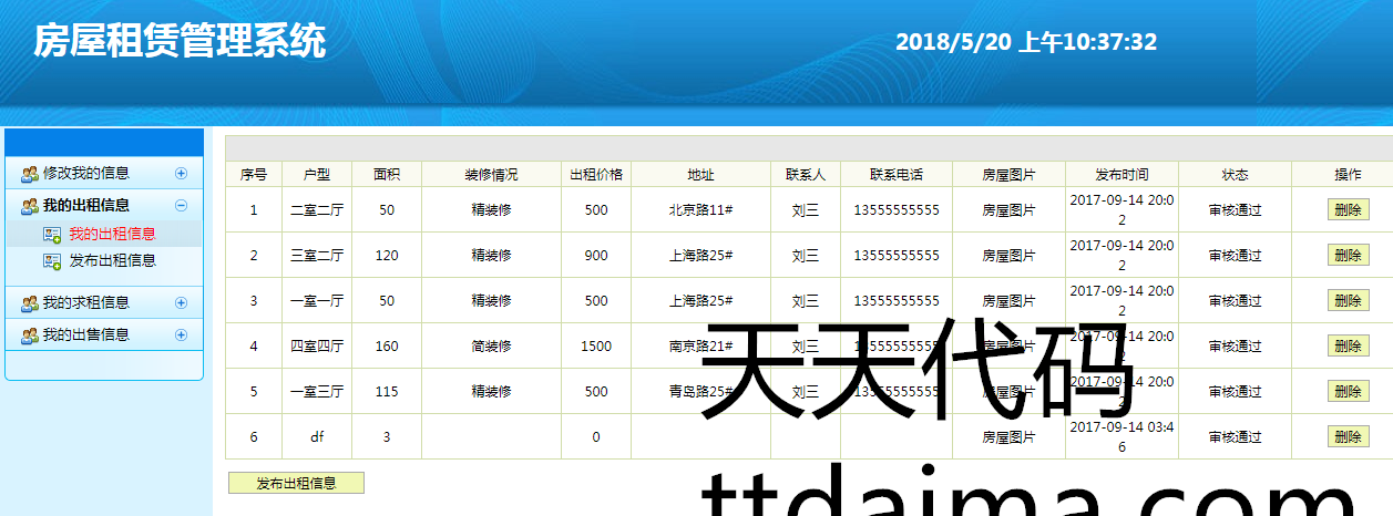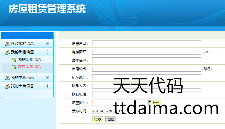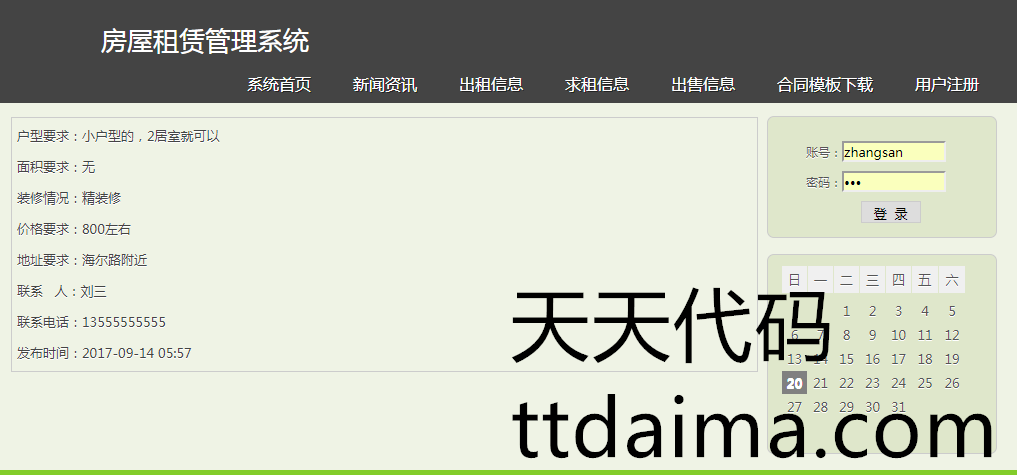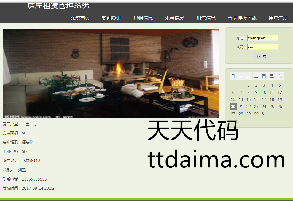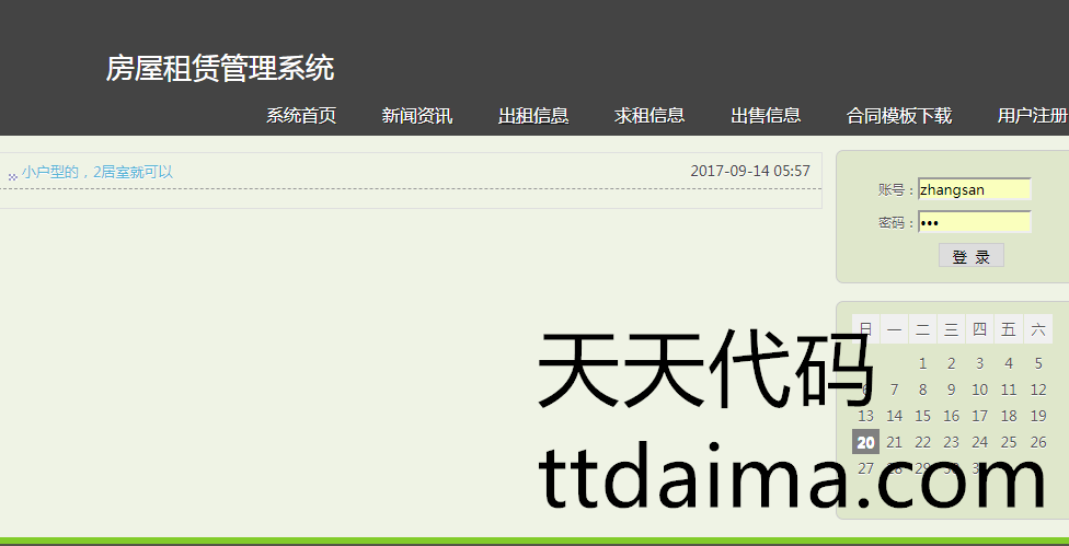 本基于S2SH开发房屋租赁管理系统由天天代码收集测试整理。