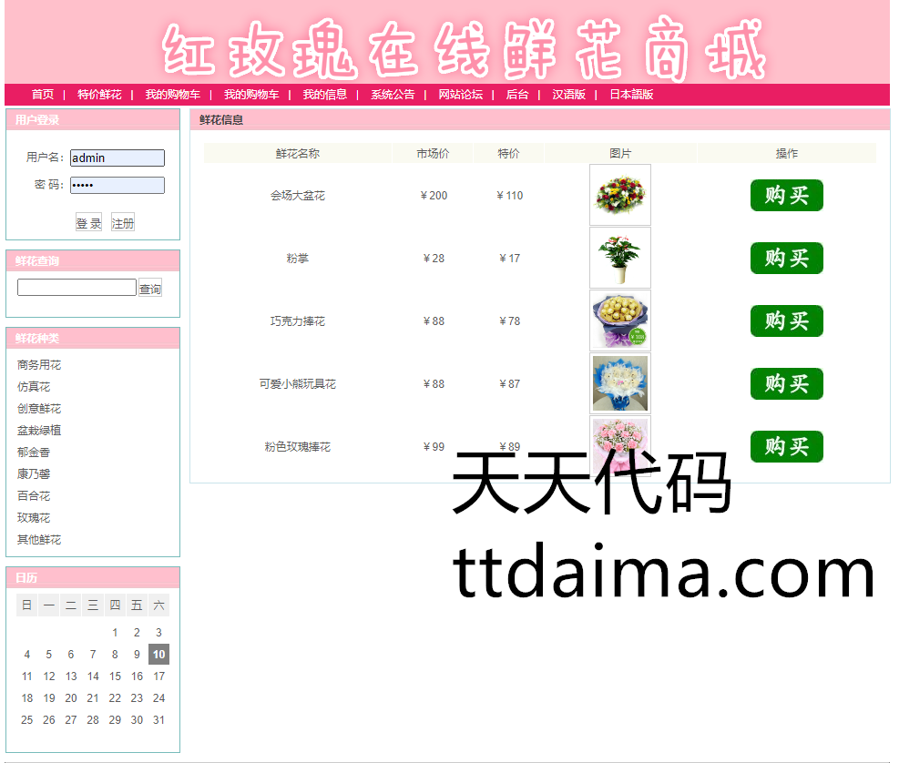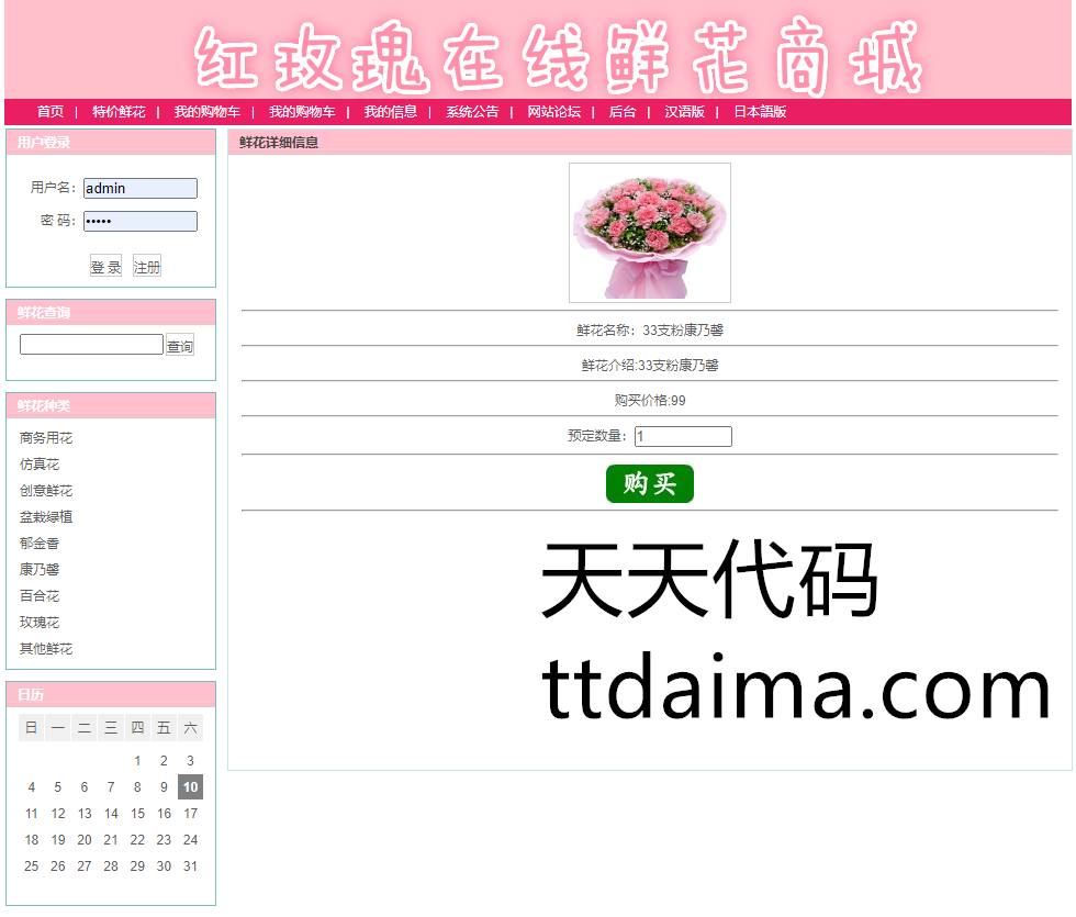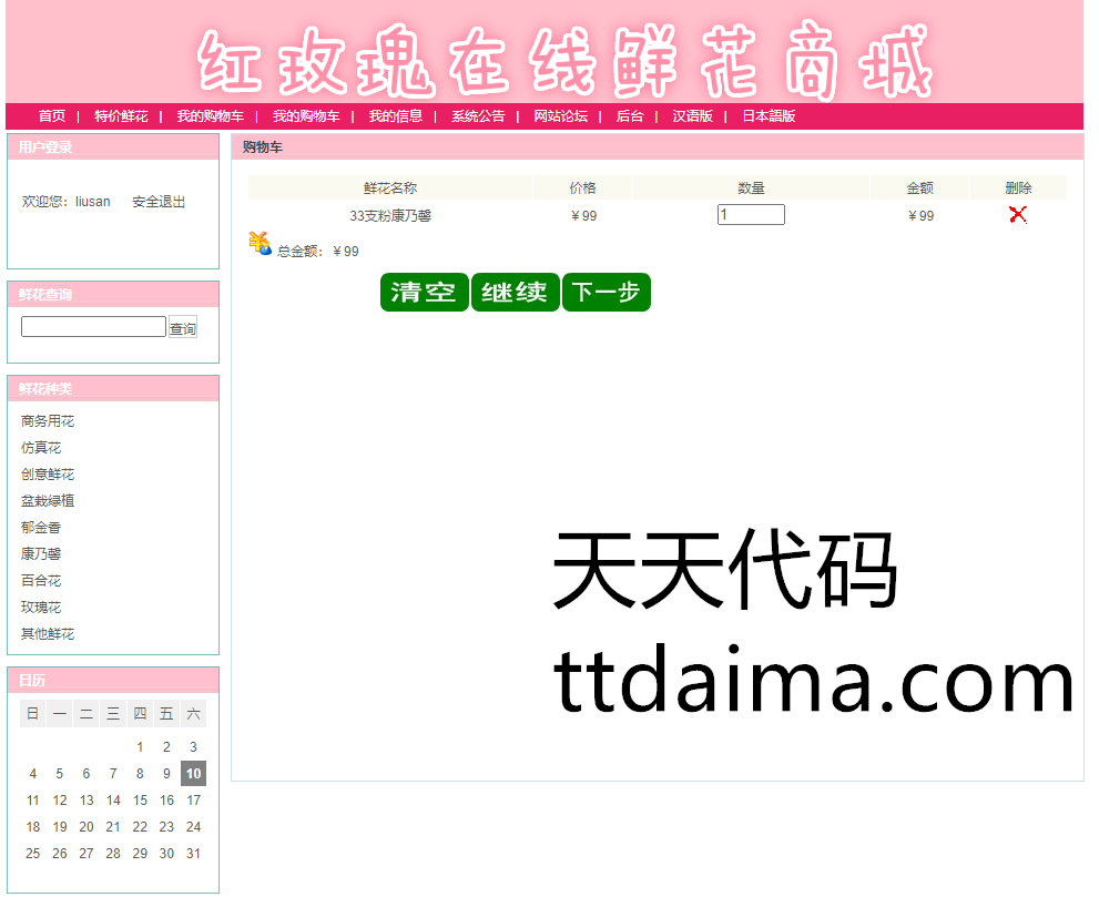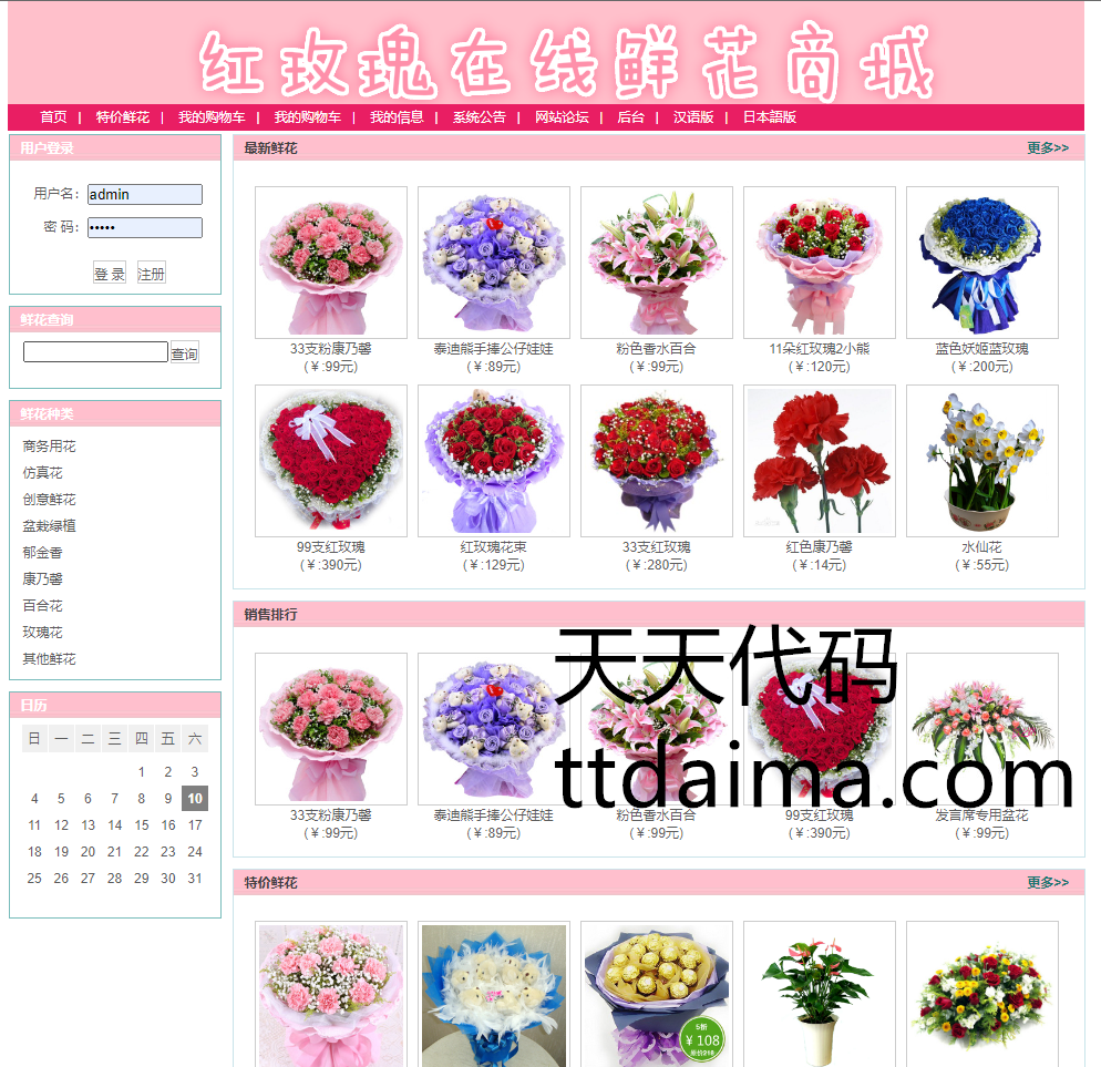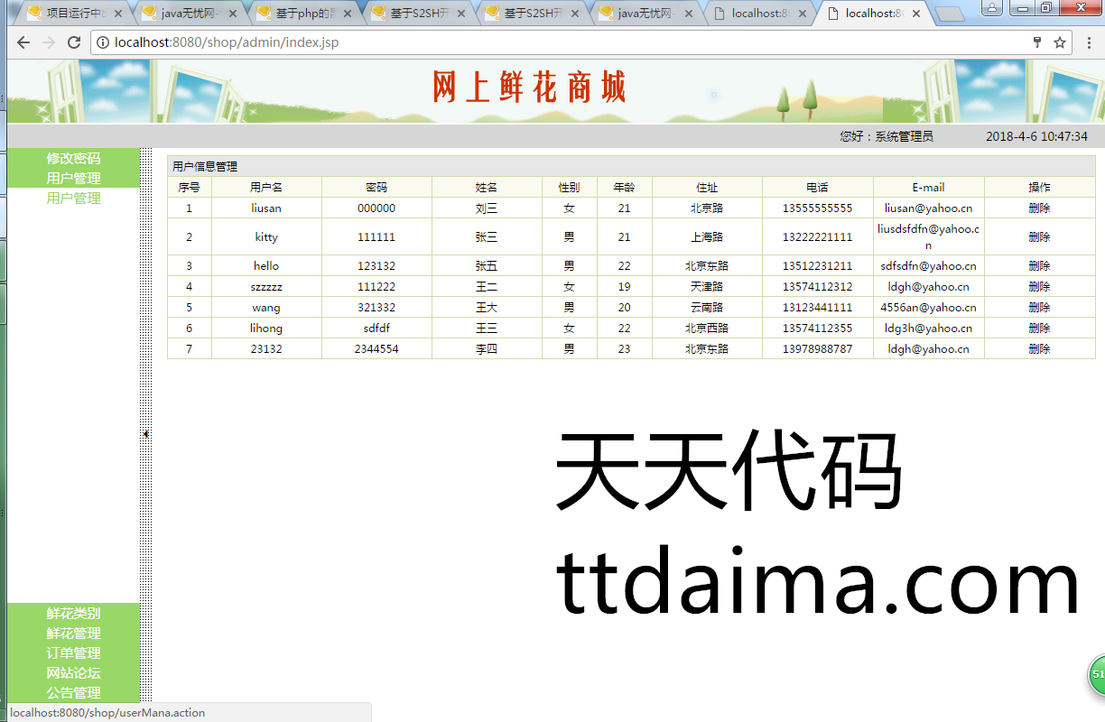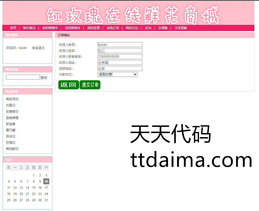本基于S2SH开发网上鲜花(花店)商城系统由天天代码收集测试整理。