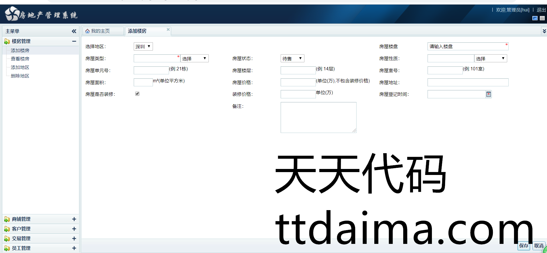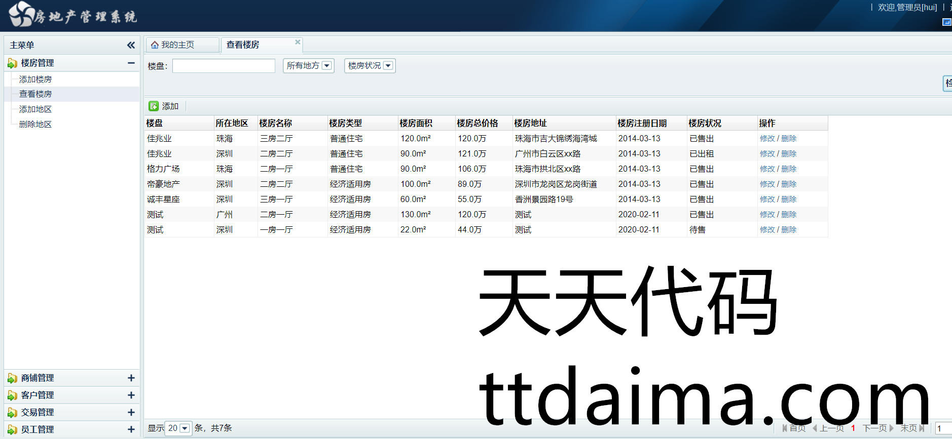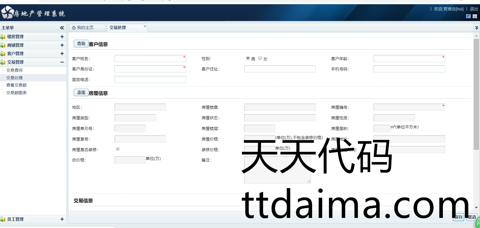 实现了如下功能:管理员登陆系统之后,可以进行,楼房管理,商品管理,客户管理,交易管理,员工管理,等功能。