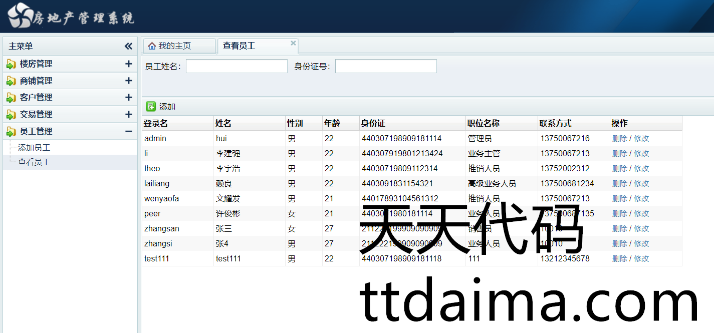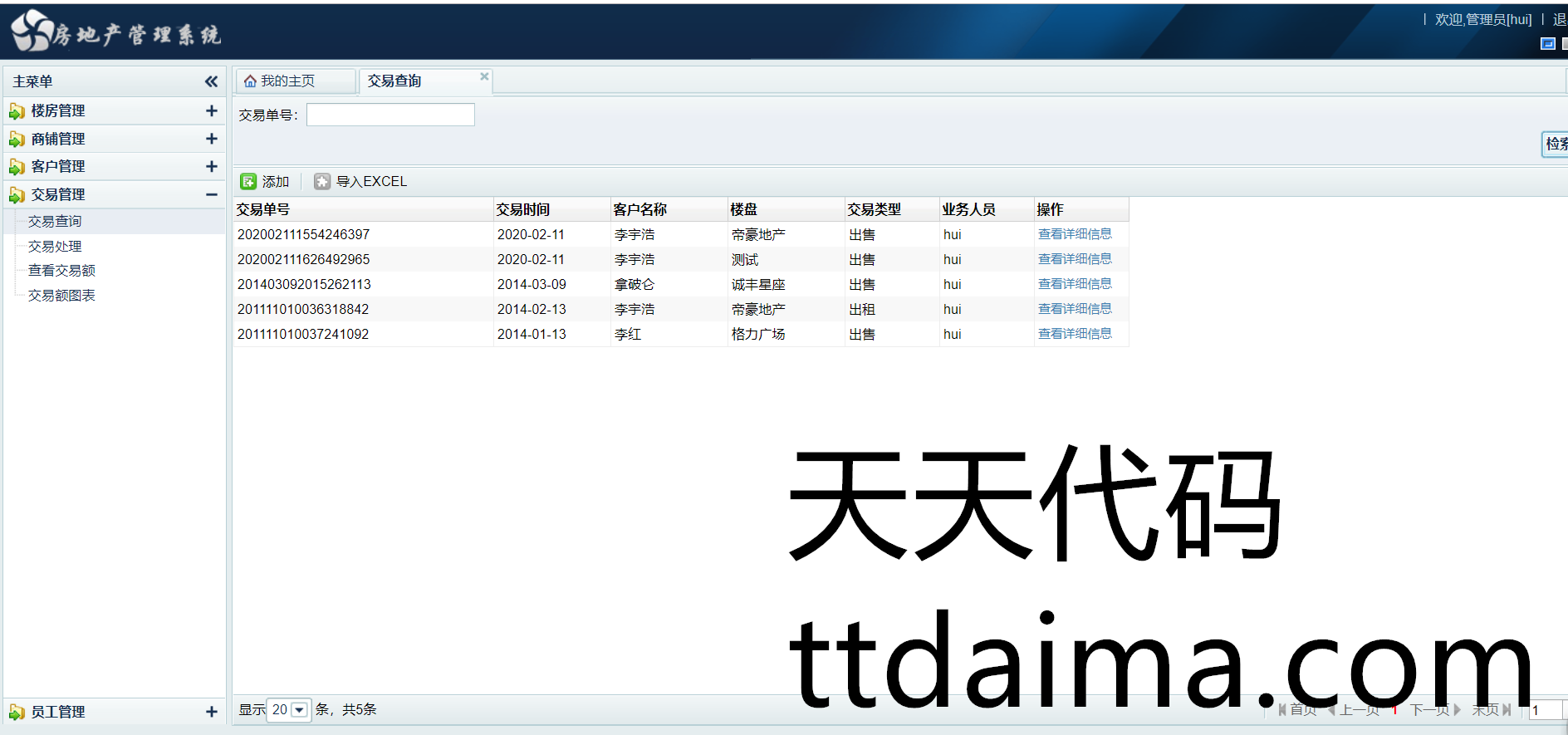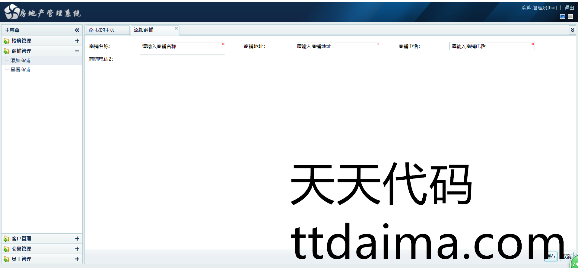 实现了如下功能:管理员登陆系统之后,可以进行,楼房管理,商品管理,客户管理,交易管理,员工管理,等功能。