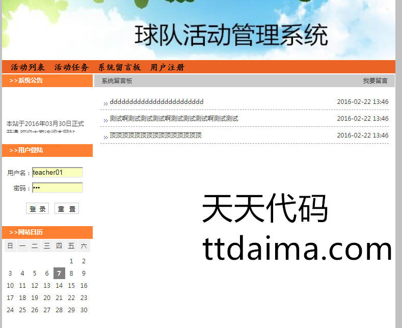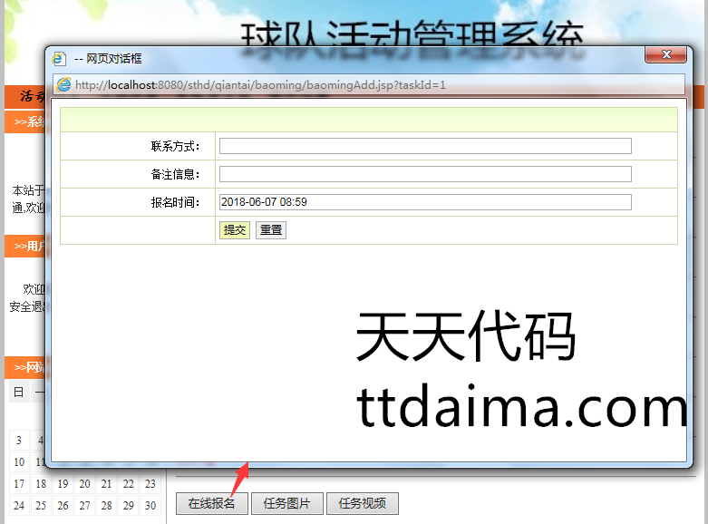 本基于JSP+Servlet开发球队活动管理系统由天天代码收集测试整理。