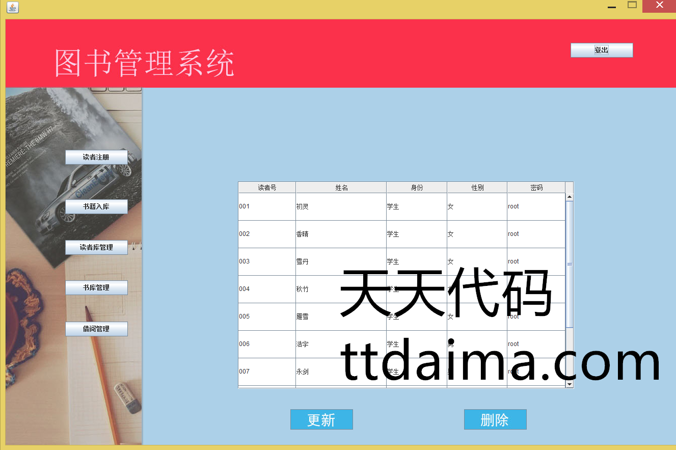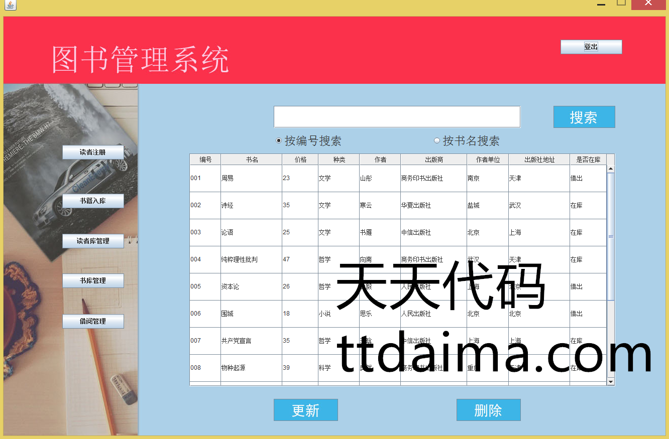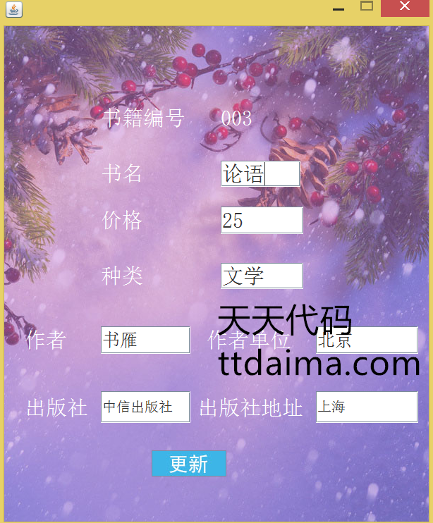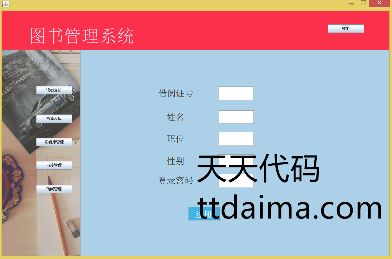 本基于JavaSwing开发图书管理系统(新版本)由天天代码收集测试整理。