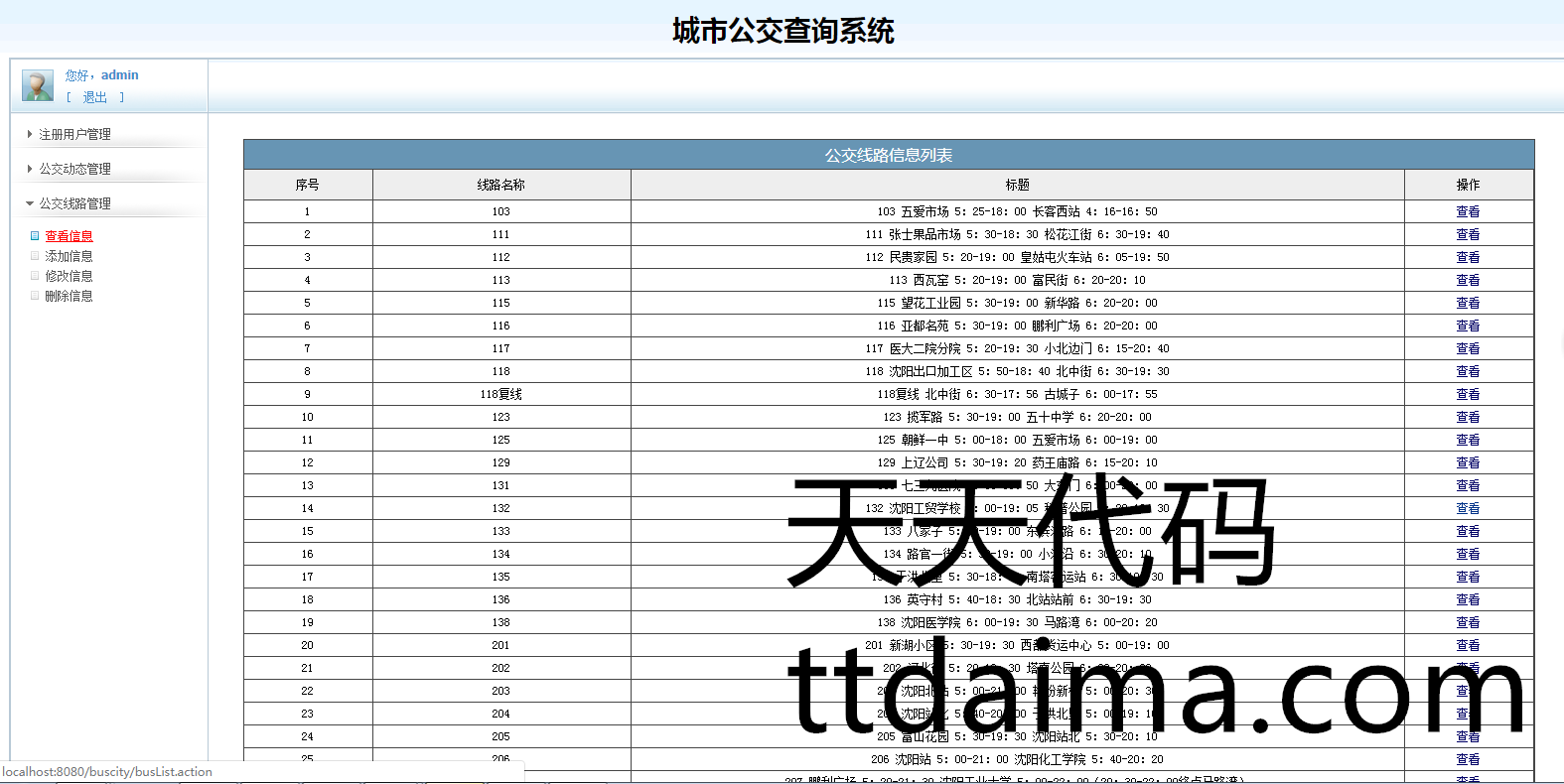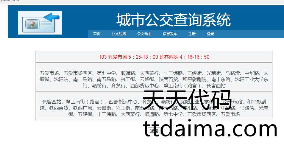 本基于S2SH开发城市公交查询系统由天天代码收集测试整理。