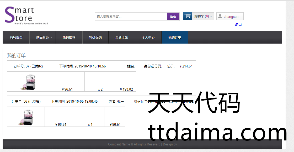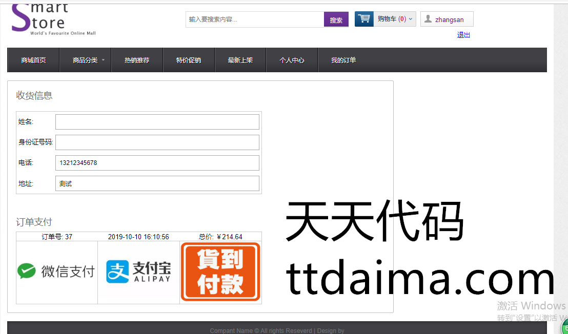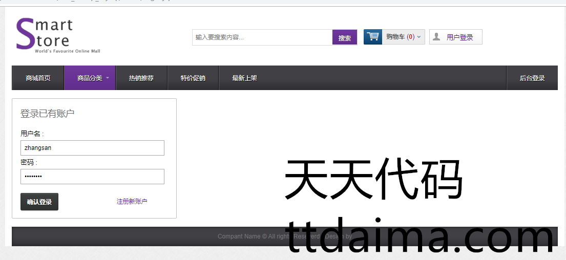 本基于S2SH开发网上购物商城系统由天天代码收集测试整理。