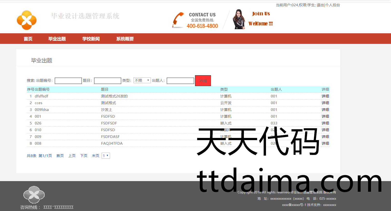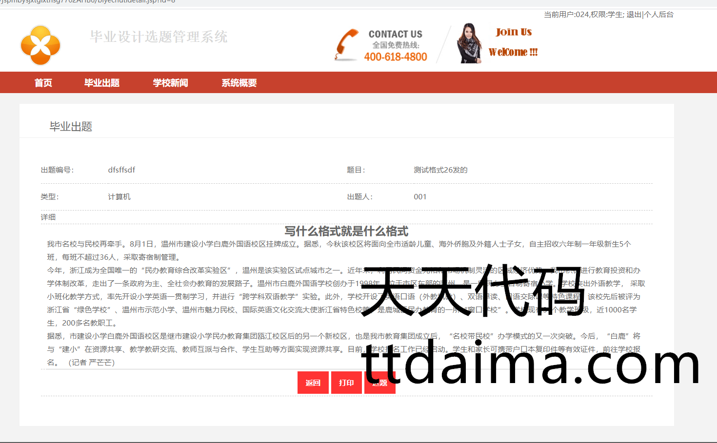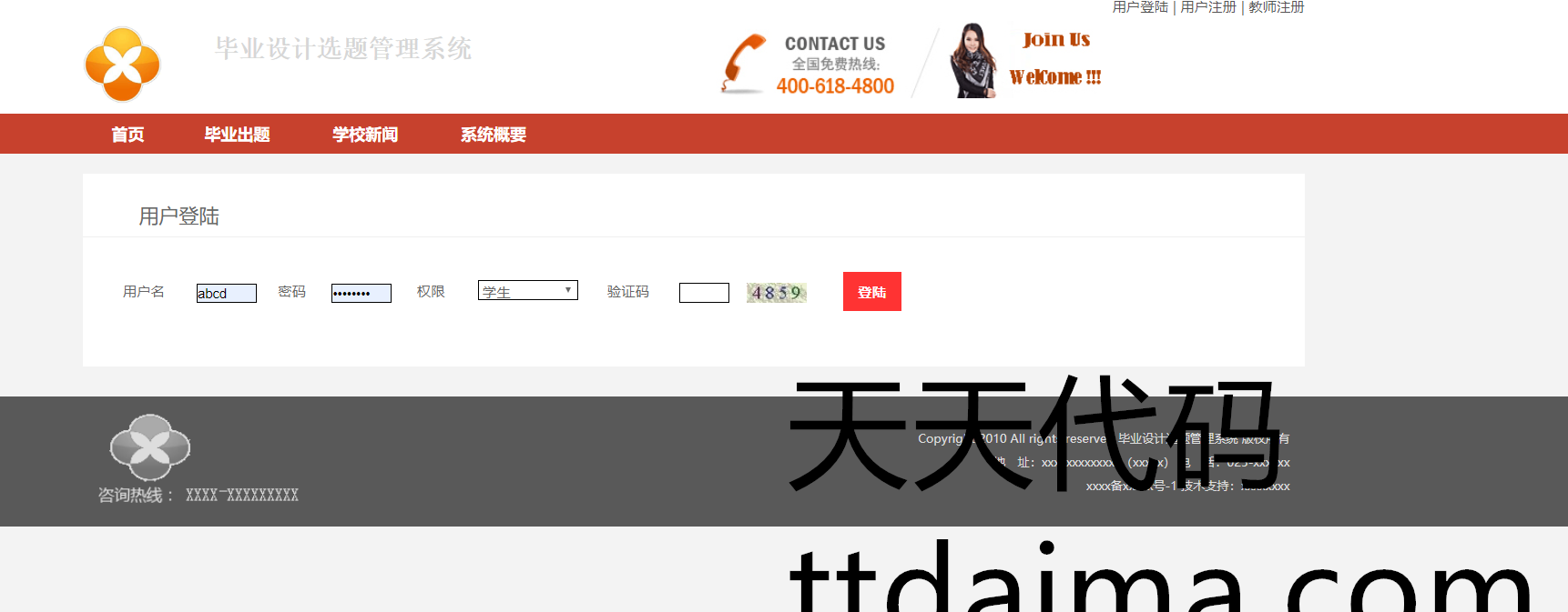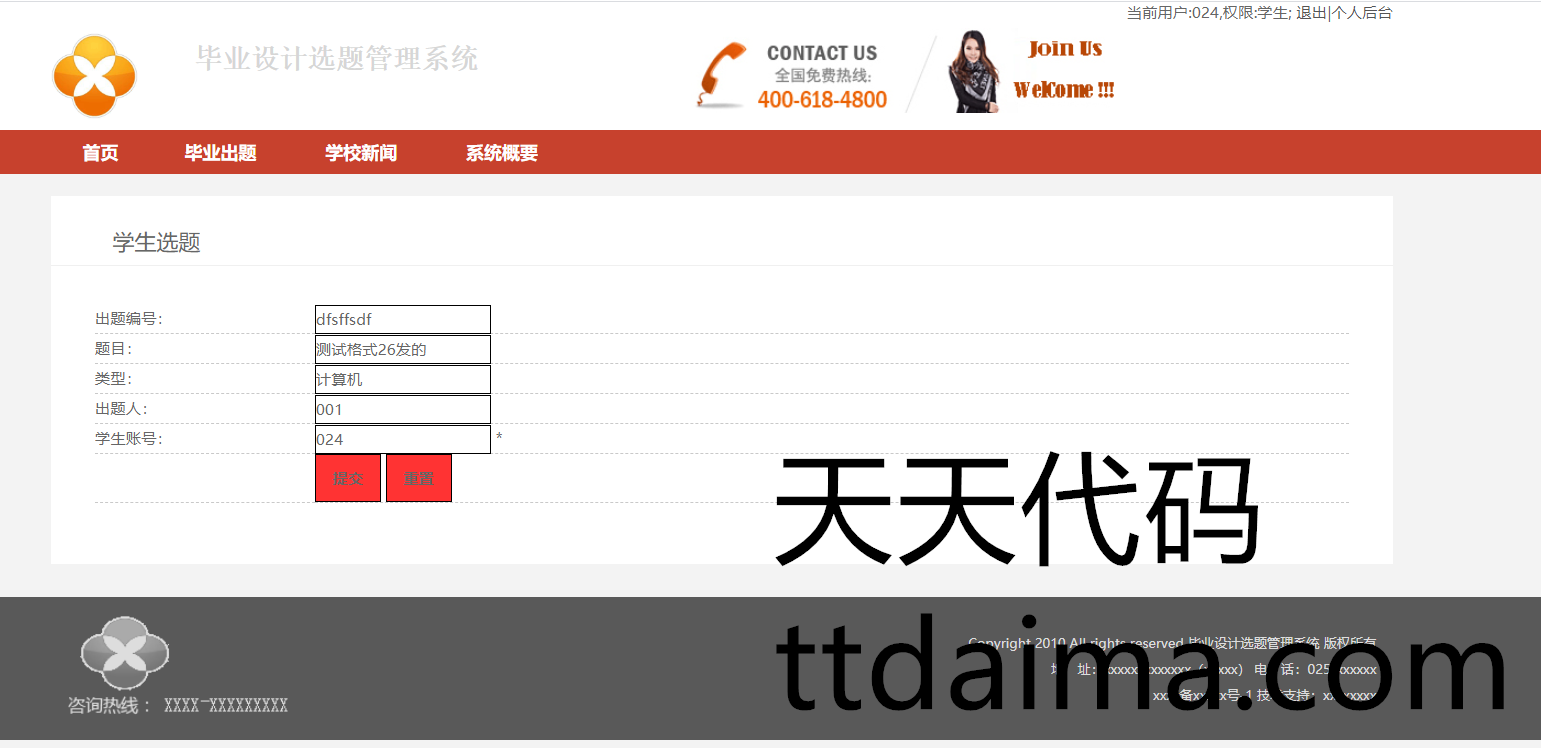 本基于JSP+Servlet开发毕业设计选题管理系统由天天代码收集测试整理。