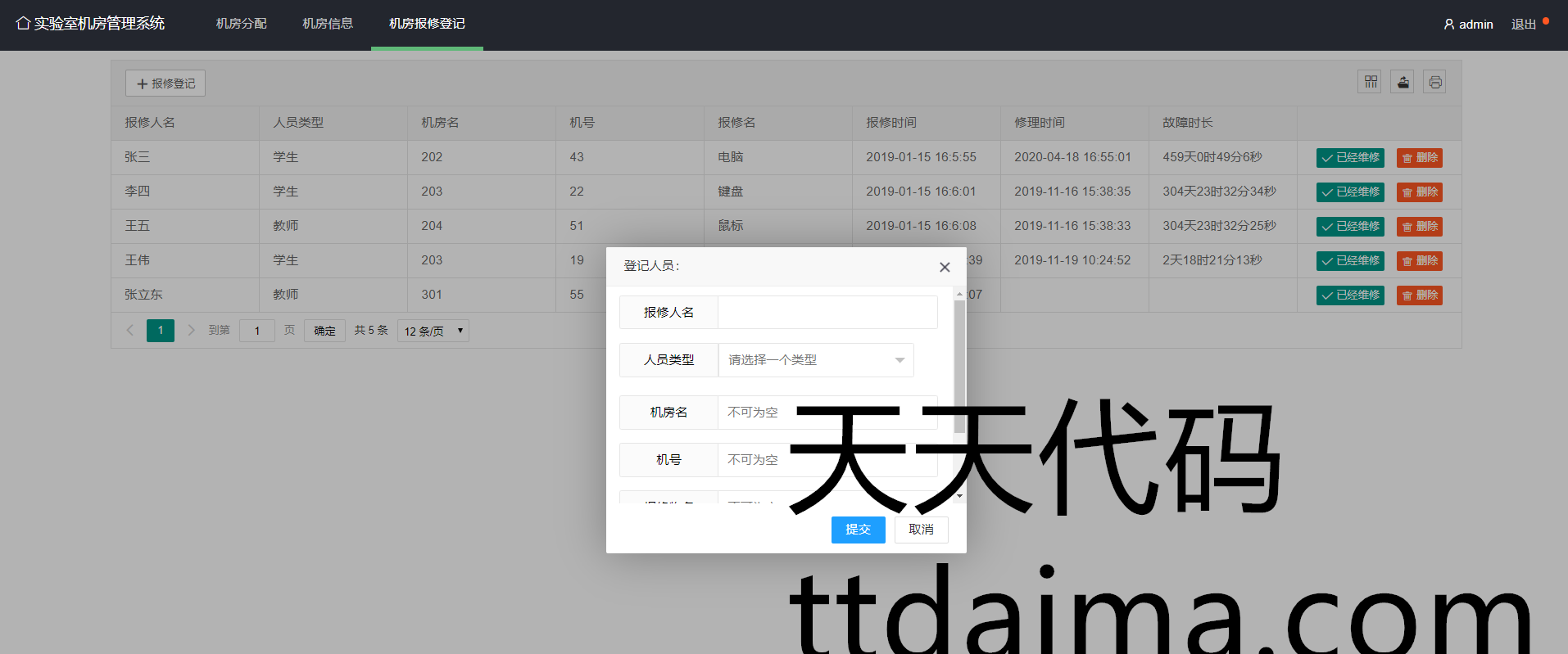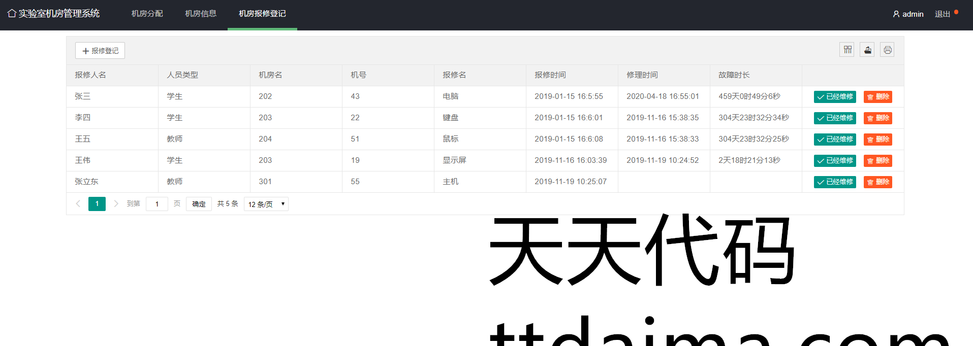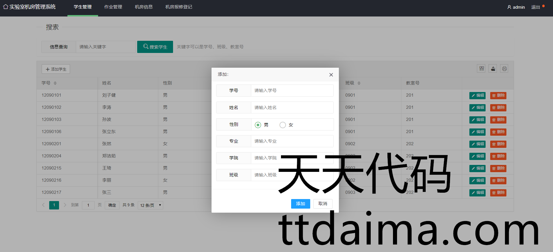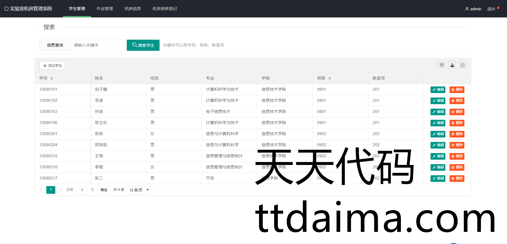实现了如下功能:该系统分为管理员,教师,和学生三种角色,管理员可以进行,机房分配,机房信息管理,机房报修管理,等功能。教师可以进行,学生管理,作业管理,查看机房信息,进行机房报修登记,等功能。学生则可以查看作业,提交作业,提交报修信息等。