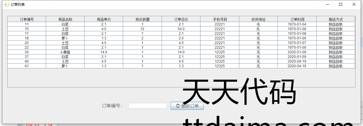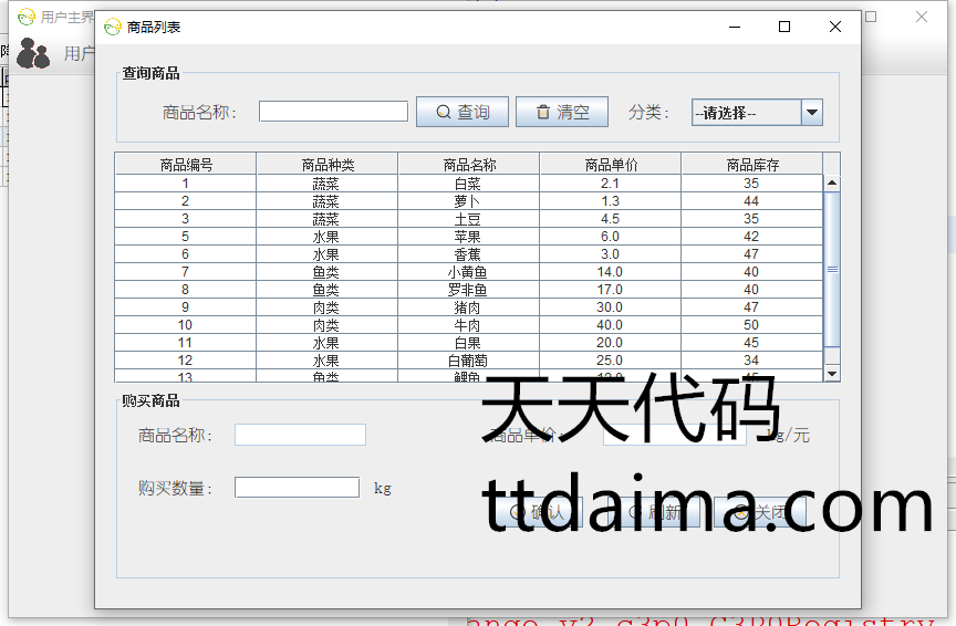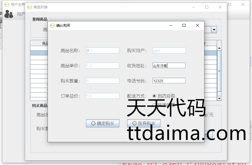 本基于JavaSwing开发天天生鲜购物系统由天天代码收集测试整理。
