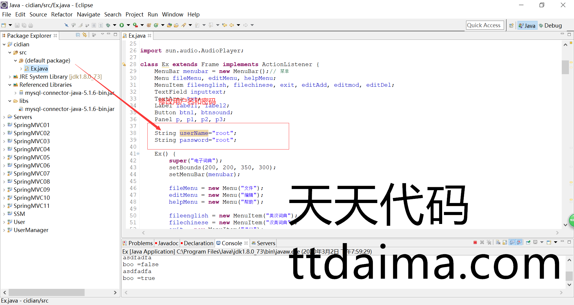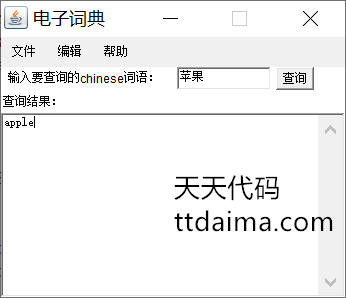 本基于JavaSwing开发电子词典由天天代码收集测试整理。