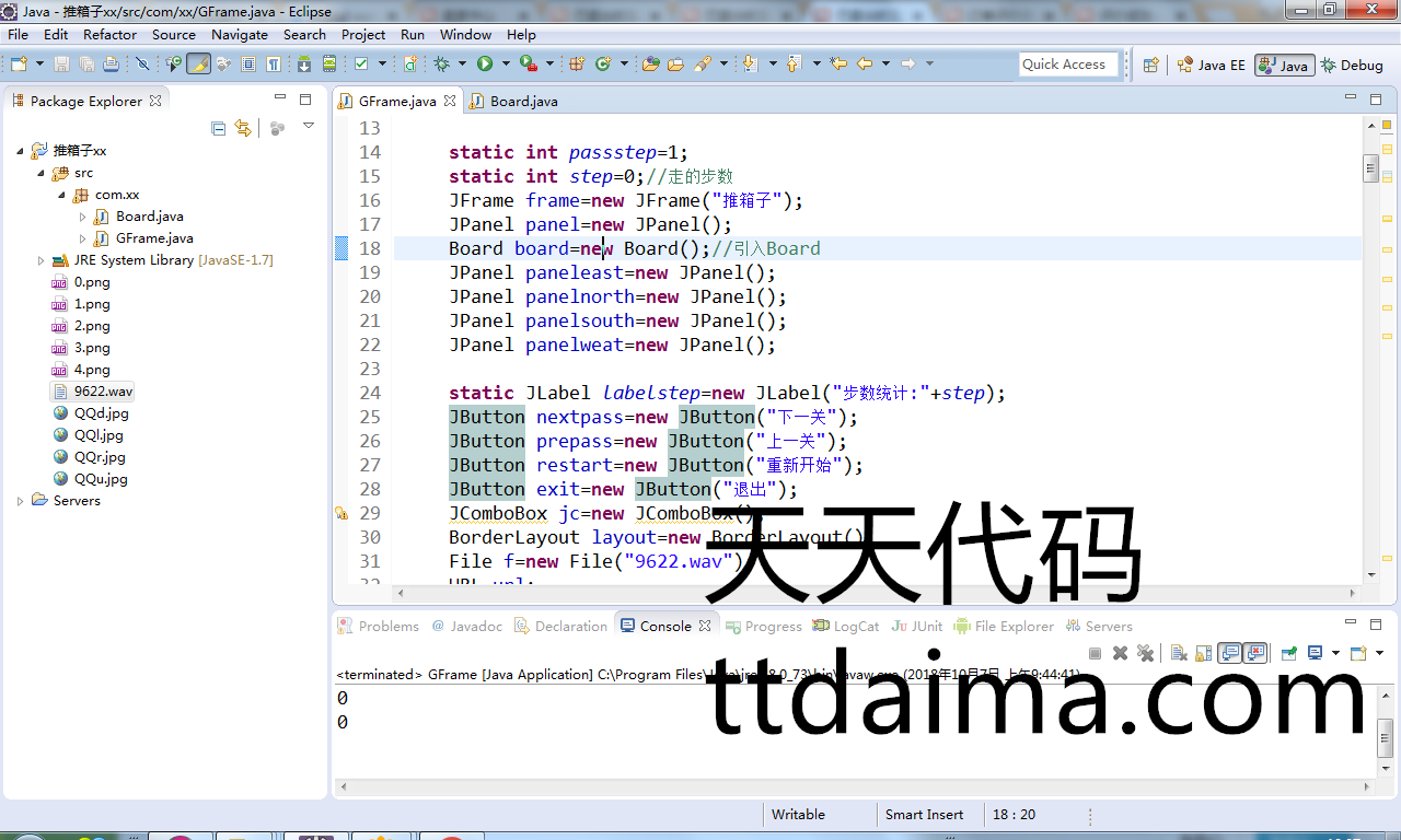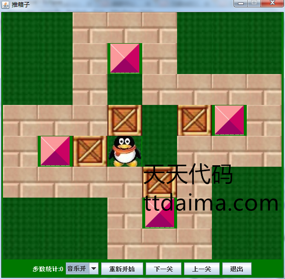 本基于JavaSwing开发推箱子小游戏由天天代码收集测试整理。