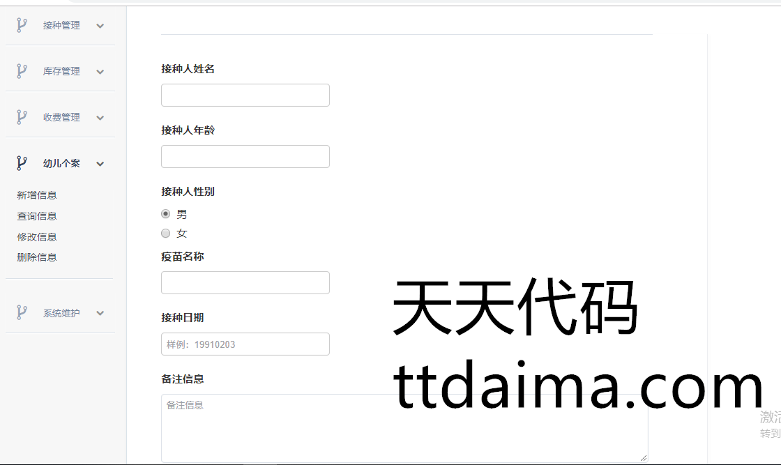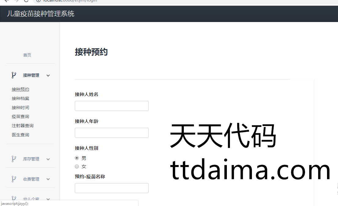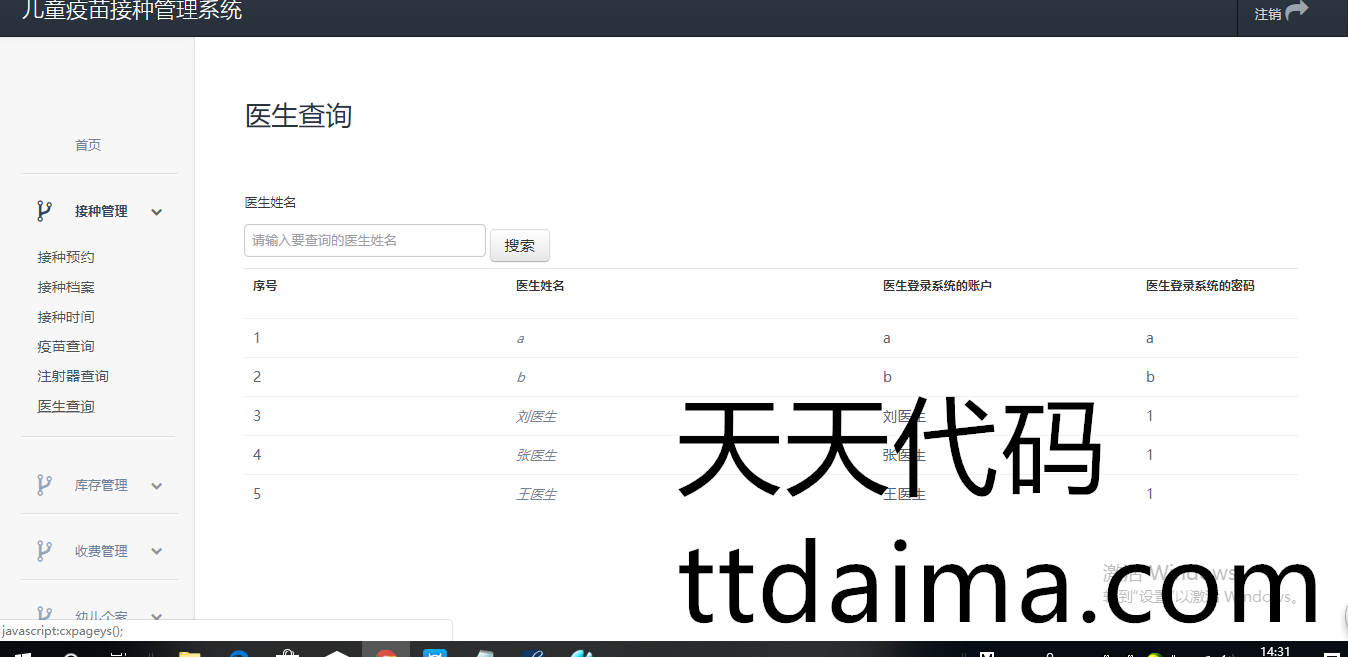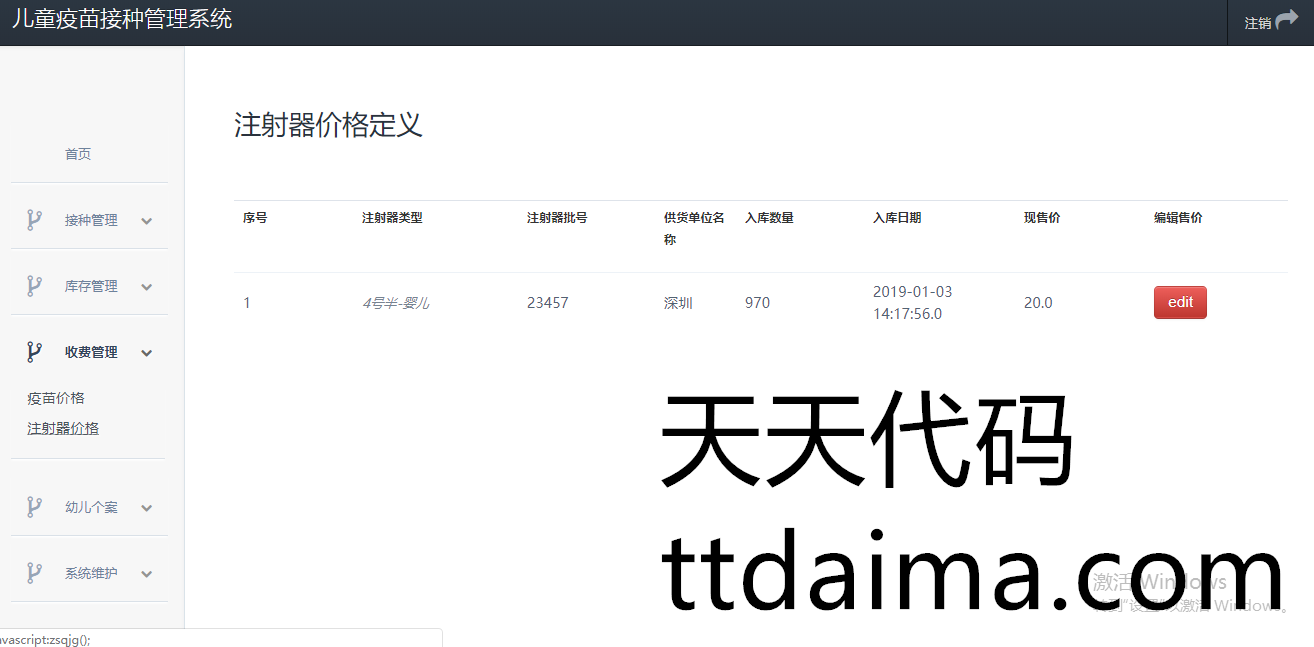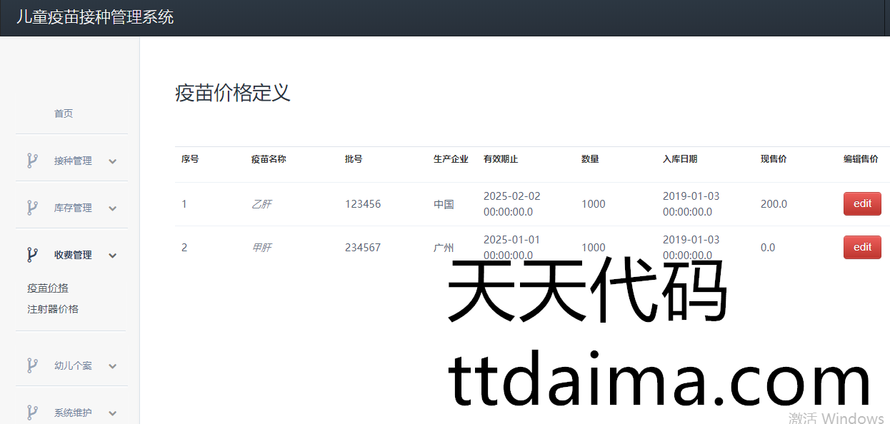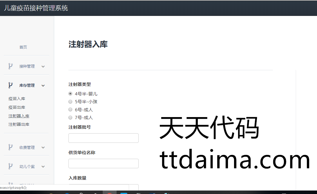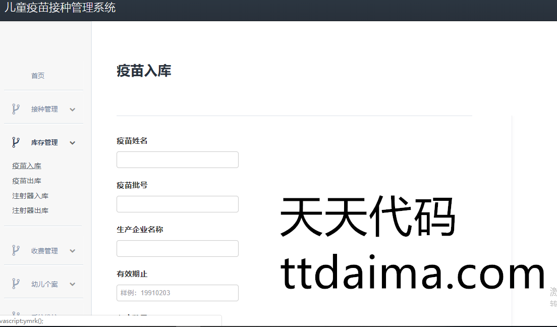 实现了如下功能:该系统提供了,接种管理,库存管理,收费管理,疫苗入库,疫苗出库,用户管理等功能。
