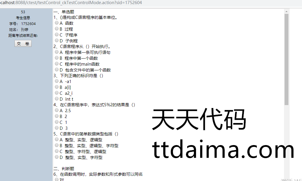 本基于S2SH开发在线考试系统由天天代码收集测试整理。