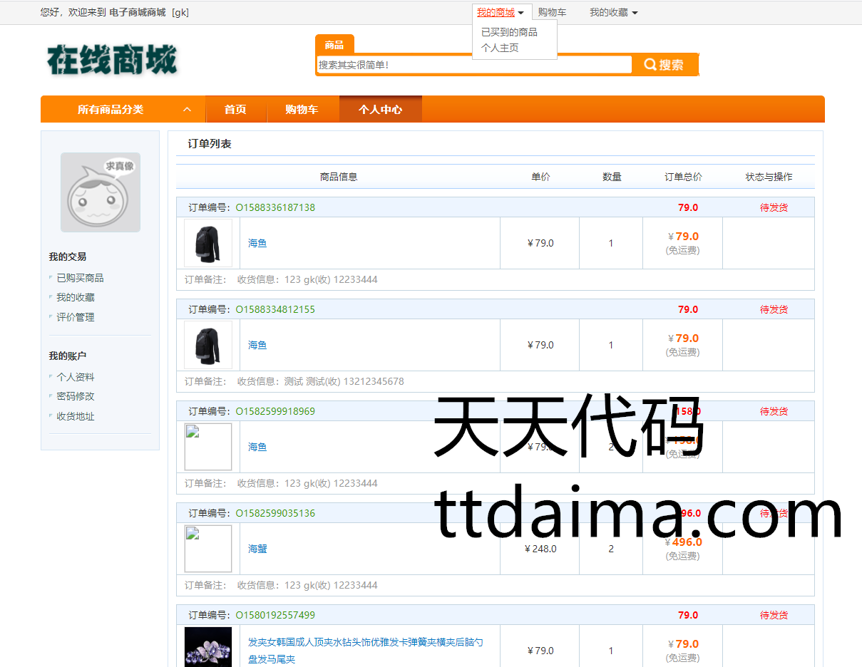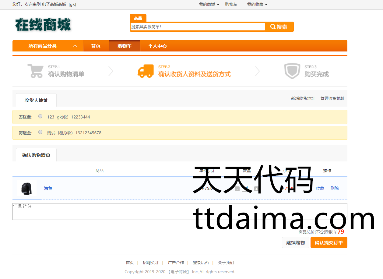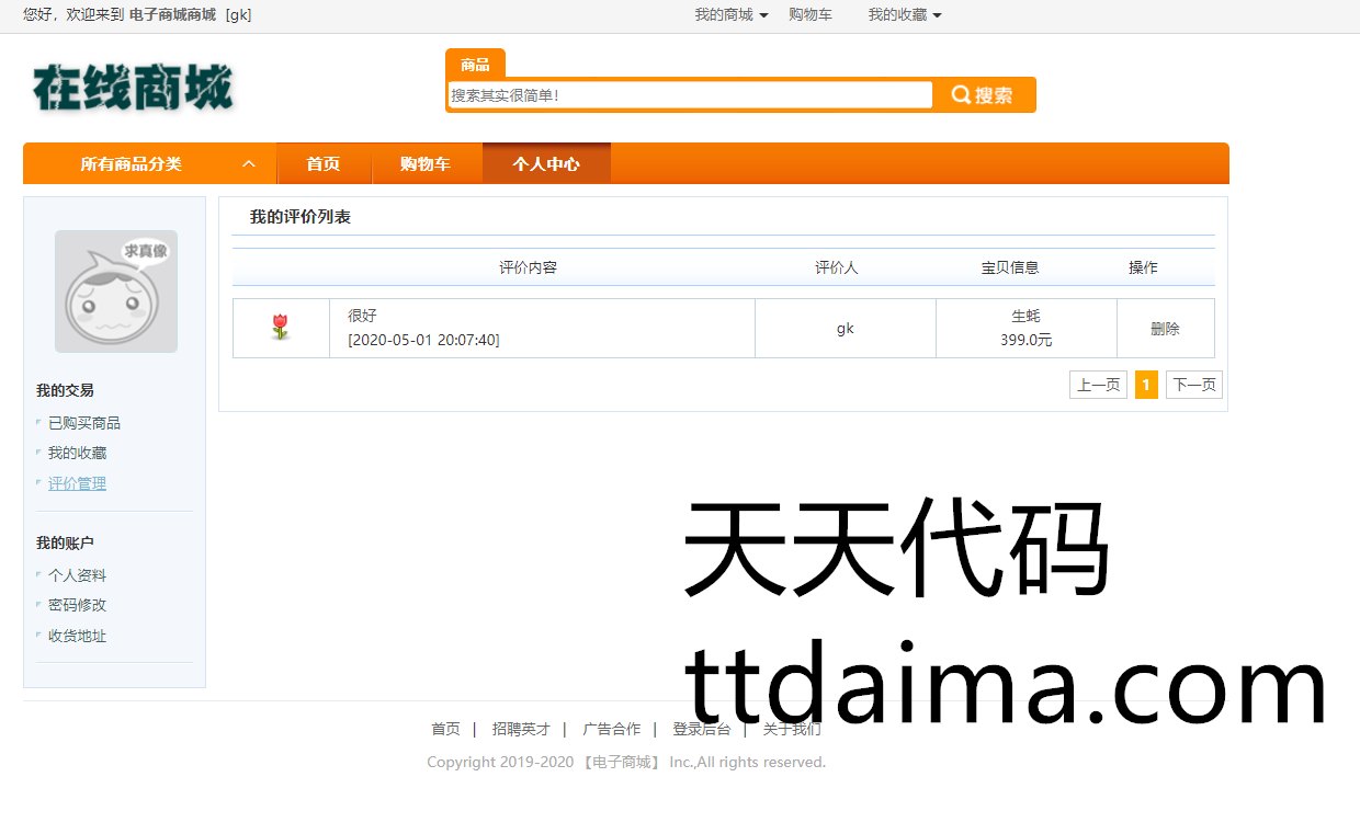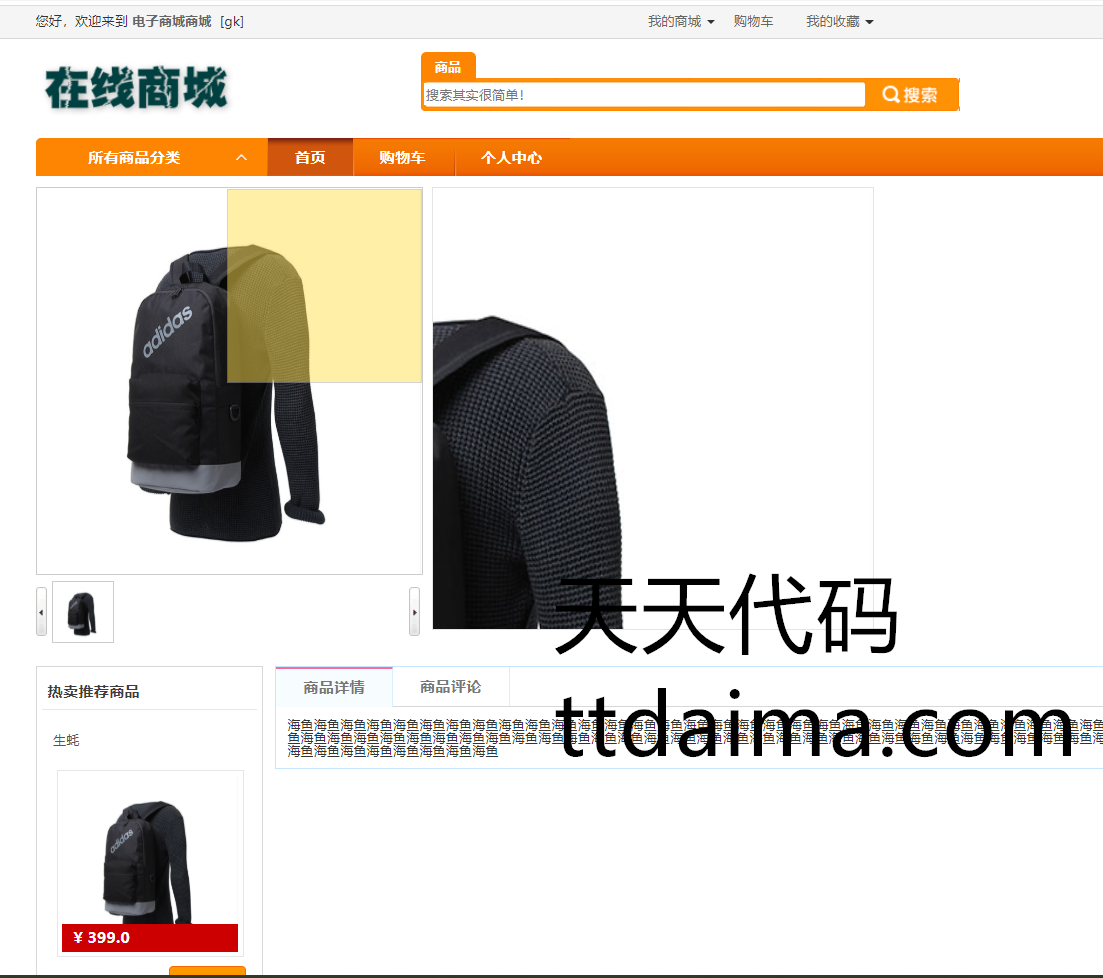 本基于SSM开发网上电子购物商城系统由天天代码收集测试整理。