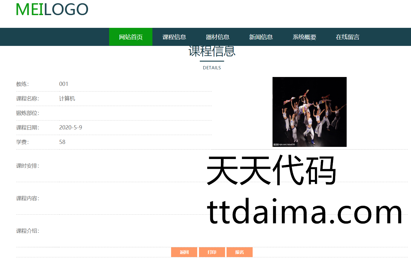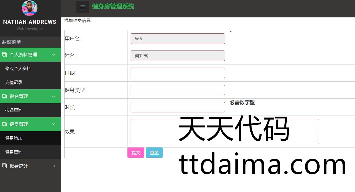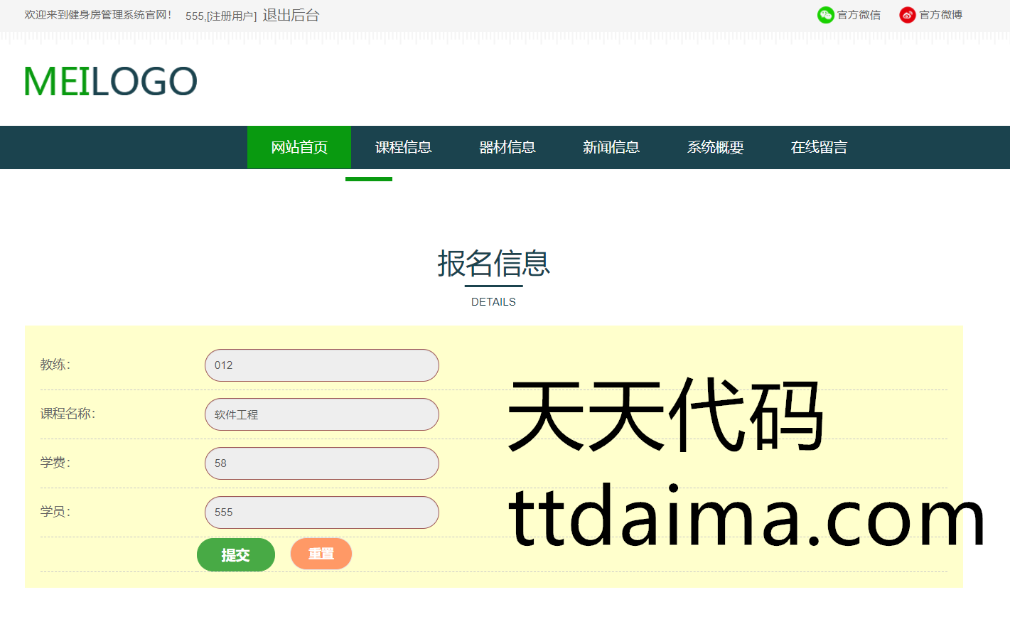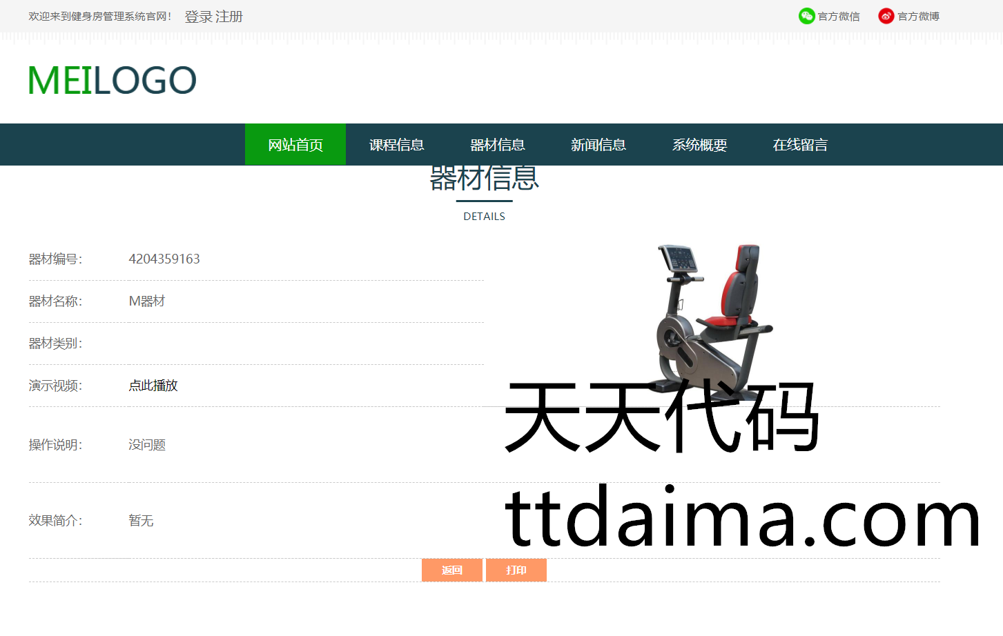 本基于JSP+Servlet开发健身房管理系统由天天代码收集测试整理。