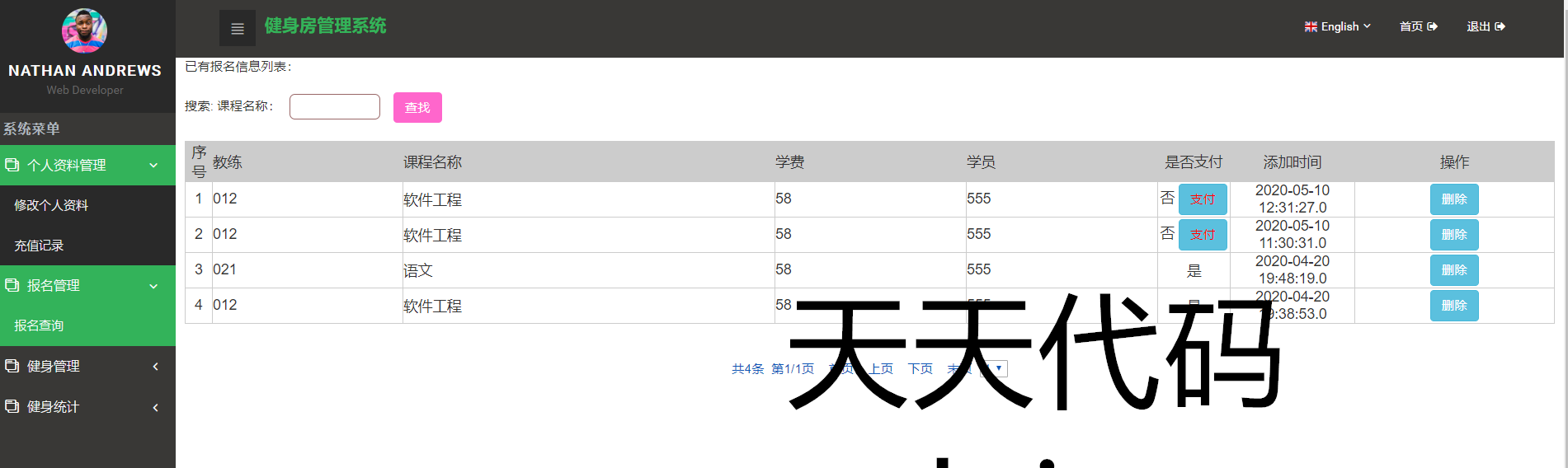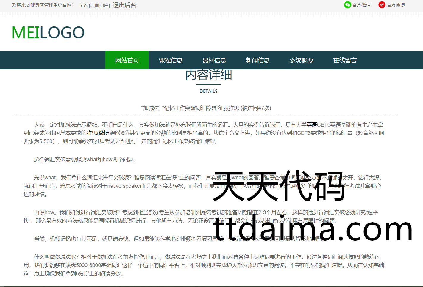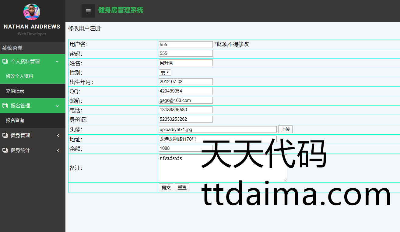 本基于JSP+Servlet开发健身房管理系统由天天代码收集测试整理。
