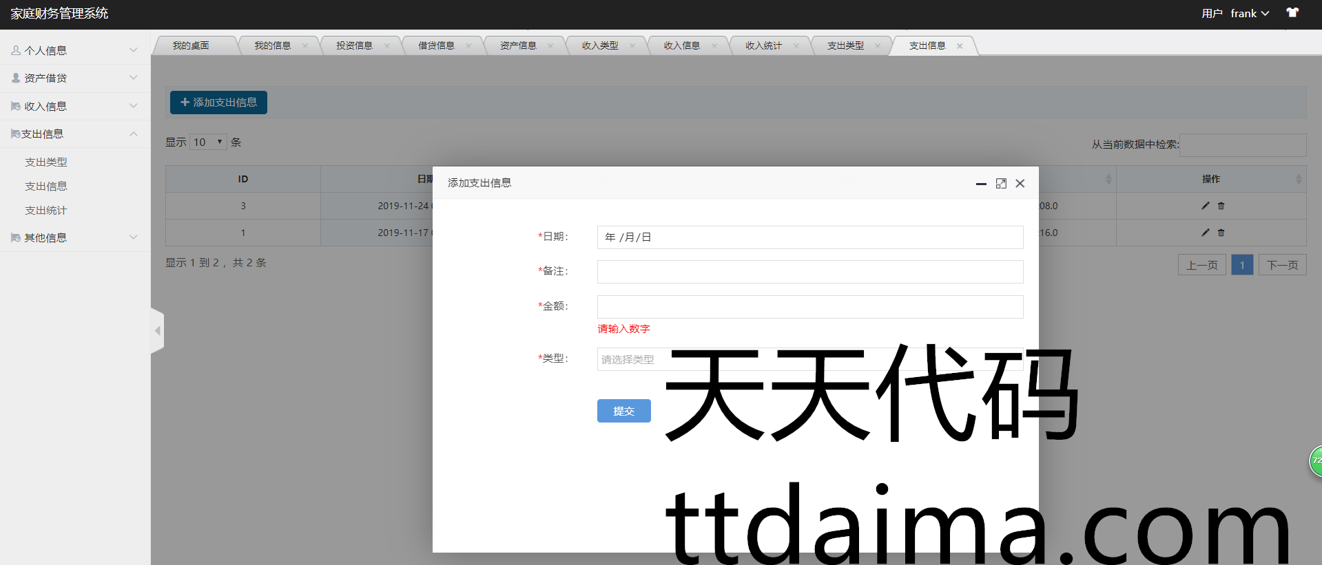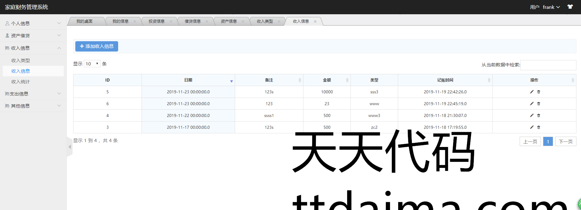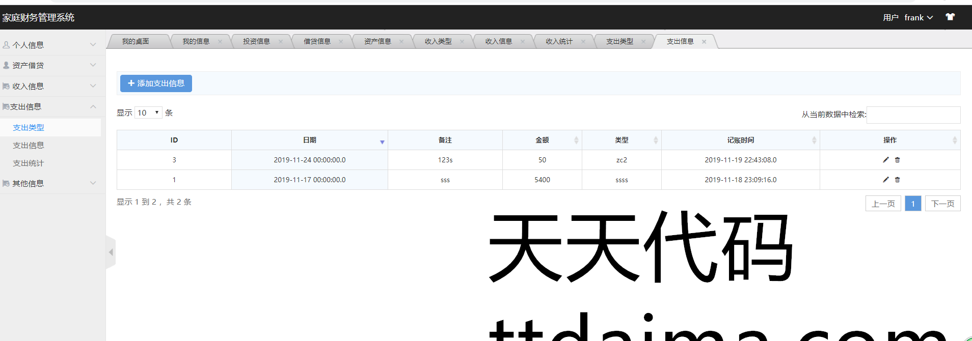 本基于SSM开发家庭财务管理系统由天天代码收集测试整理。