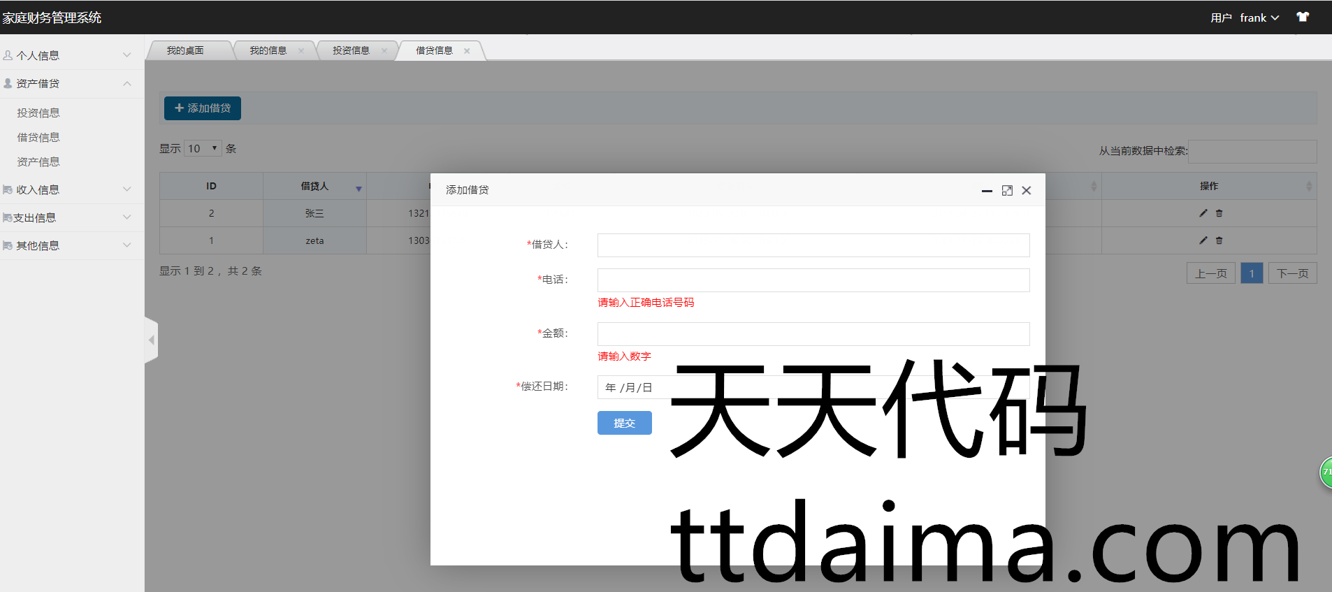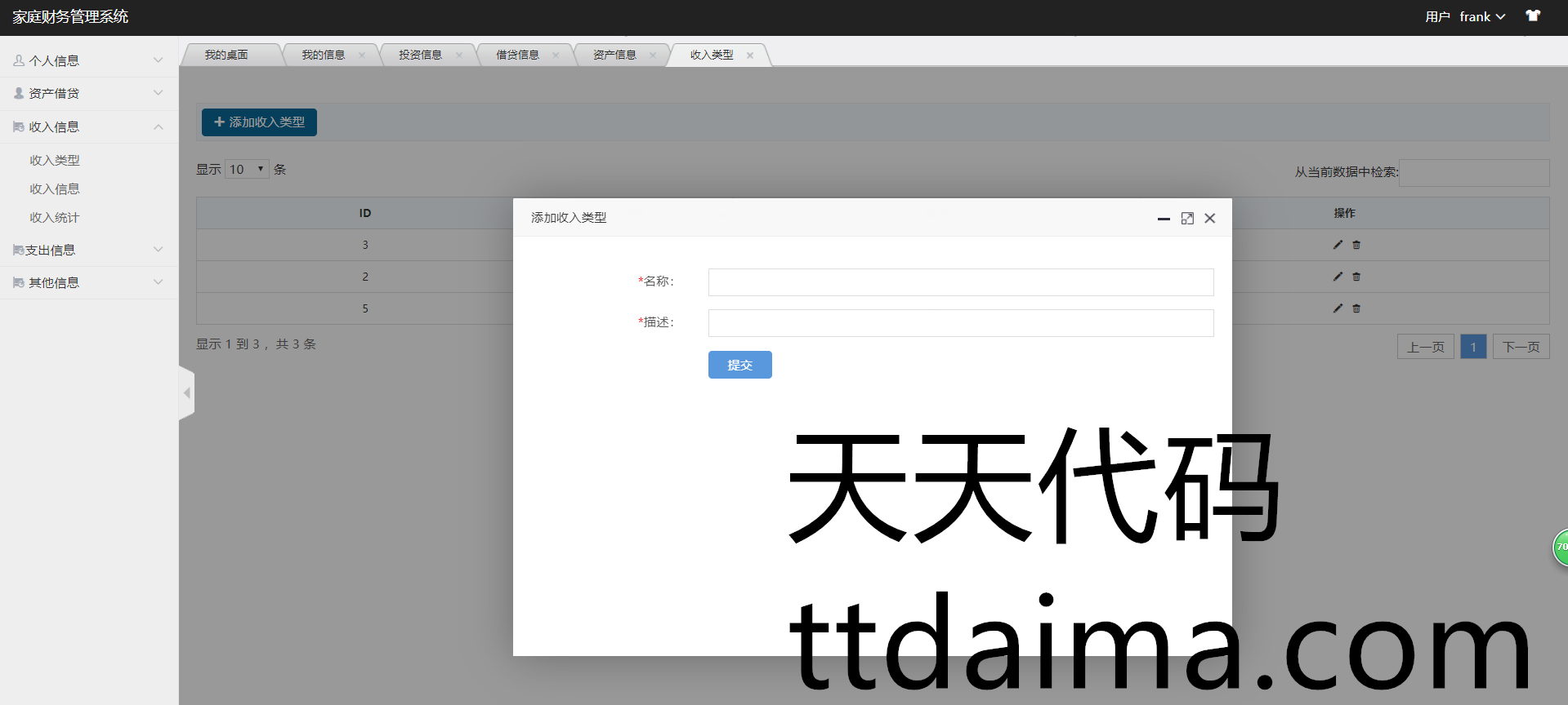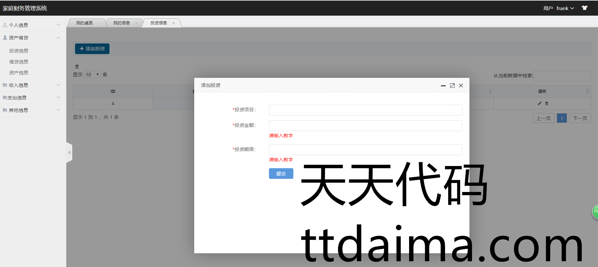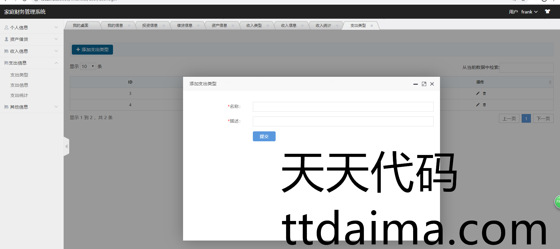 本基于SSM开发家庭财务管理系统由天天代码收集测试整理。