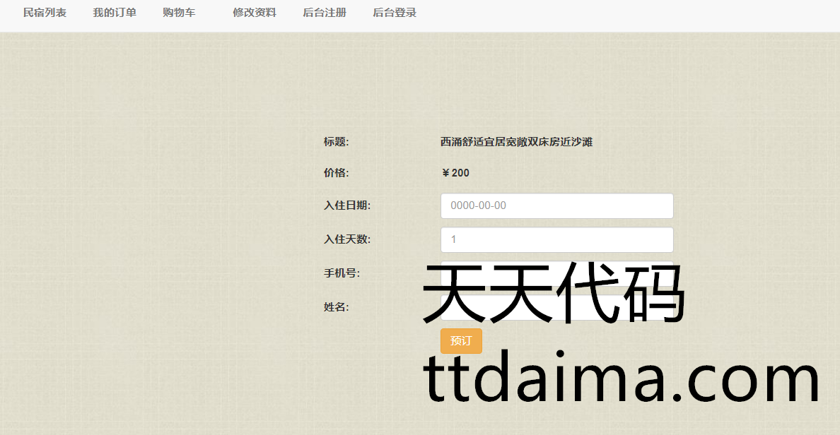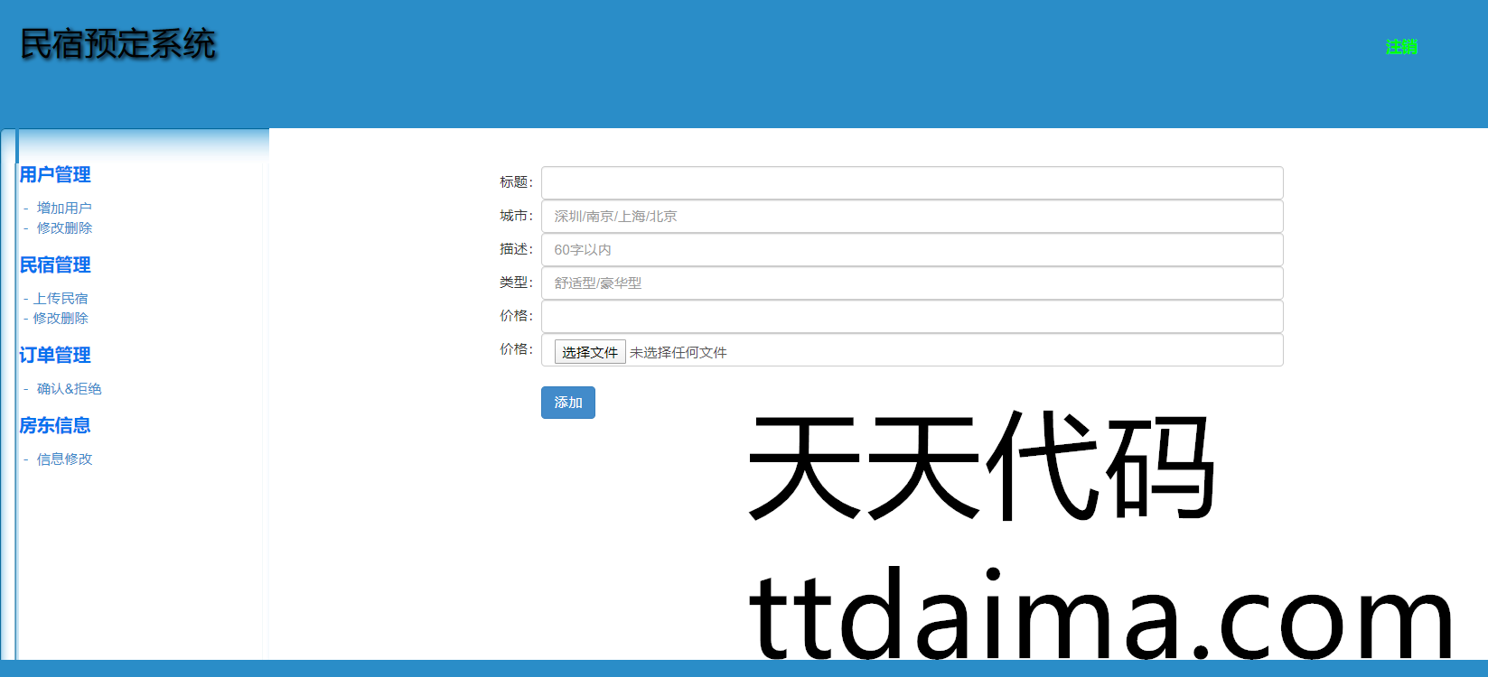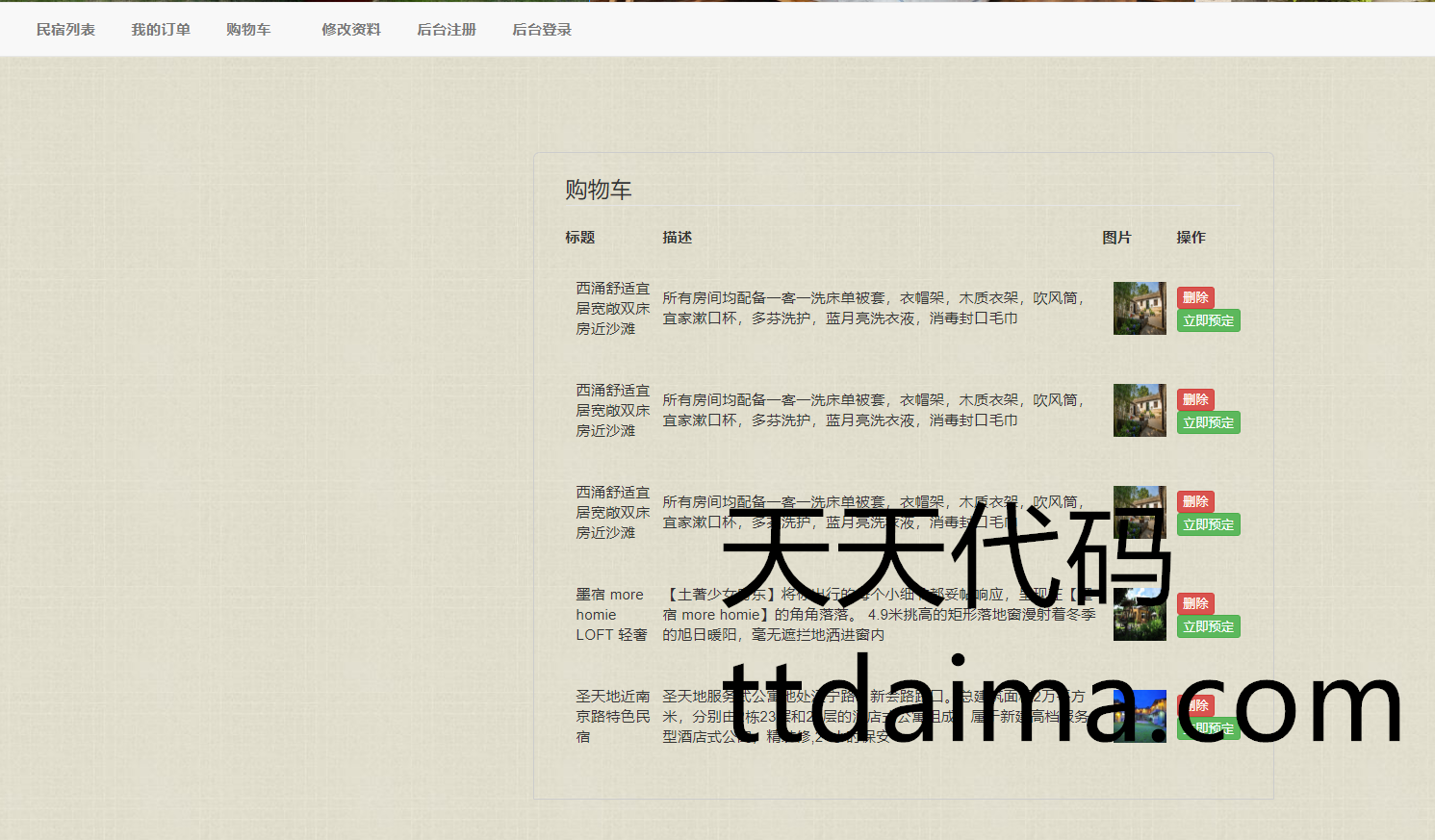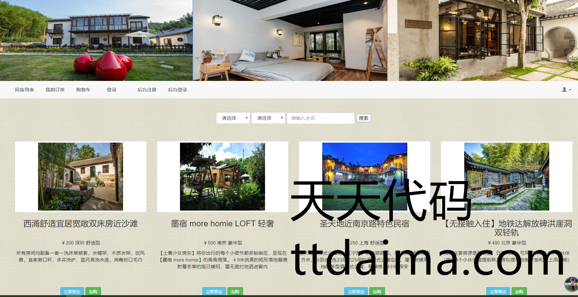 本基于SSM开发民宿预定系统由天天代码收集测试整理。
