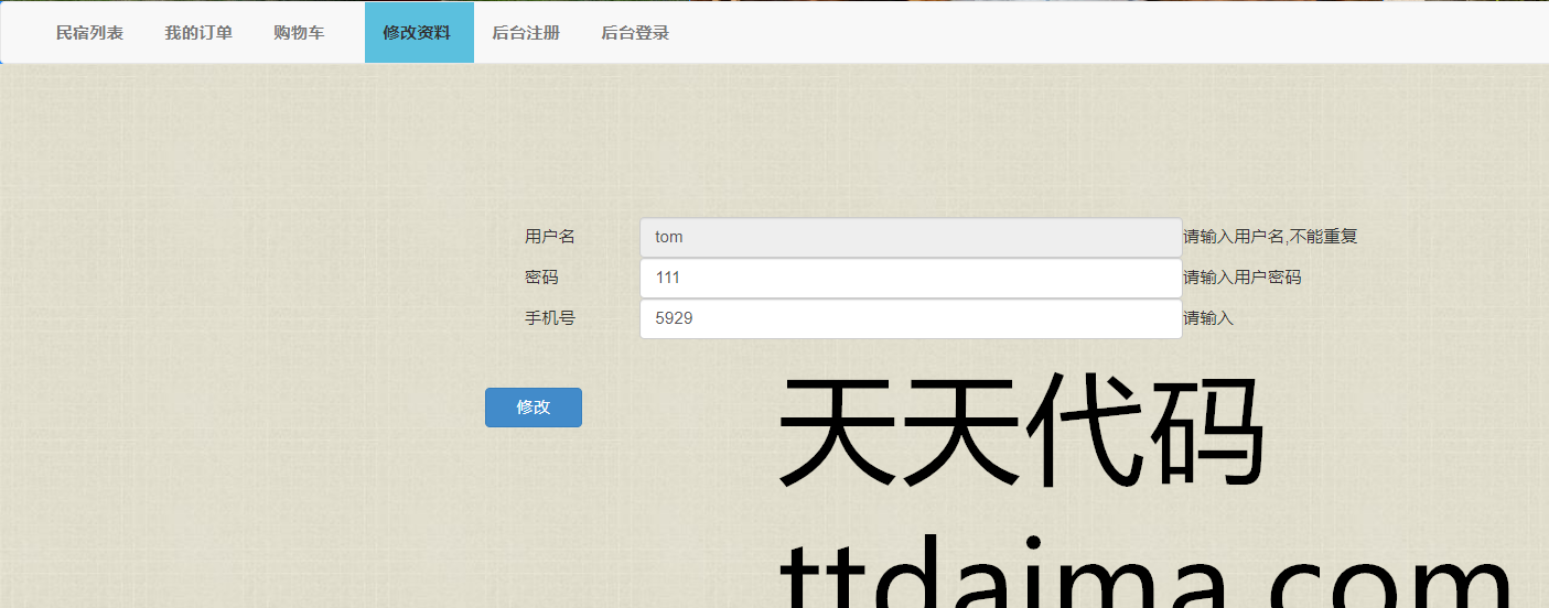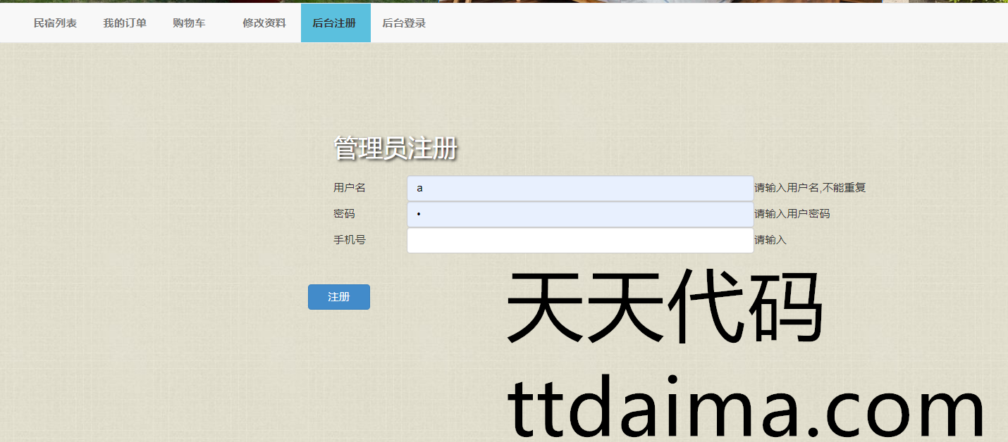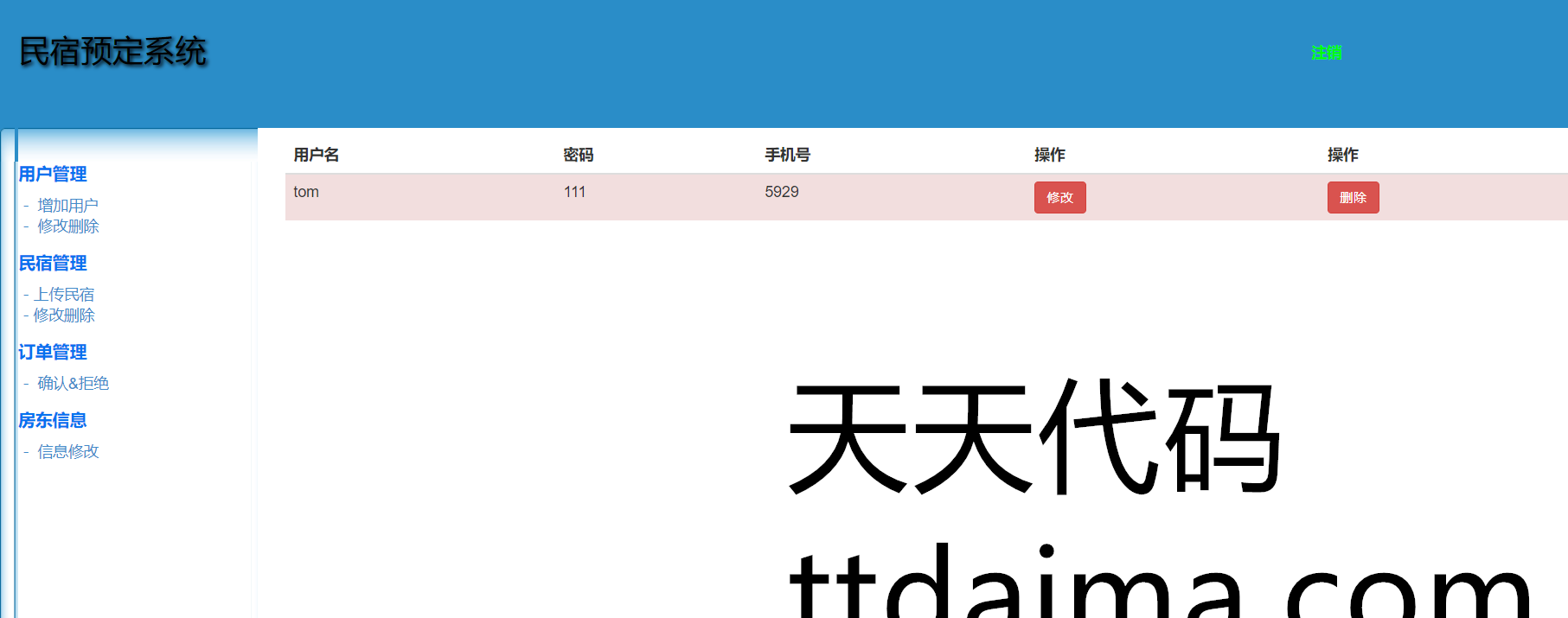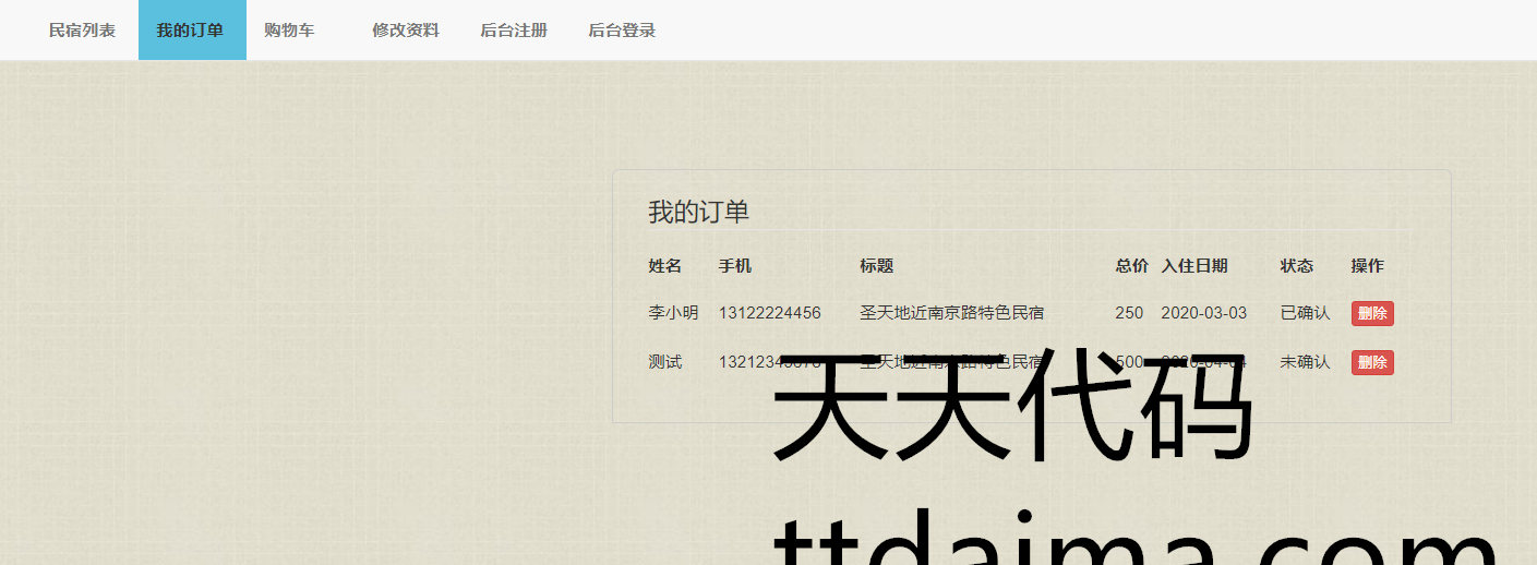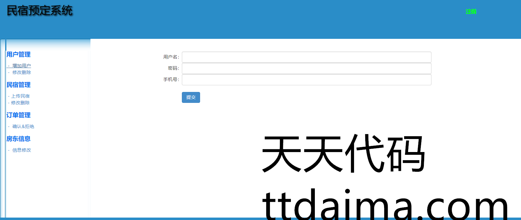 本基于SSM开发民宿预定系统由天天代码收集测试整理。