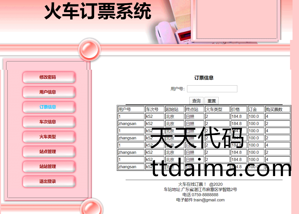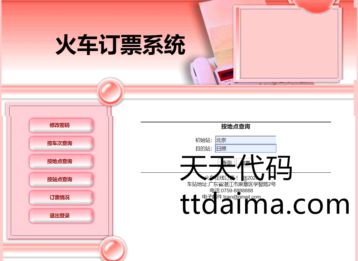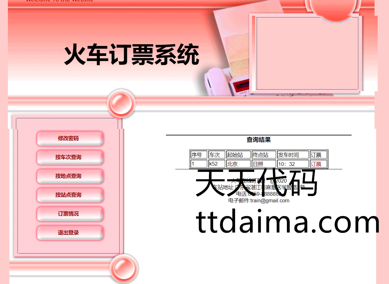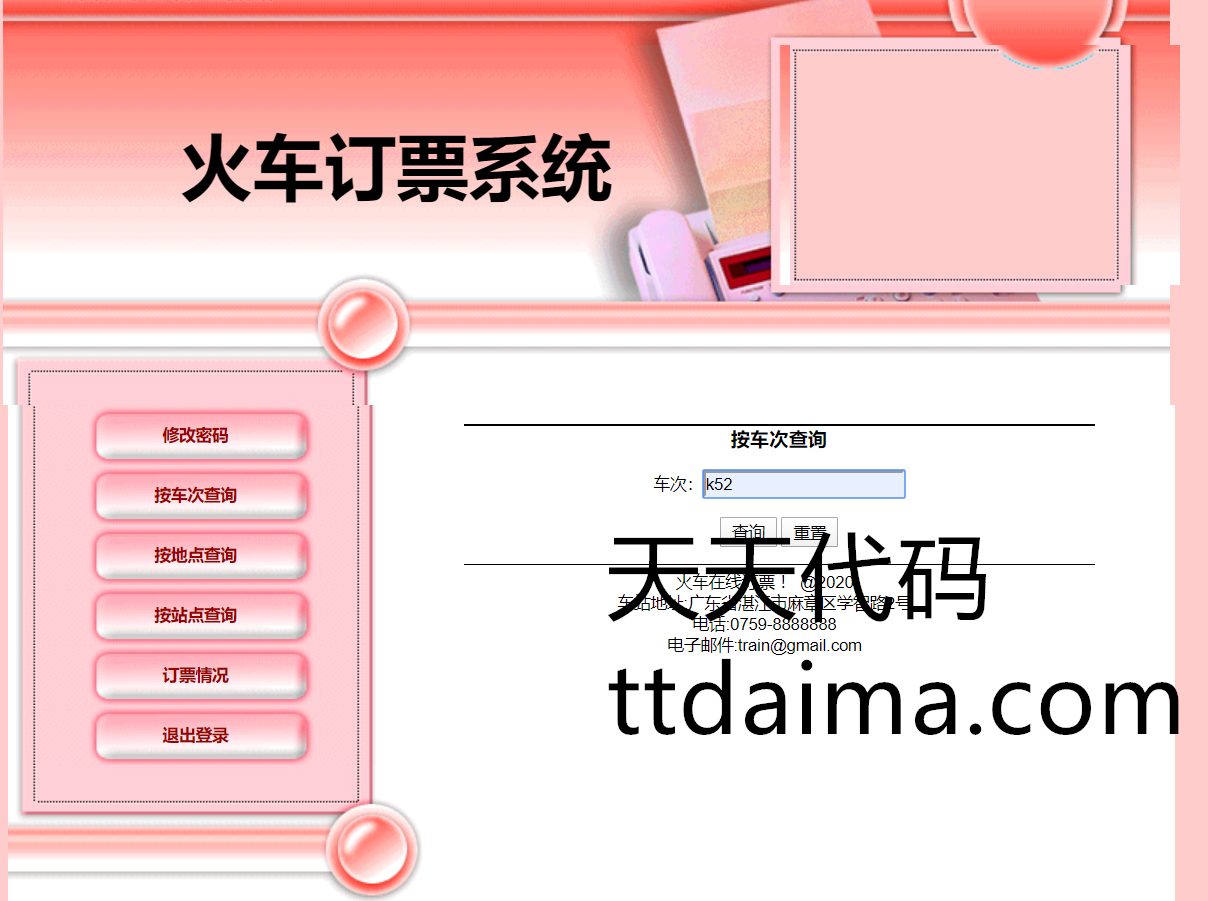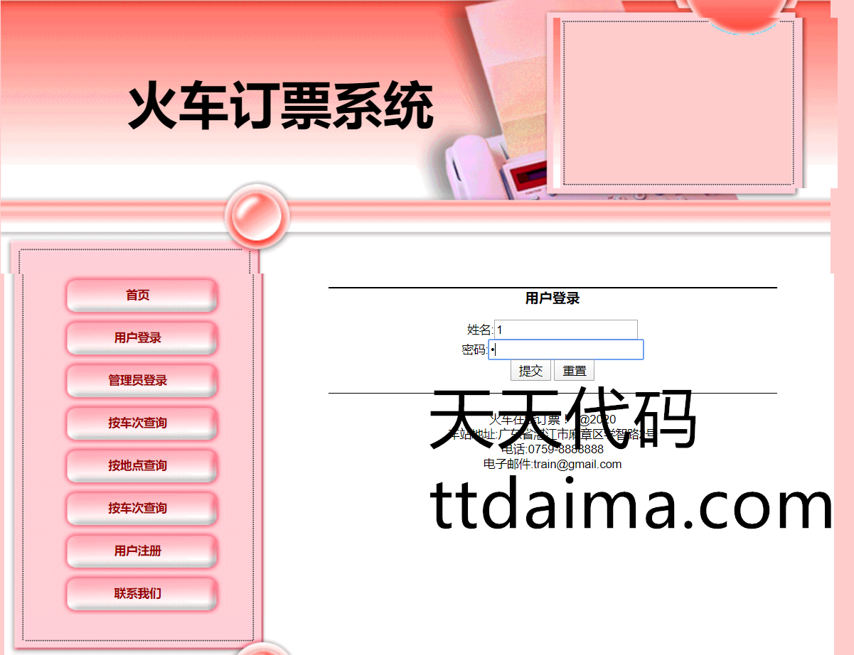 本基于JSP+Servlet开发火车票订票系统由天天代码收集测试整理。
