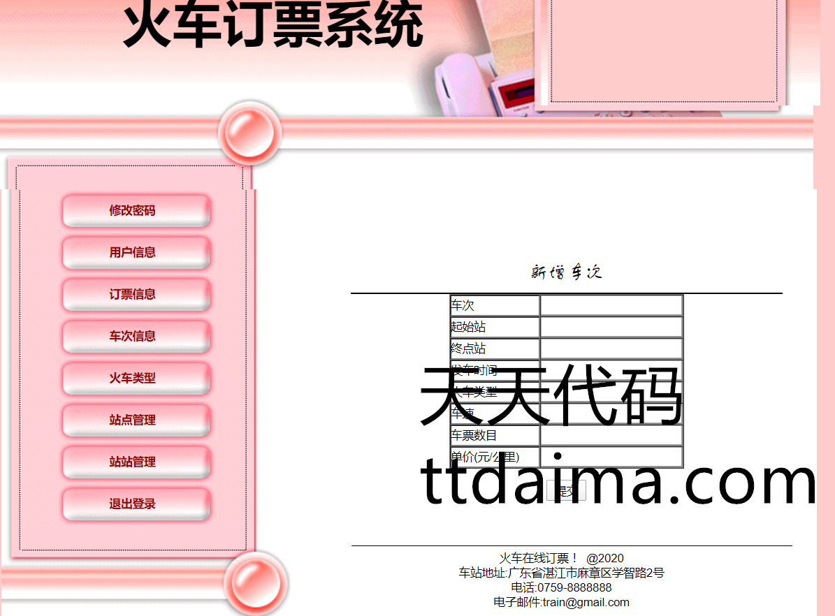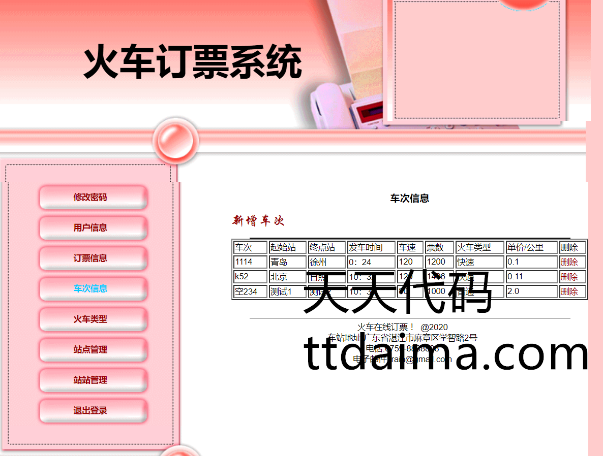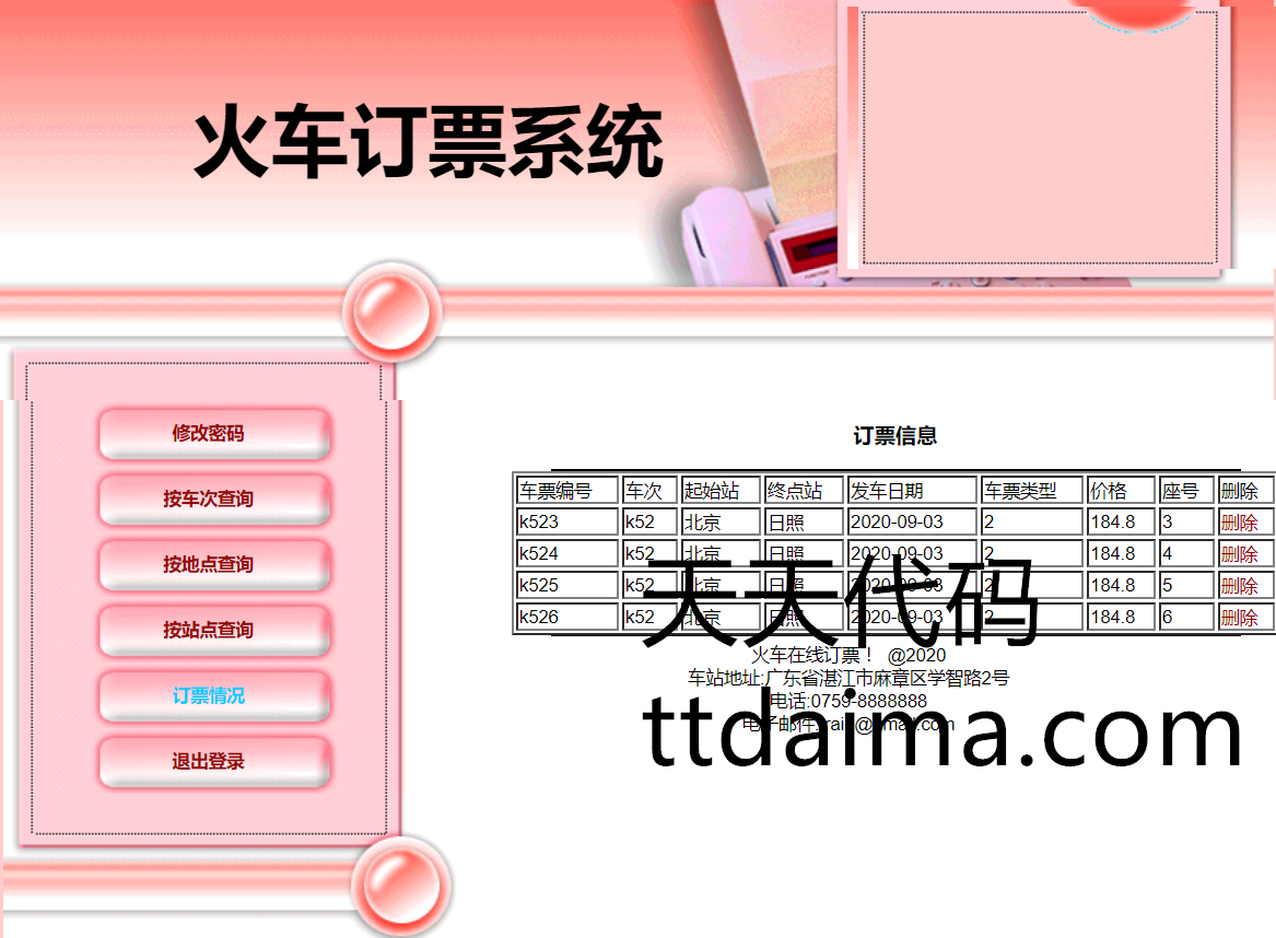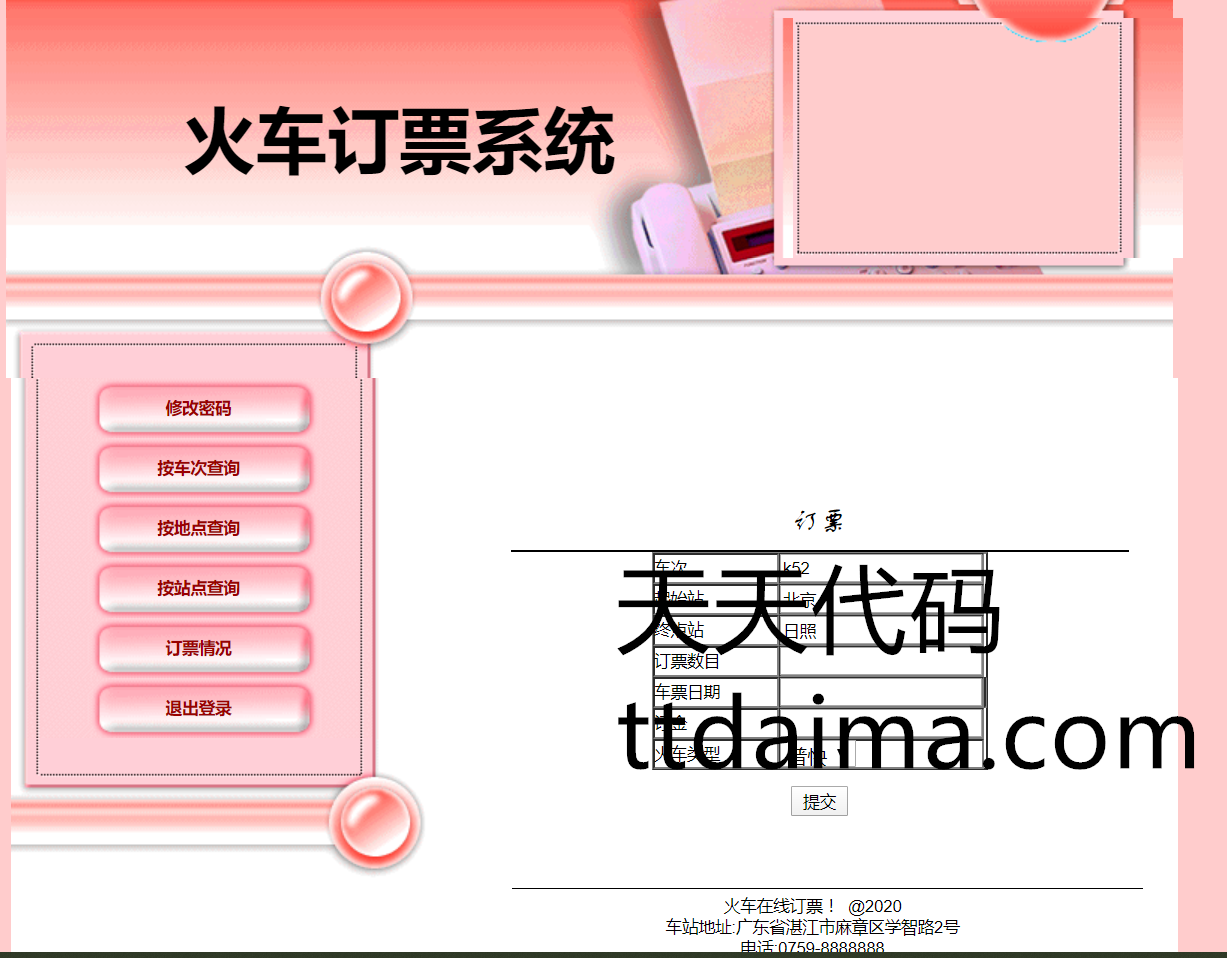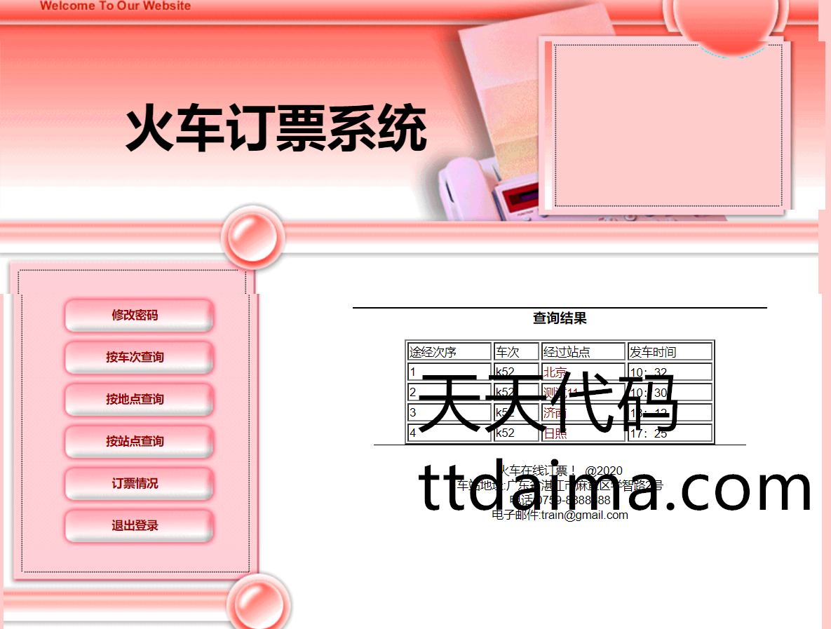 本基于JSP+Servlet开发火车票订票系统由天天代码收集测试整理。
