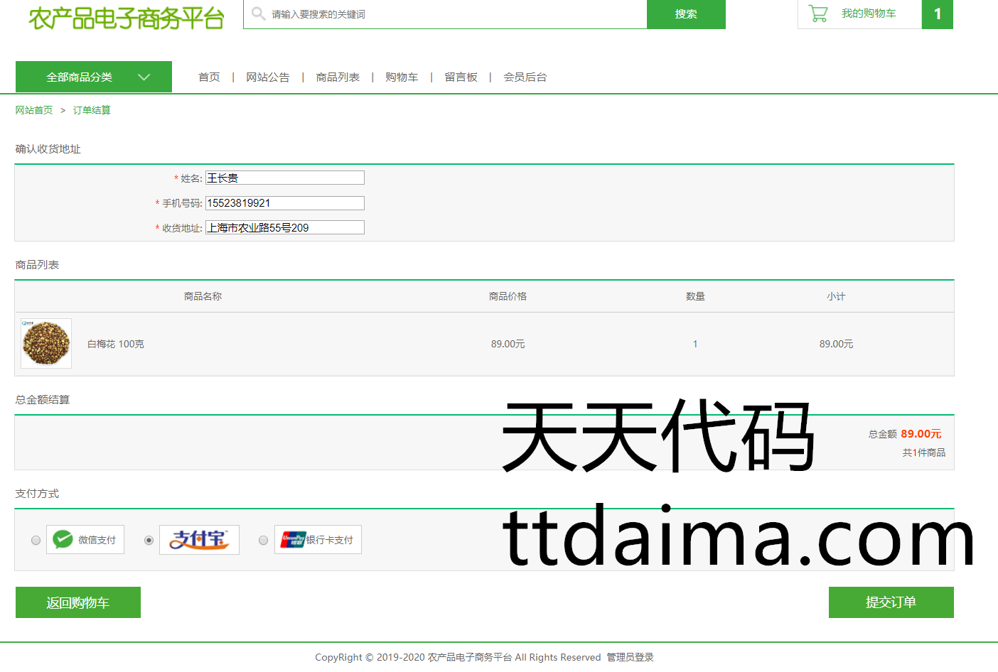 本基于JSP+Servlet开发农产品电子商务平台系统由天天代码收集测试整理。