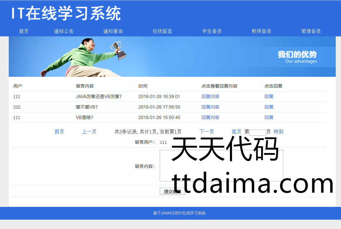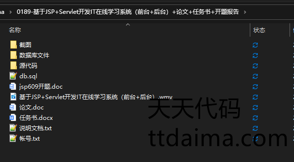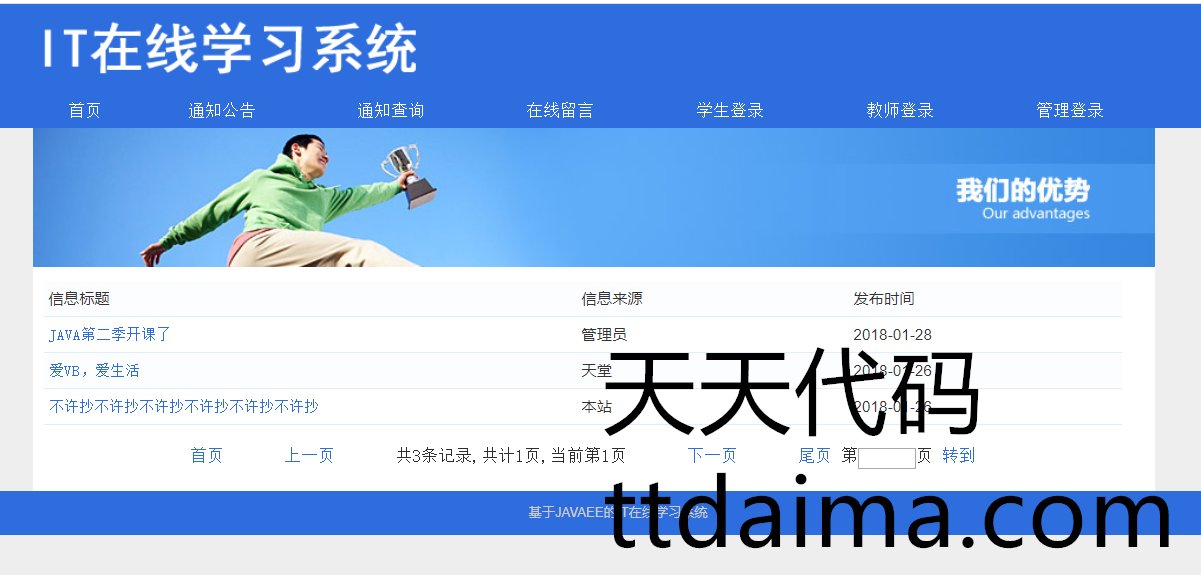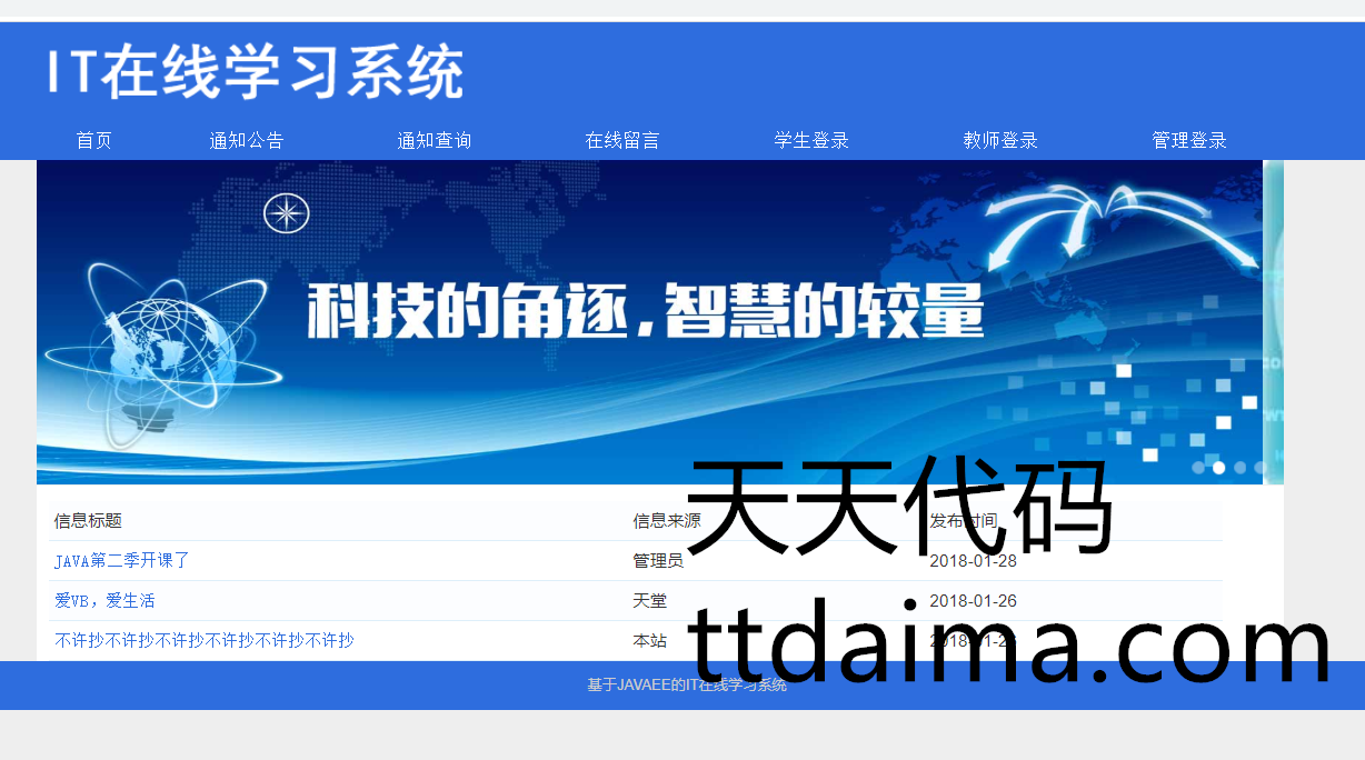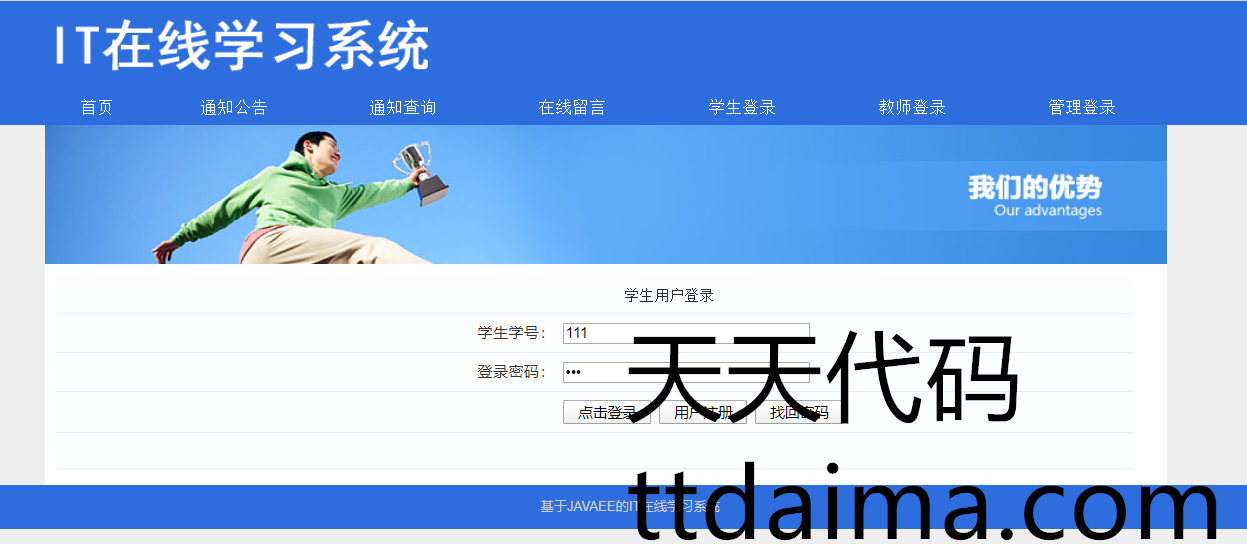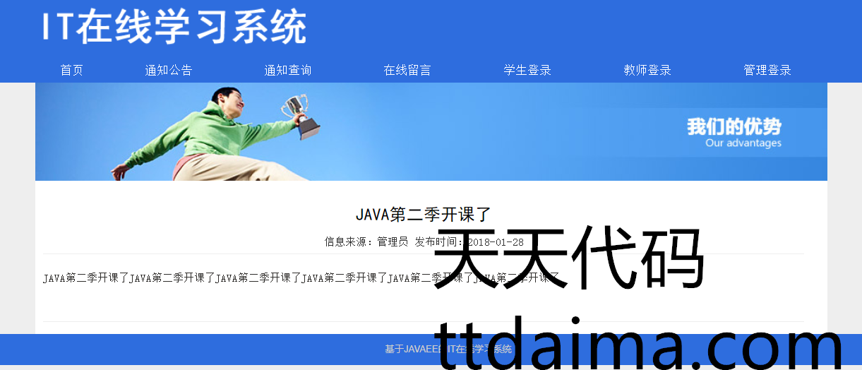 本基于JSP+Servlet开发IT在线学习系统由天天代码收集测试整理。