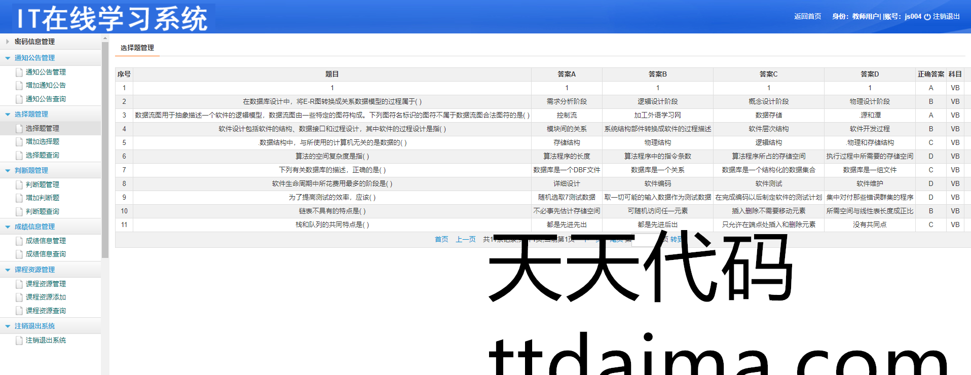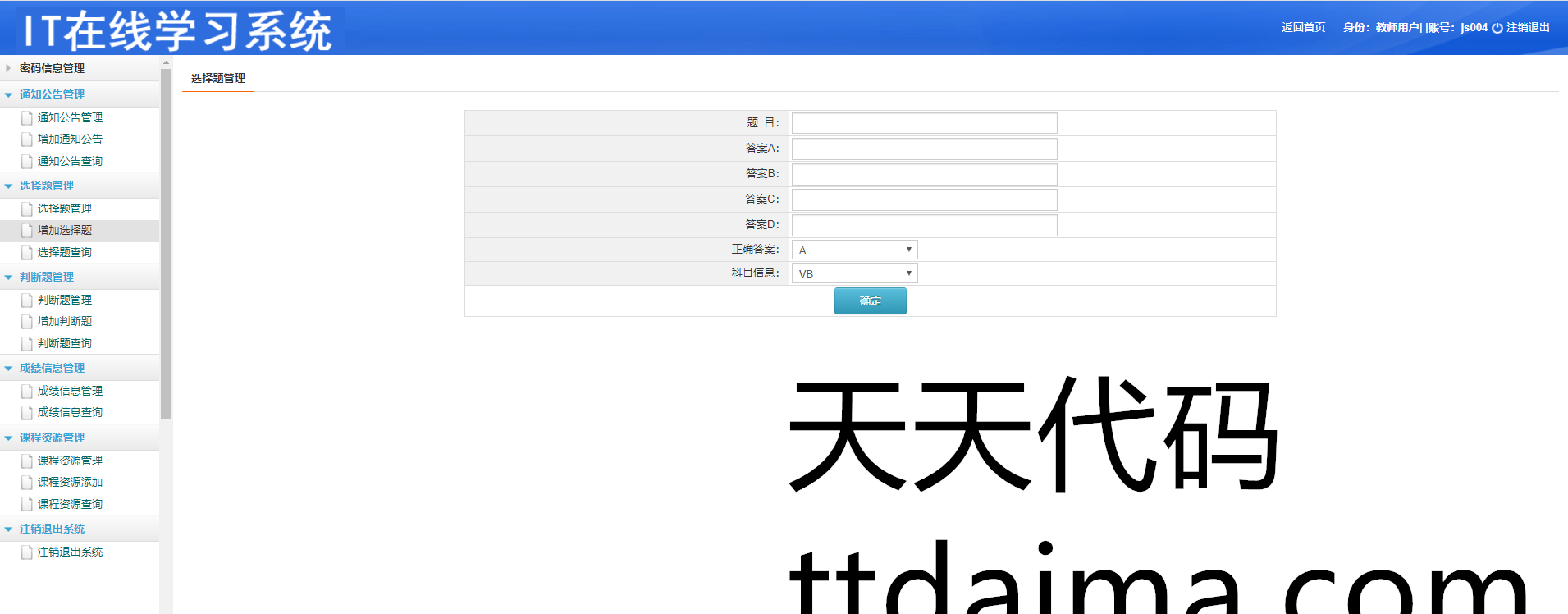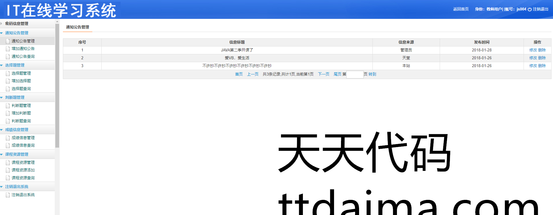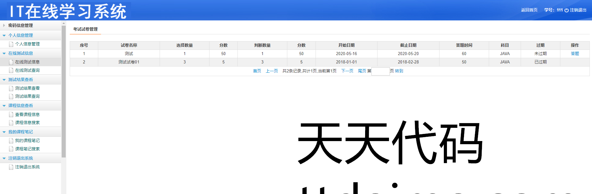 本基于JSP+Servlet开发IT在线学习系统由天天代码收集测试整理。