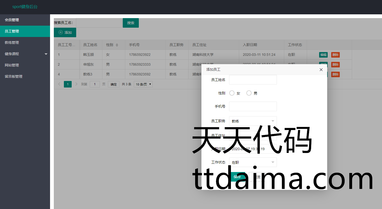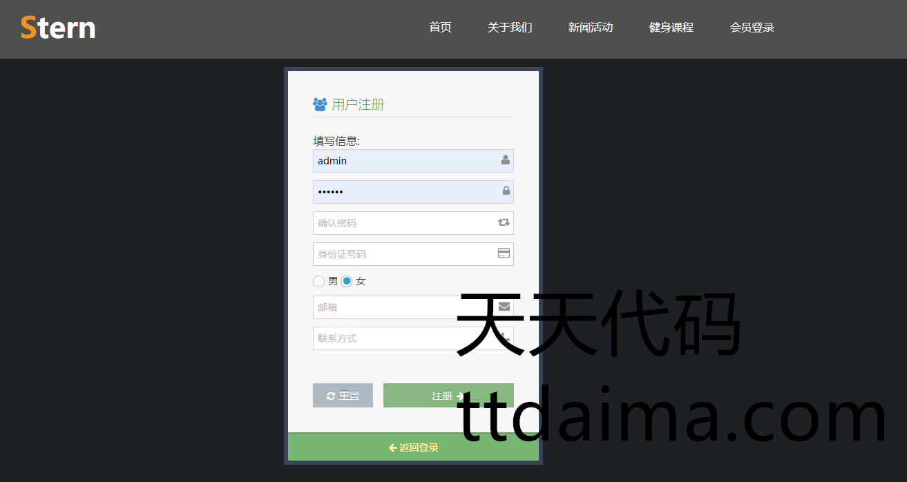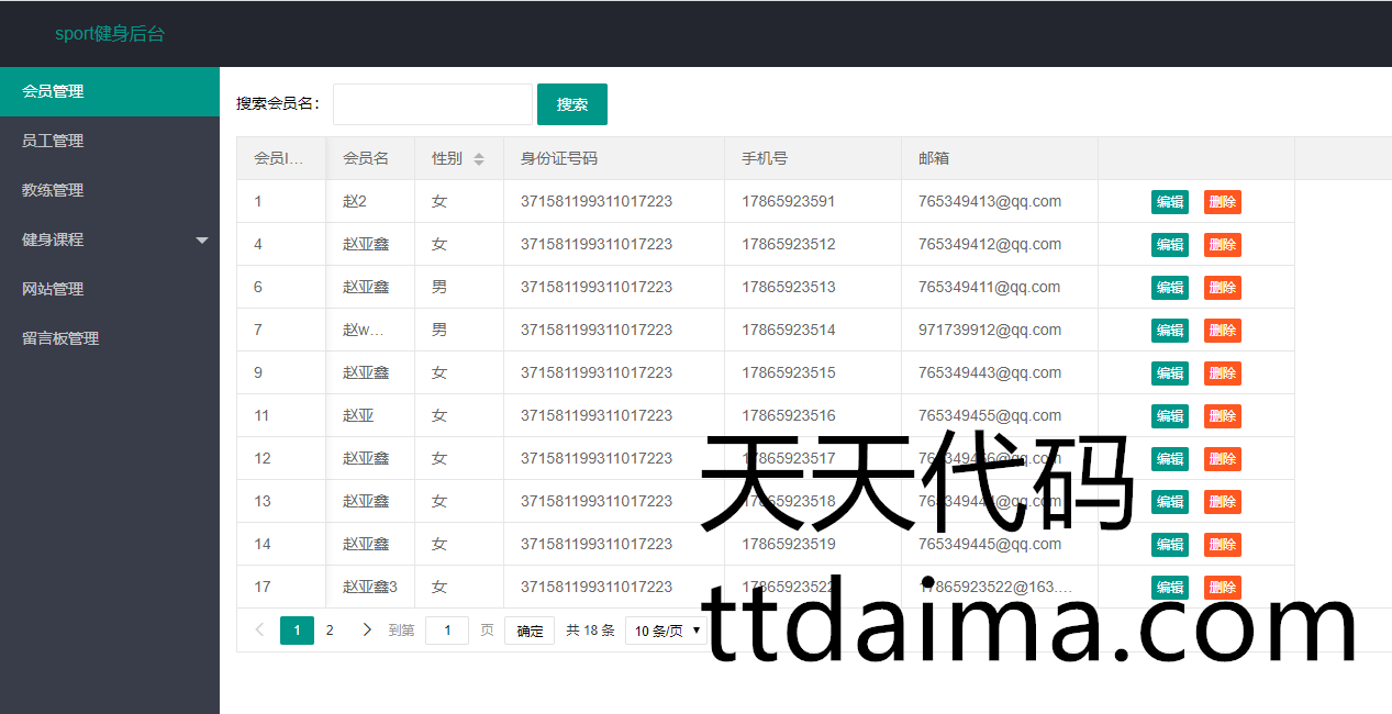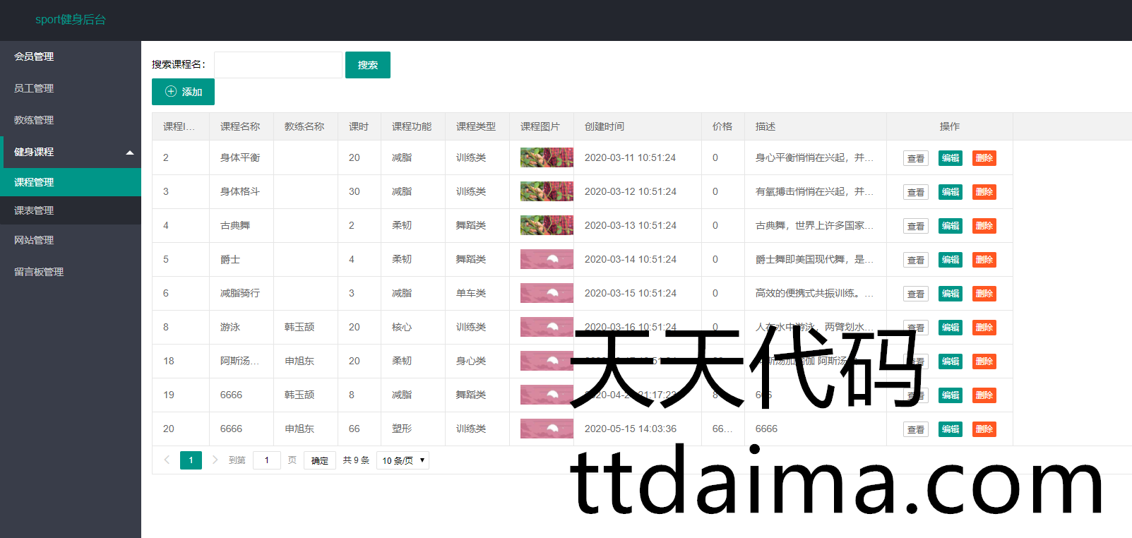 本基于SSM开发sport健身房系统由天天代码收集测试整理。