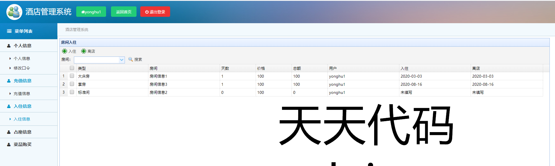 本基于SSM开发酒店管理系统由天天代码收集测试整理。
